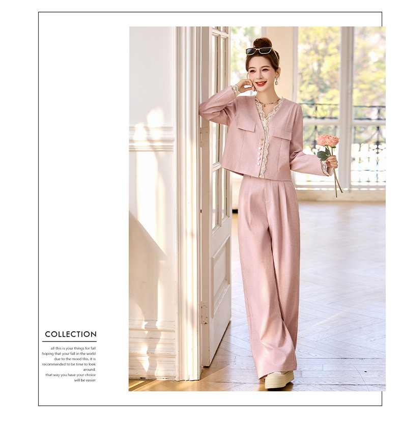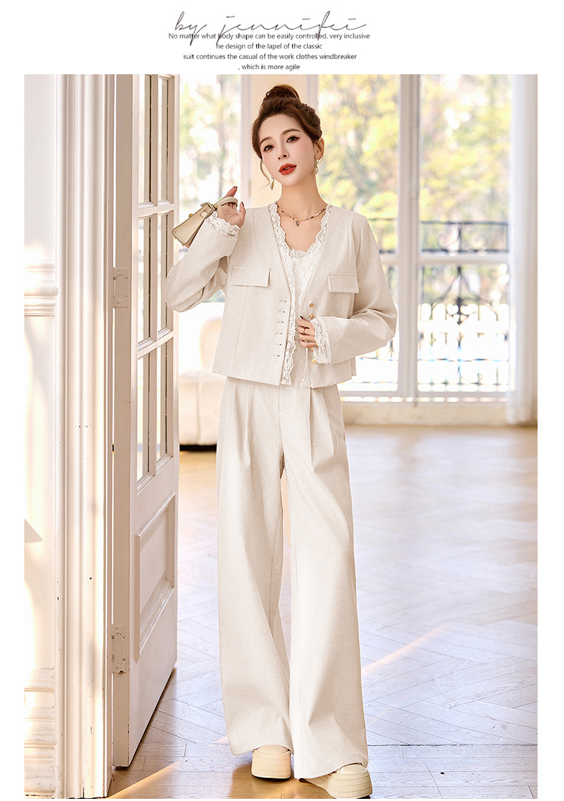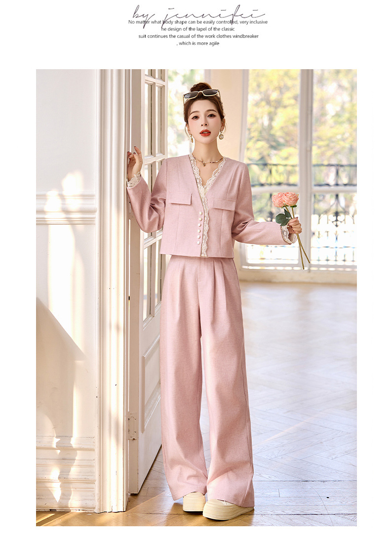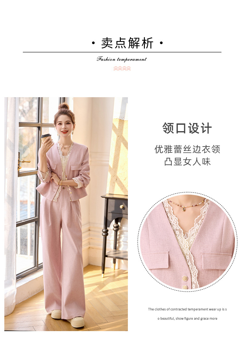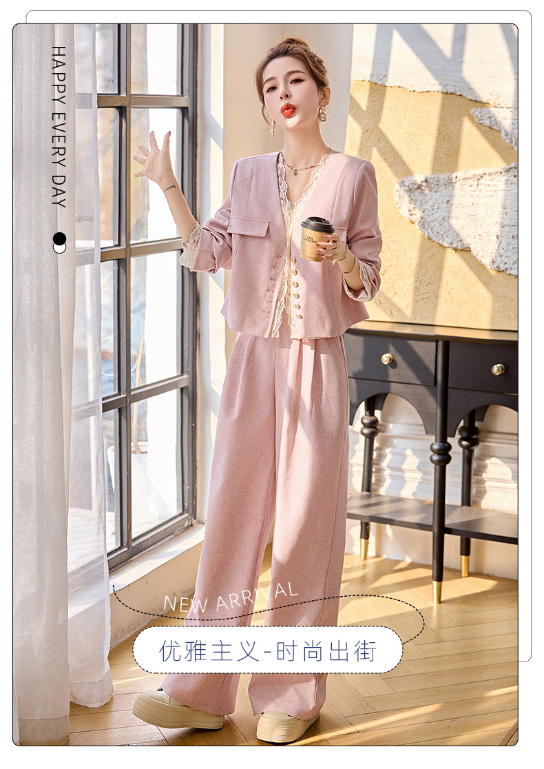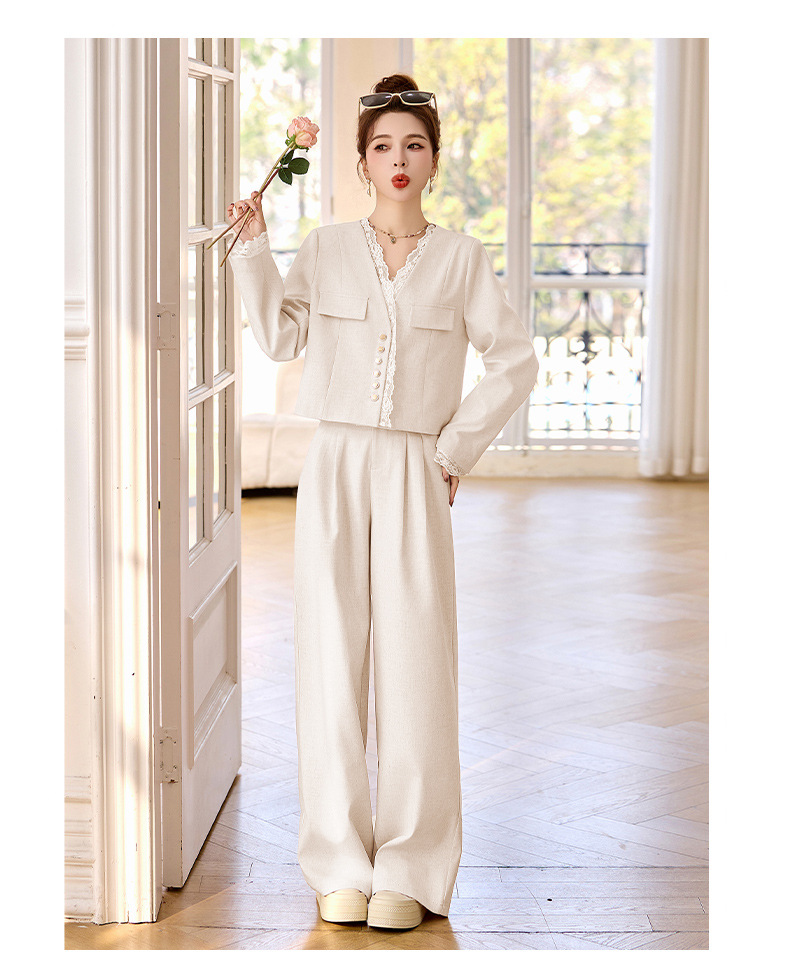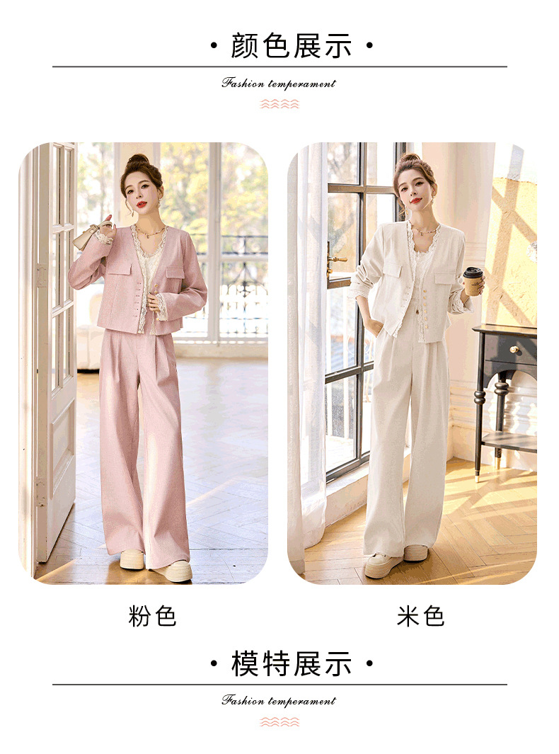 休闲时尚蕾丝花边拼接套装2025开春新款气质穿搭阔腿裤两件套WQE66619AQHUI