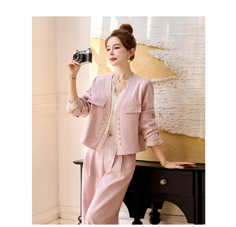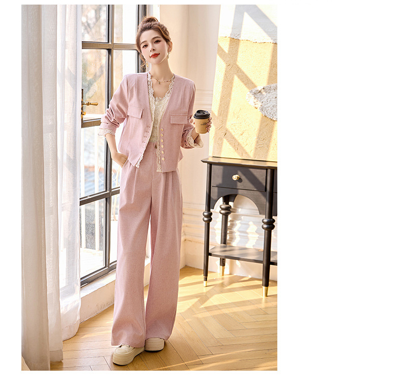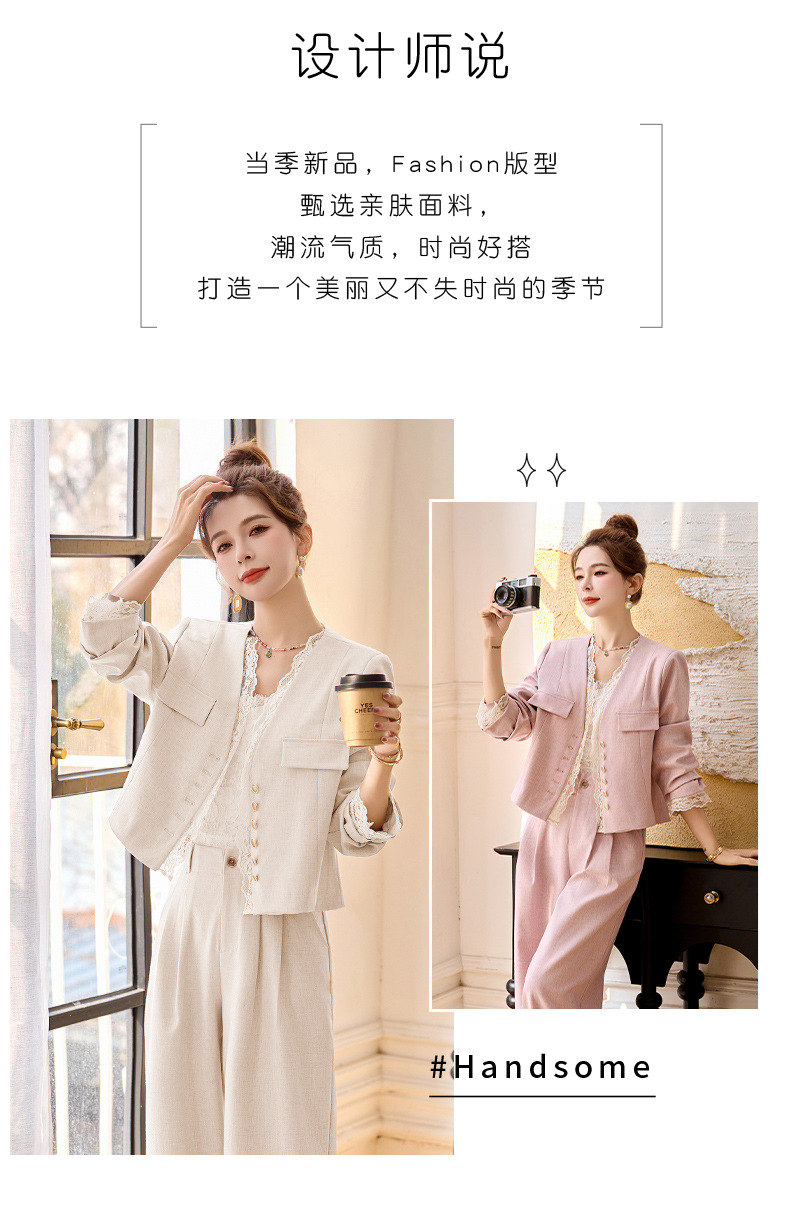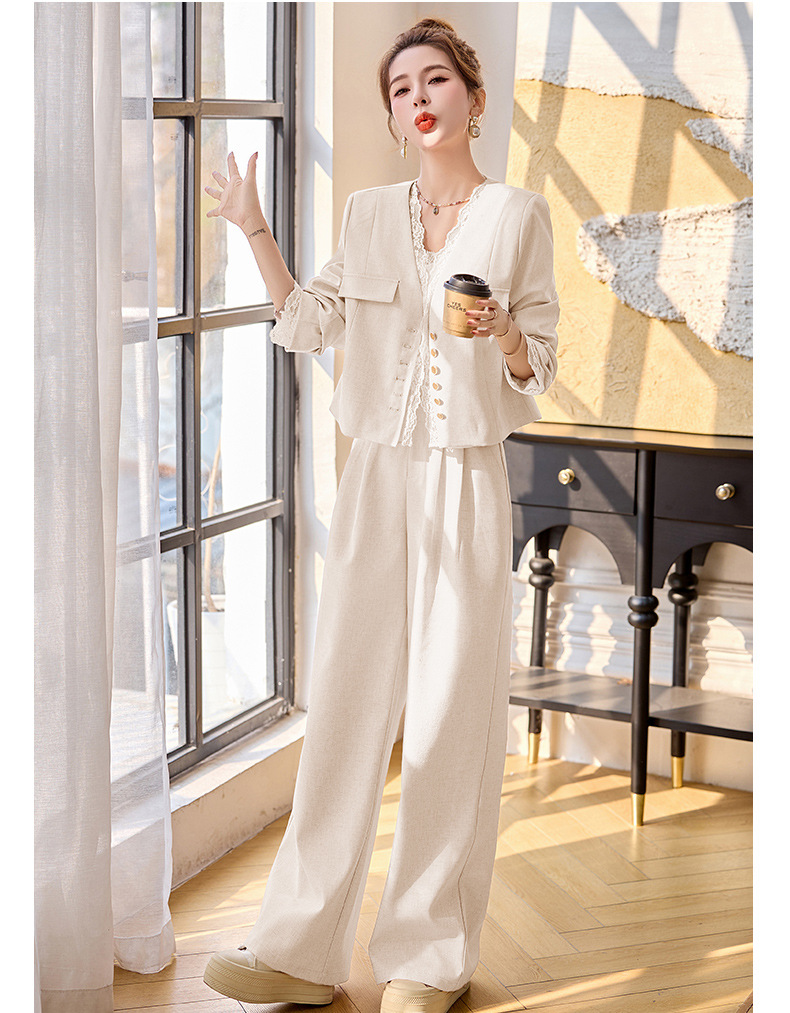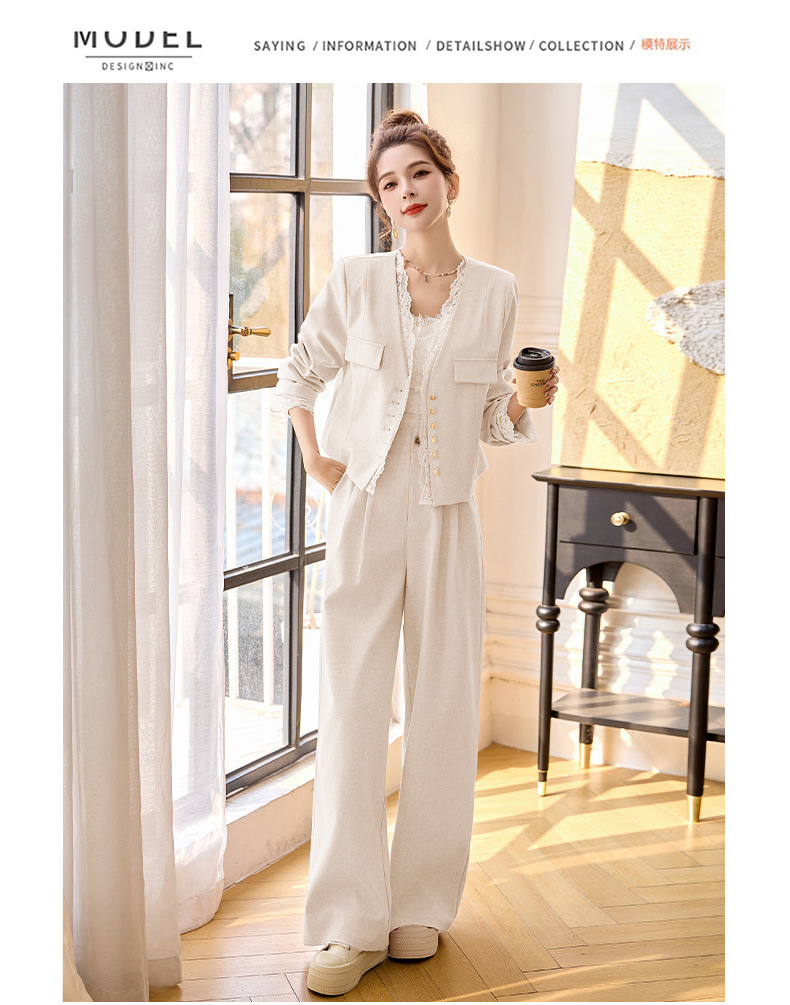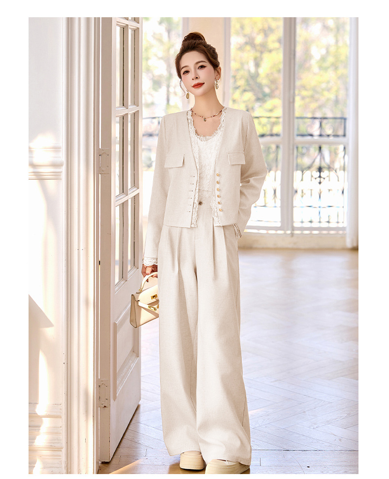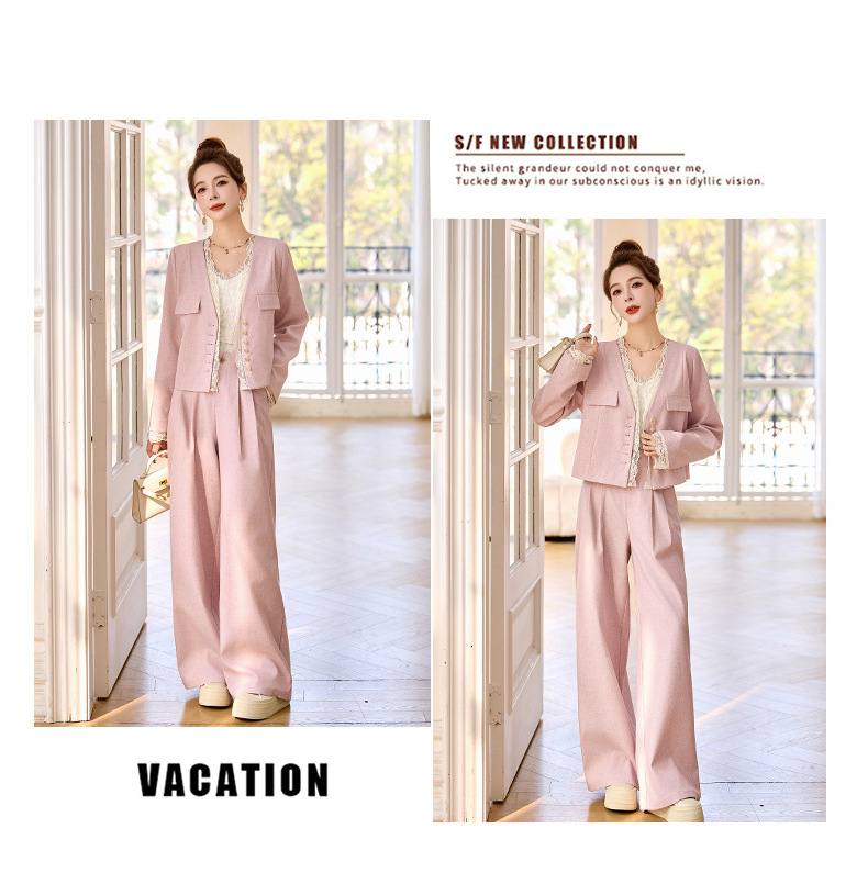 休闲时尚蕾丝花边拼接套装2025开春新款气质穿搭阔腿裤两件套WQE66619AQHUI