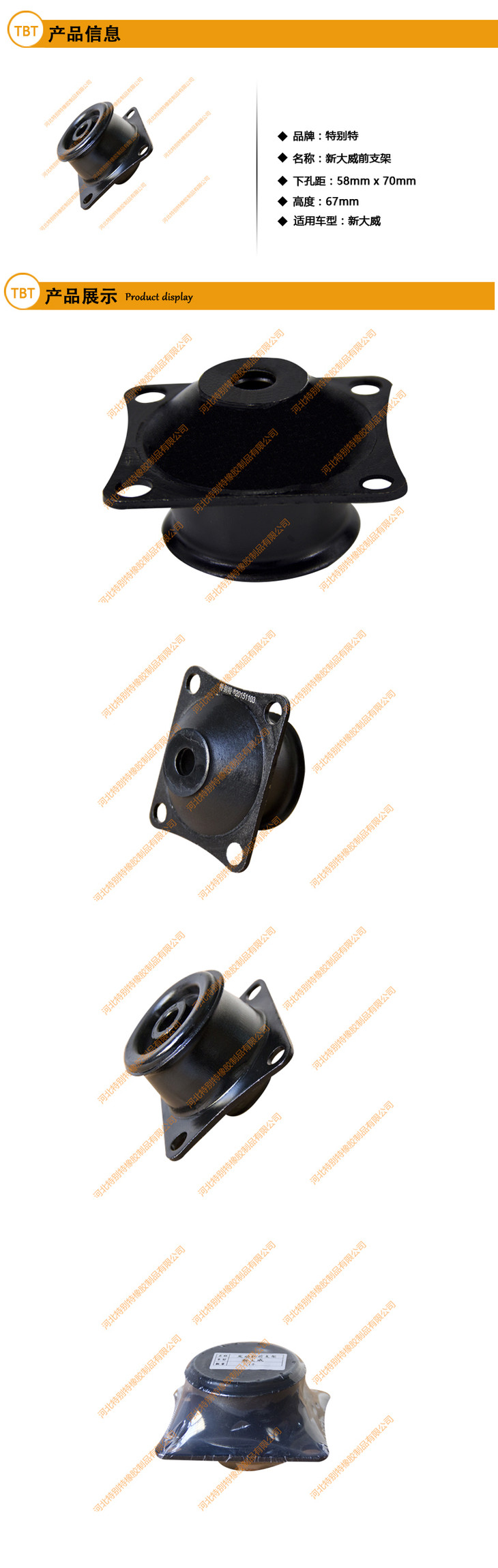 新大威发动机前支架/新大威发动机前胶垫/新大威前机爪垫/新大威前机脚胶/新大威前支架(单价=1个,28个=1箱)