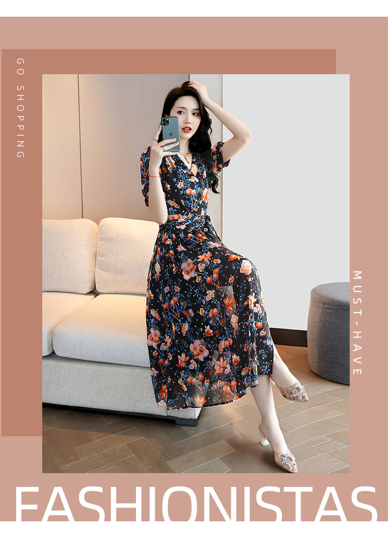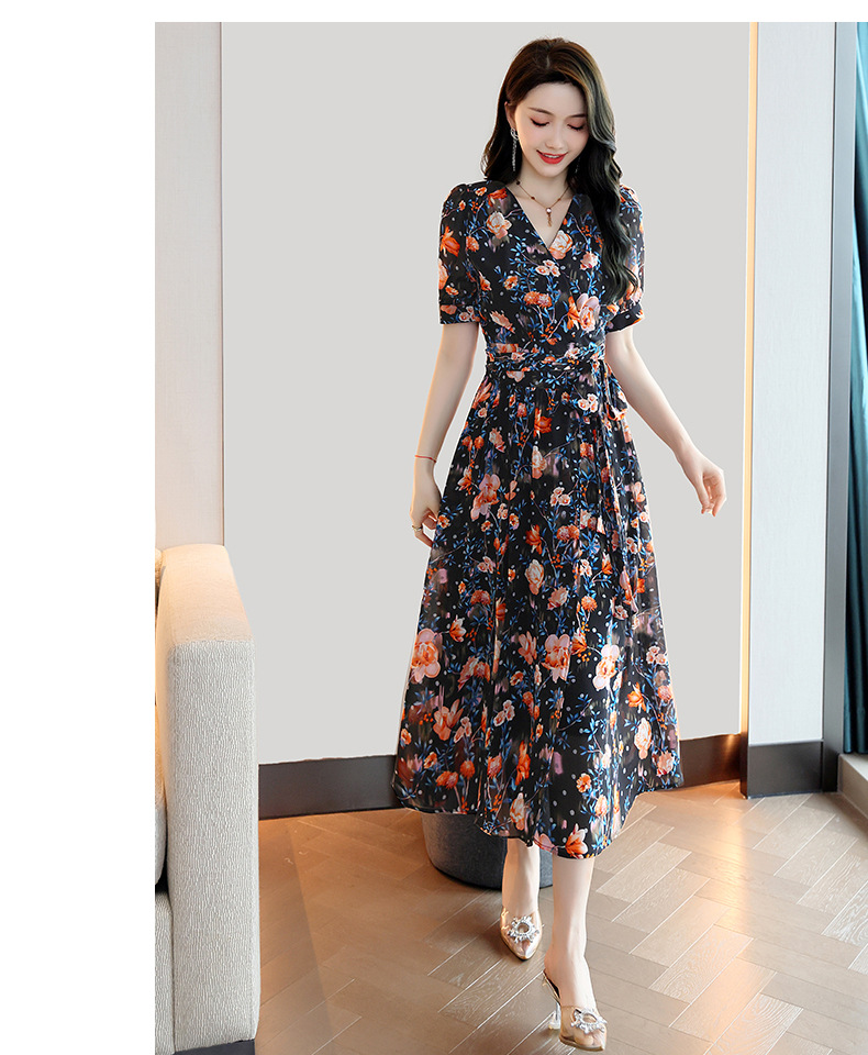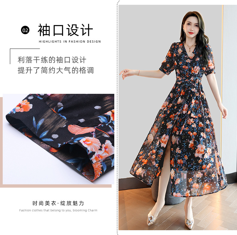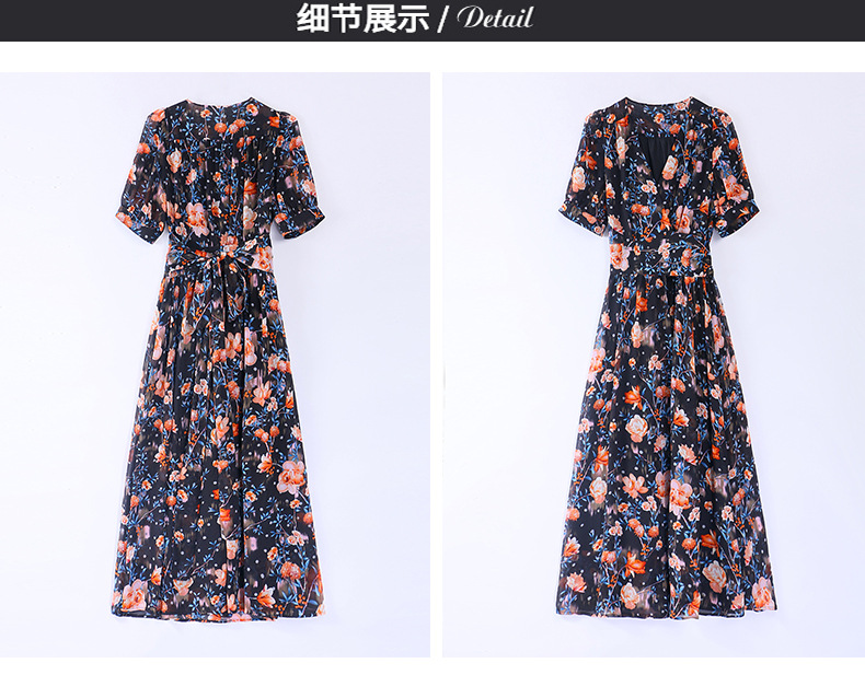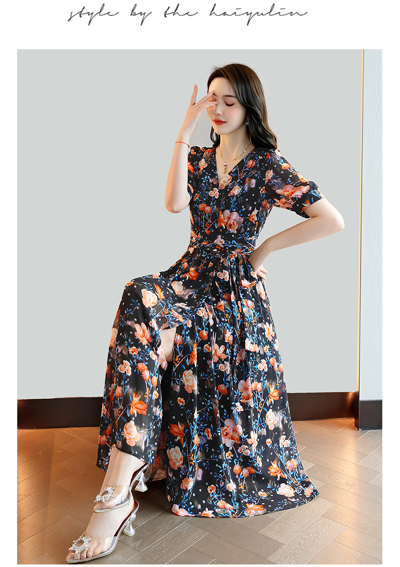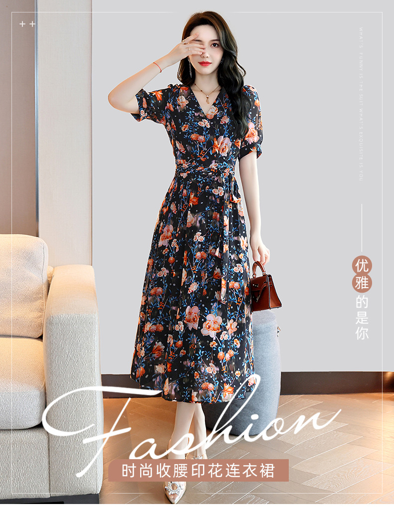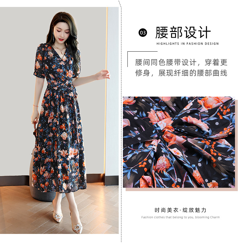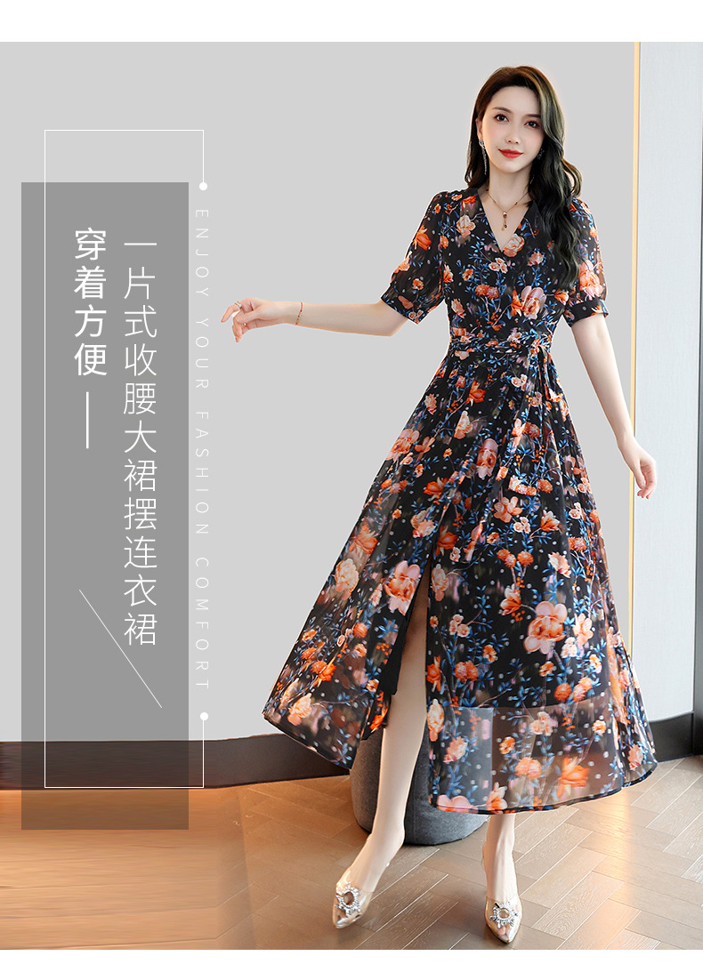2022新款夏装一片式收腰大裙摆印花中长款时尚垂感连衣裙 HR-LJY-CY22012