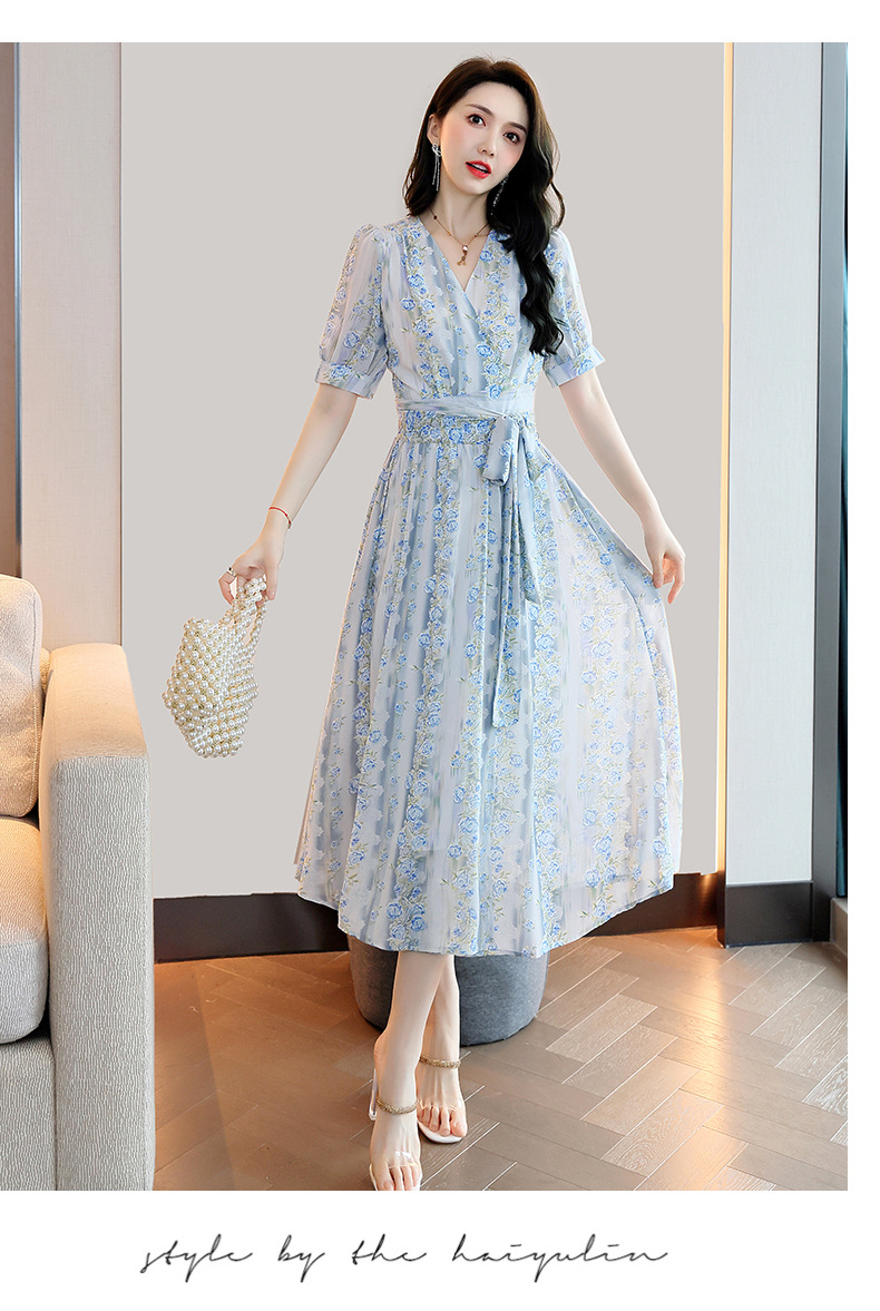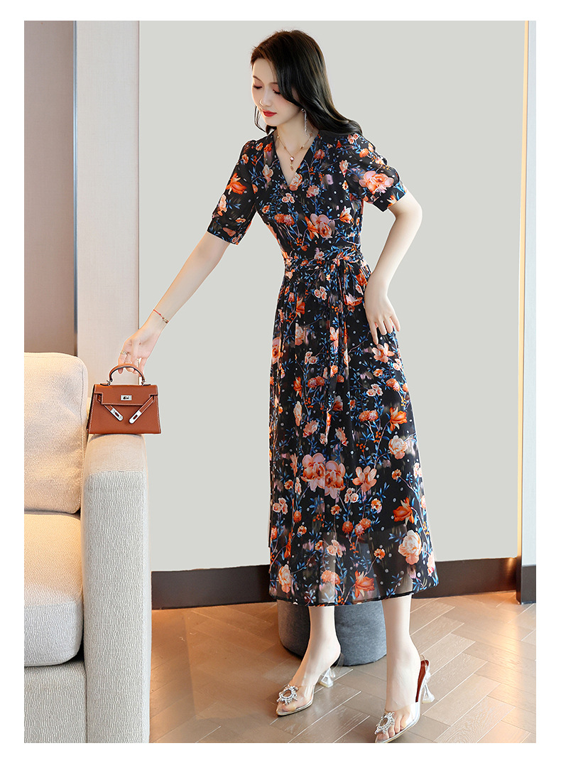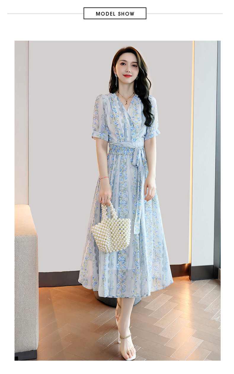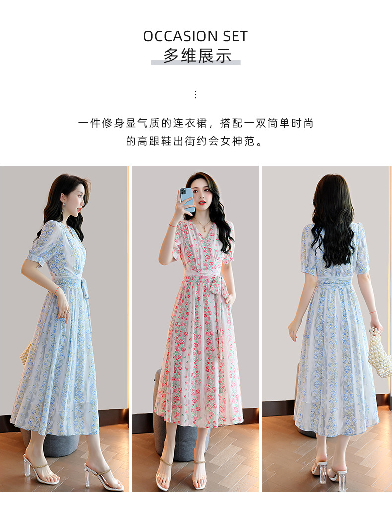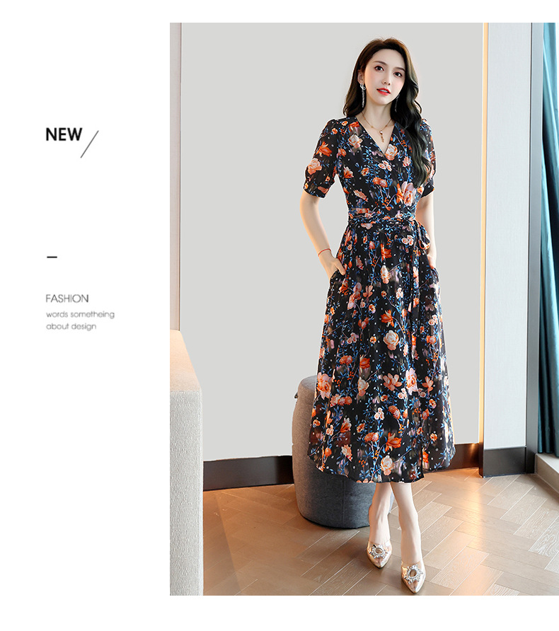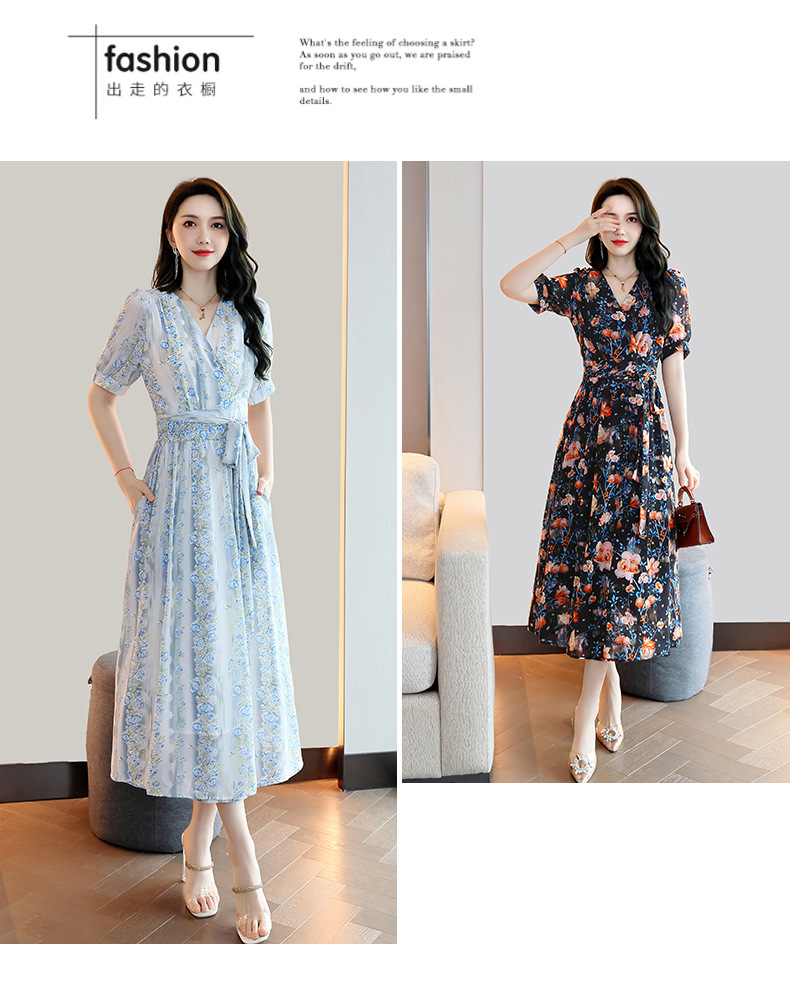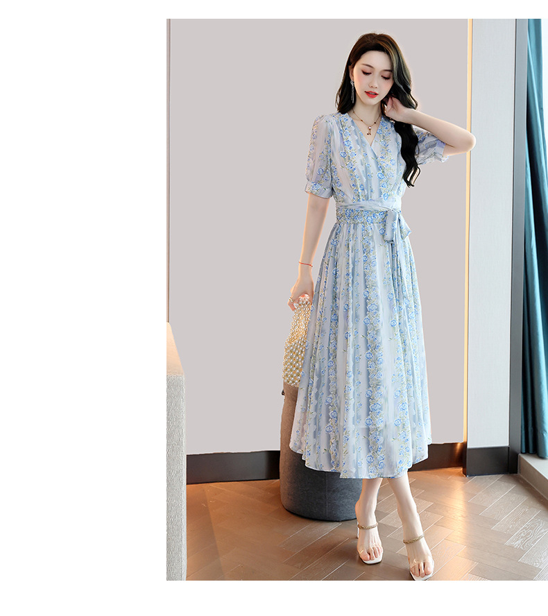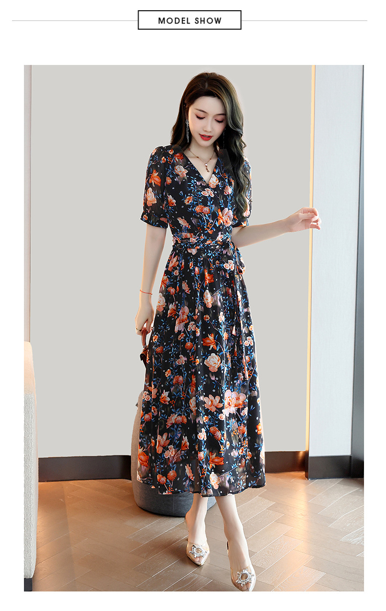 2022新款夏装一片式收腰大裙摆印花中长款时尚垂感连衣裙 HR-LJY-CY22012