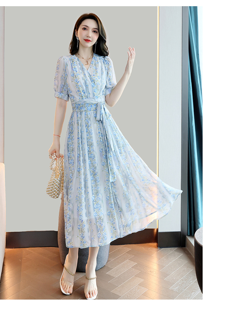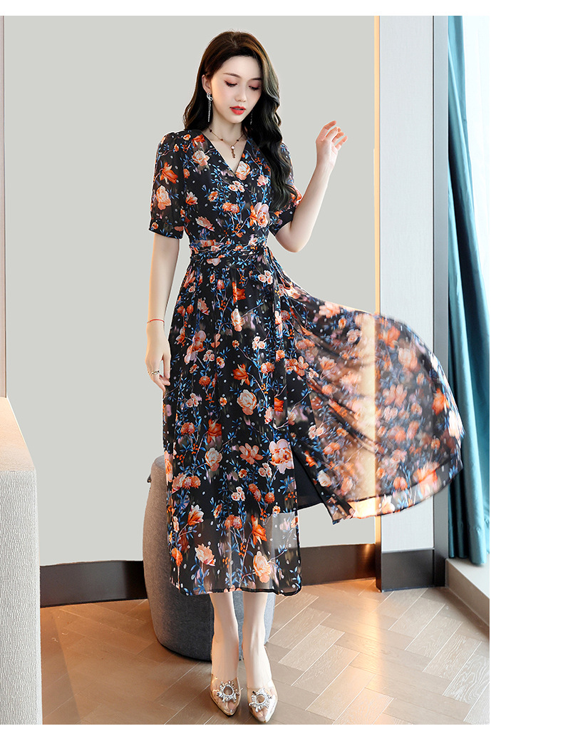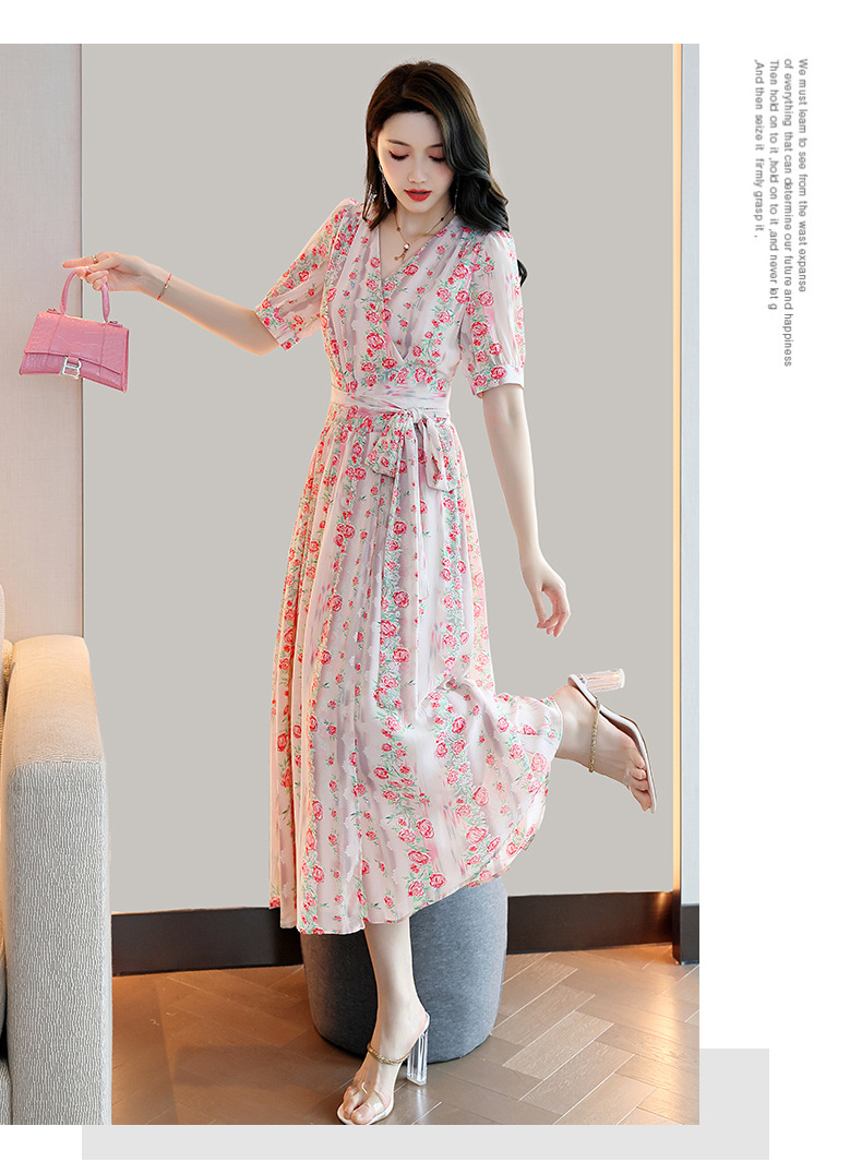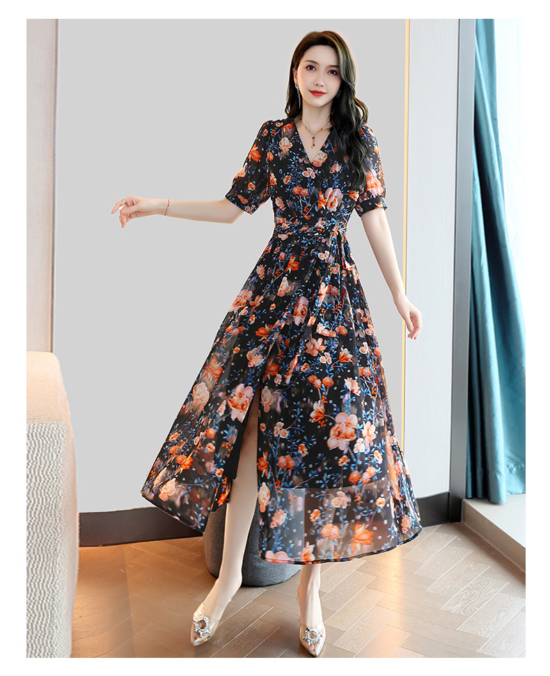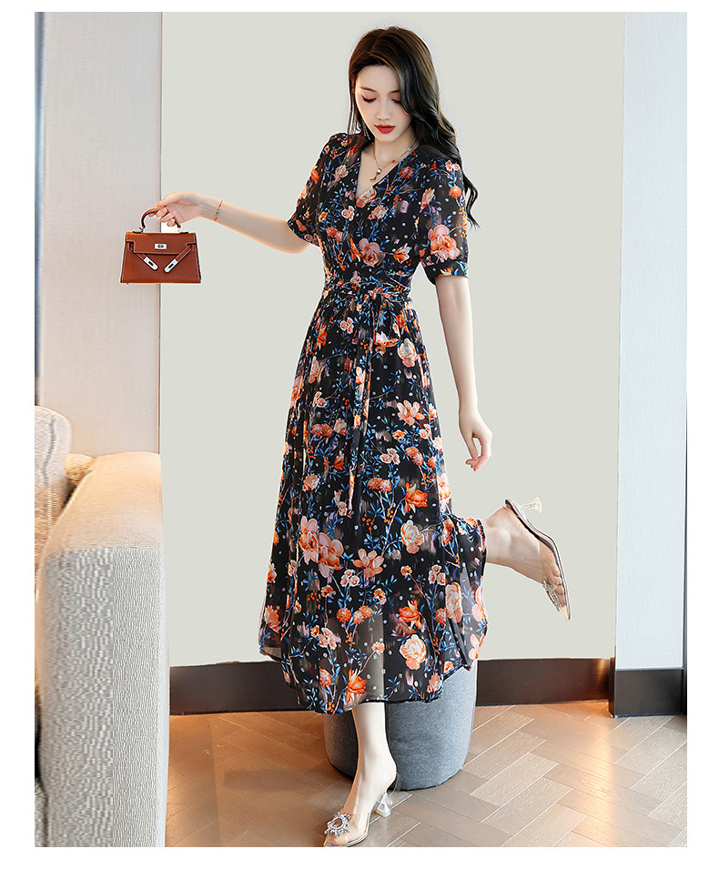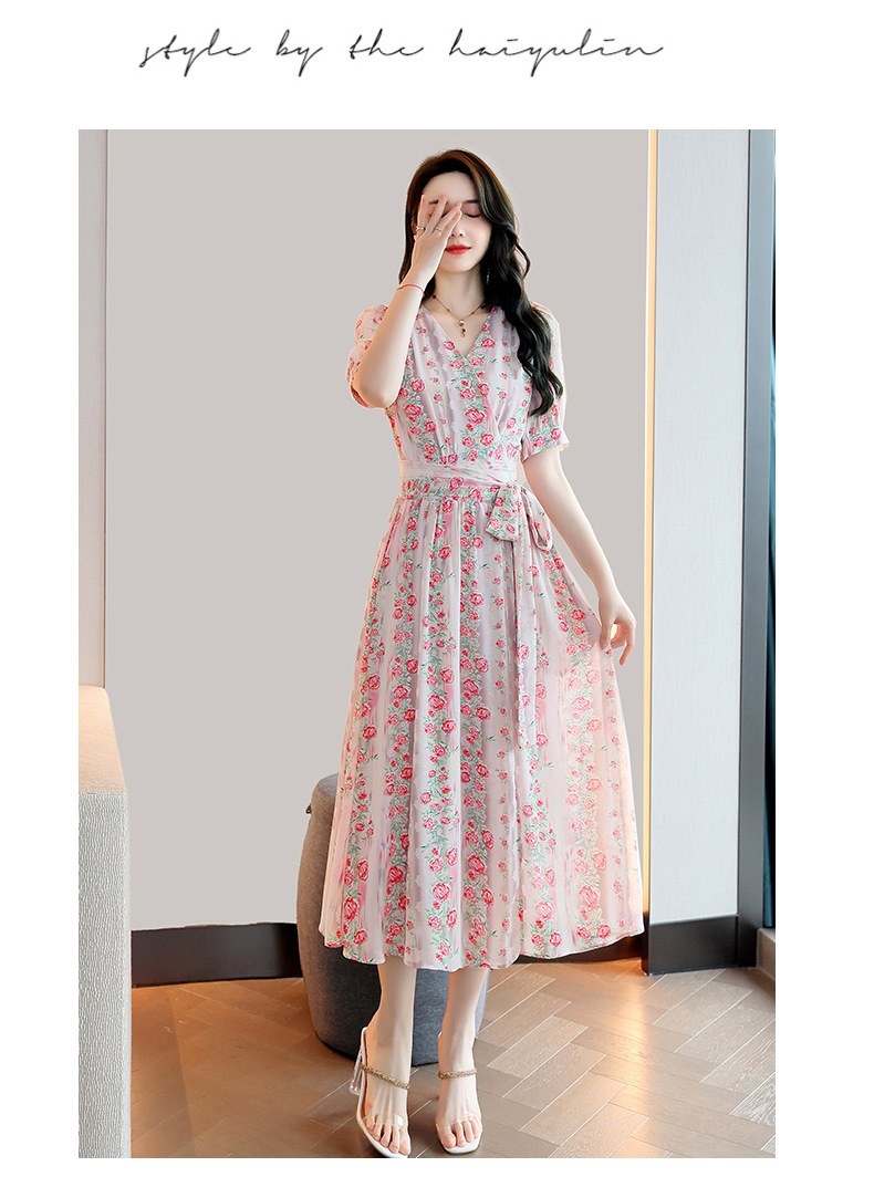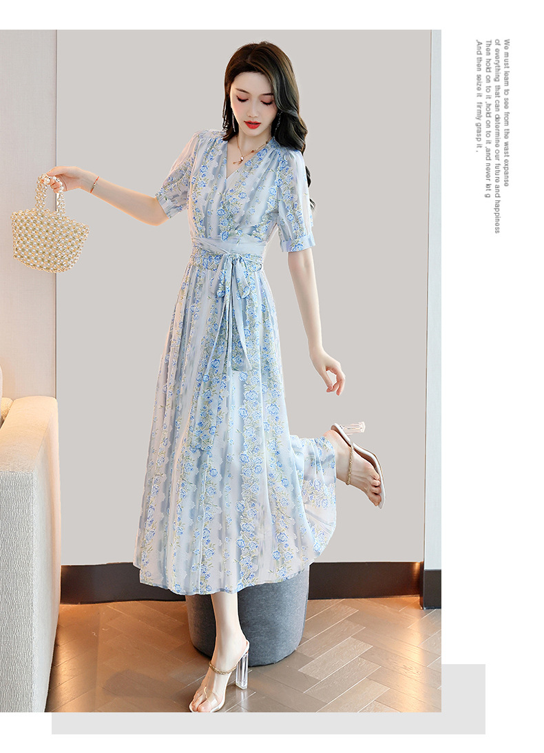 2022新款夏装一片式收腰大裙摆印花中长款时尚垂感连衣裙 HR-LJY-CY22012