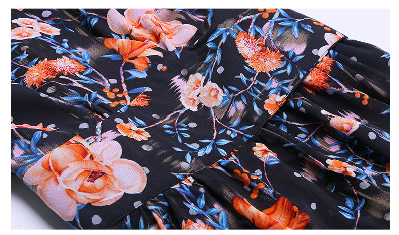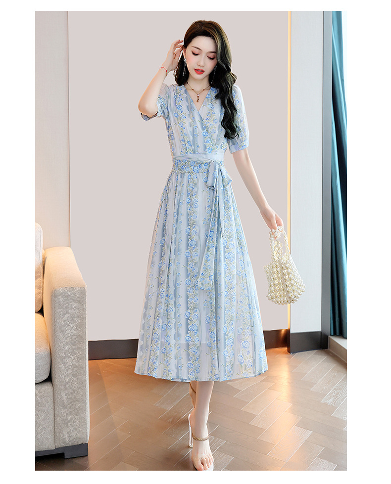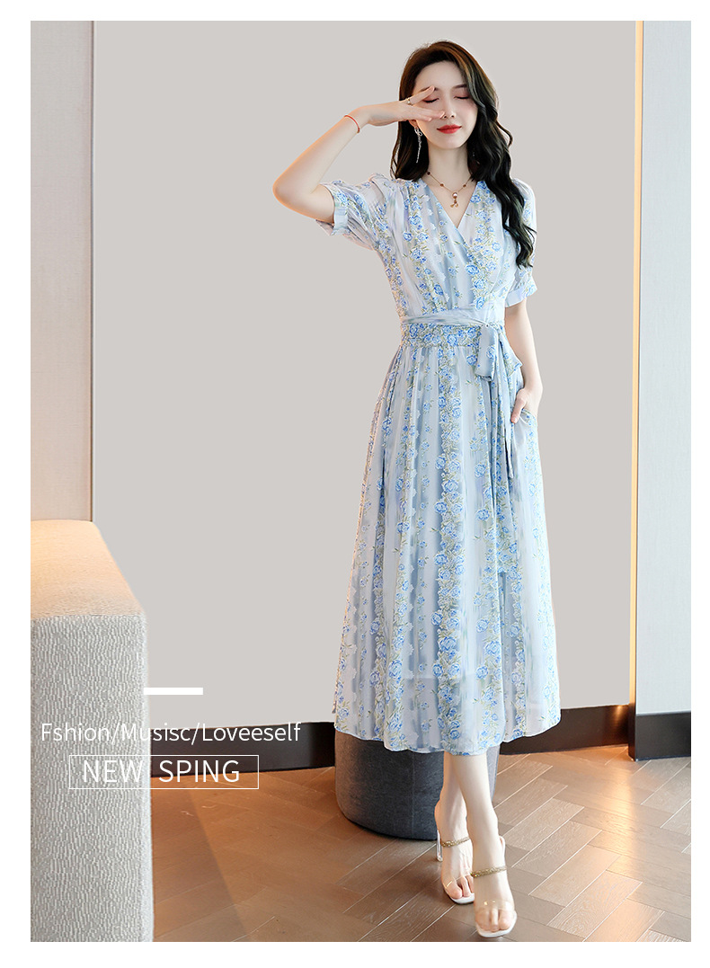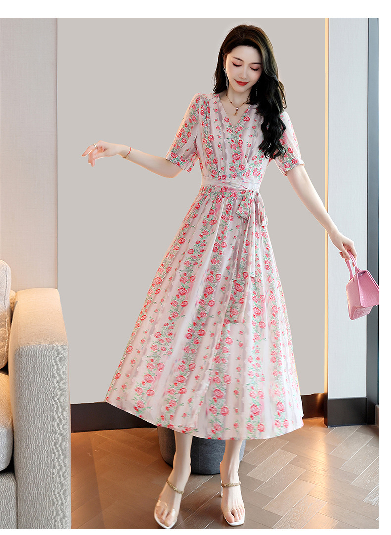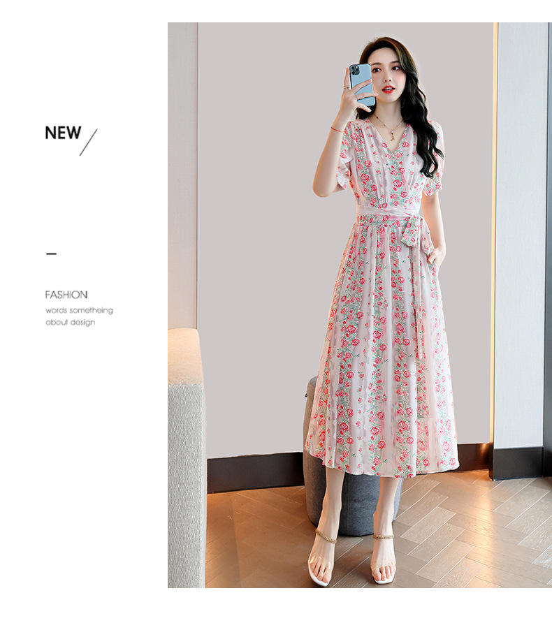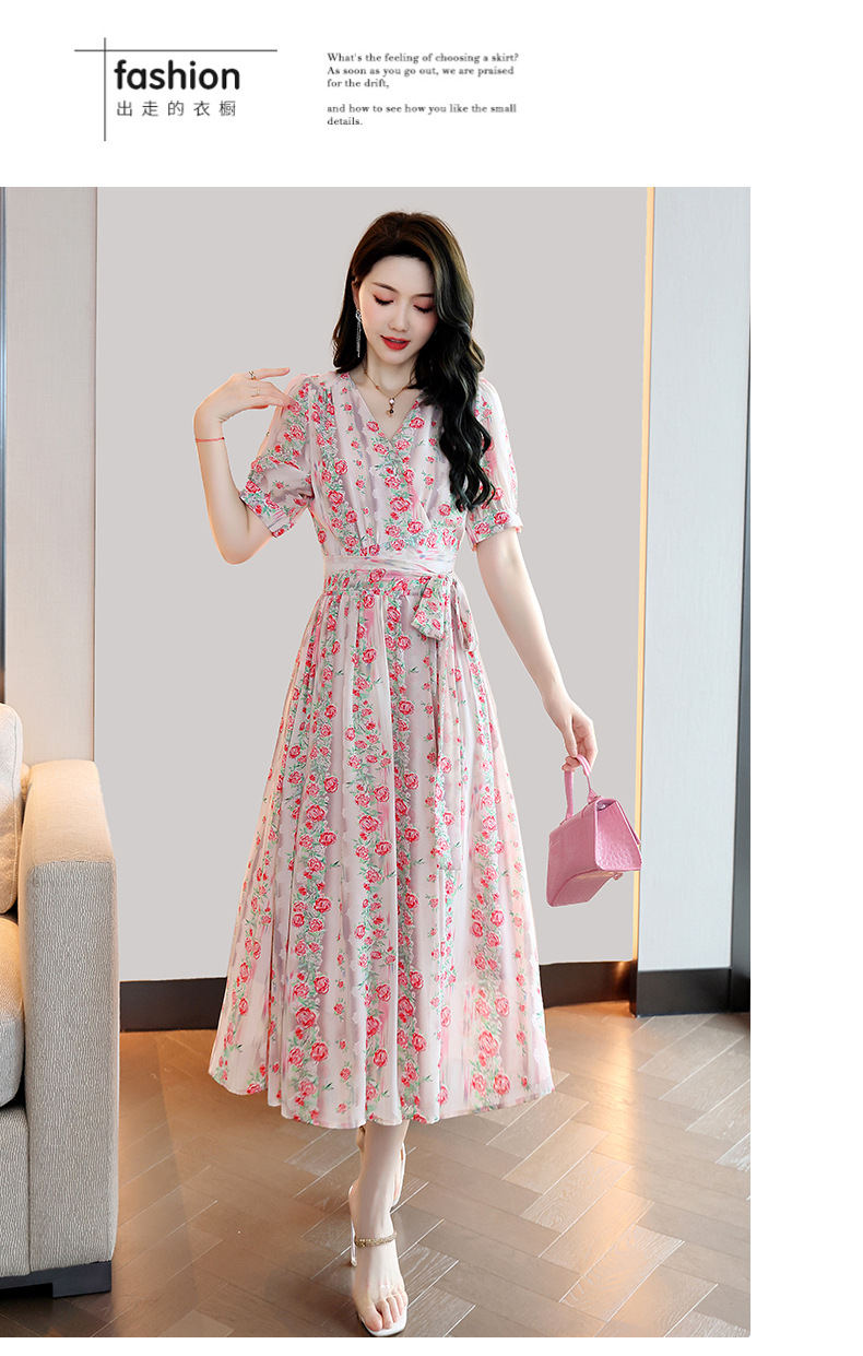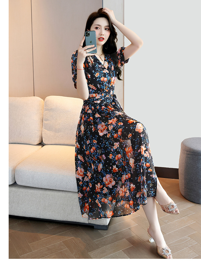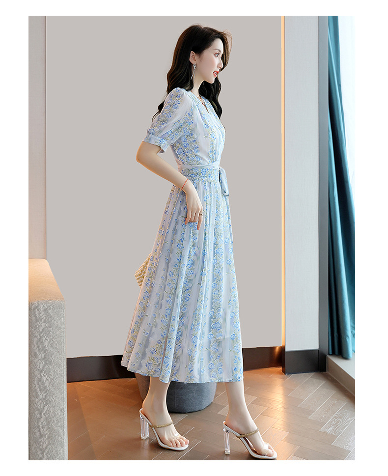 2022新款夏装一片式收腰大裙摆印花中长款时尚垂感连衣裙 HR-LJY-CY22012