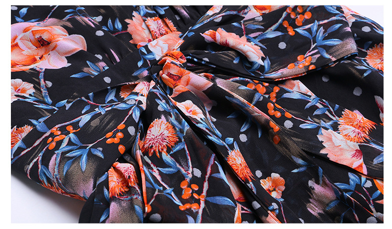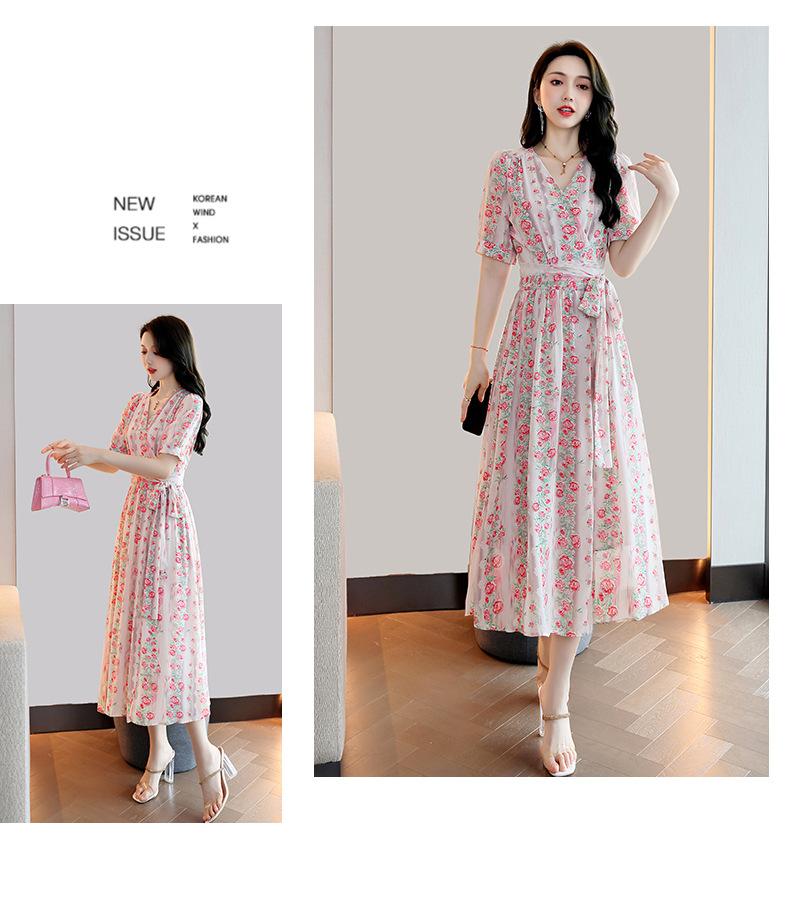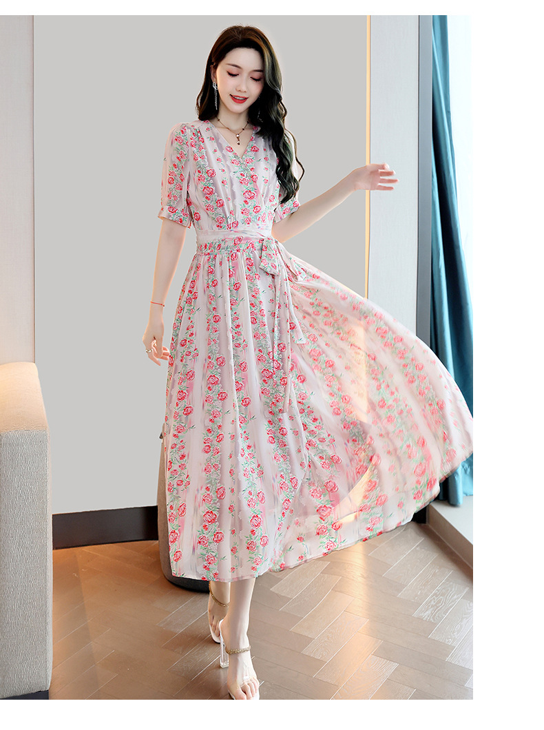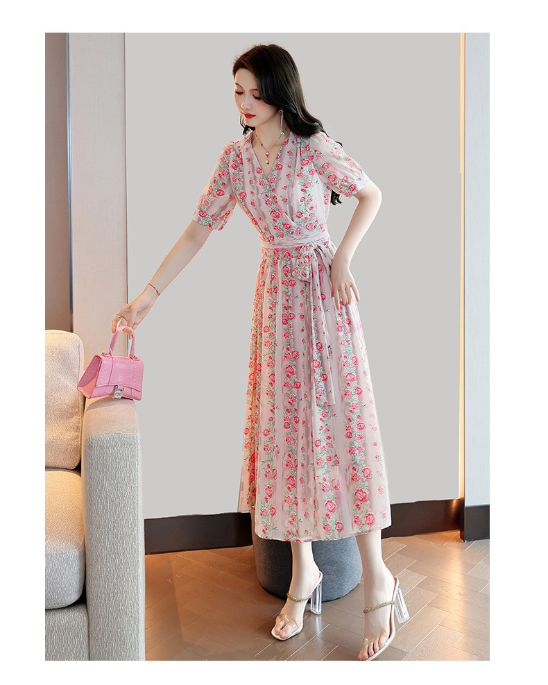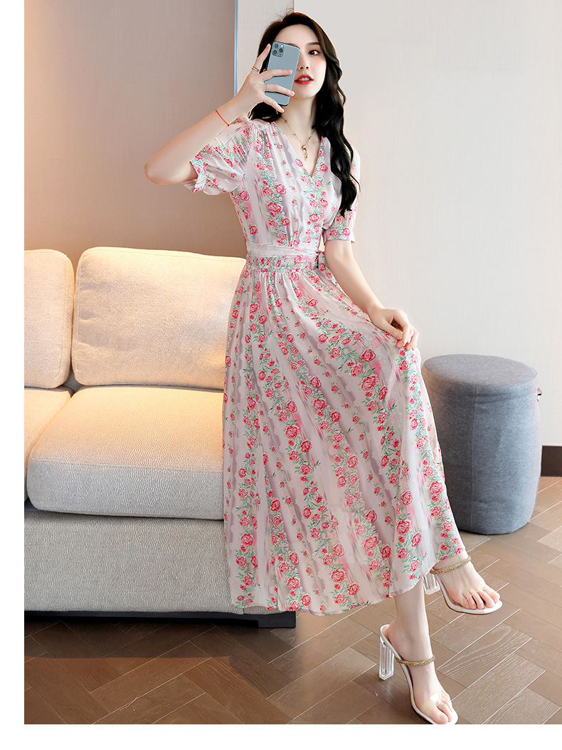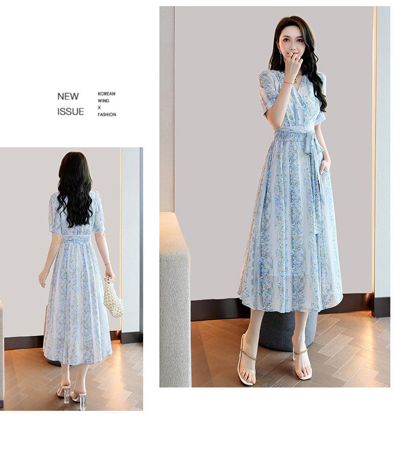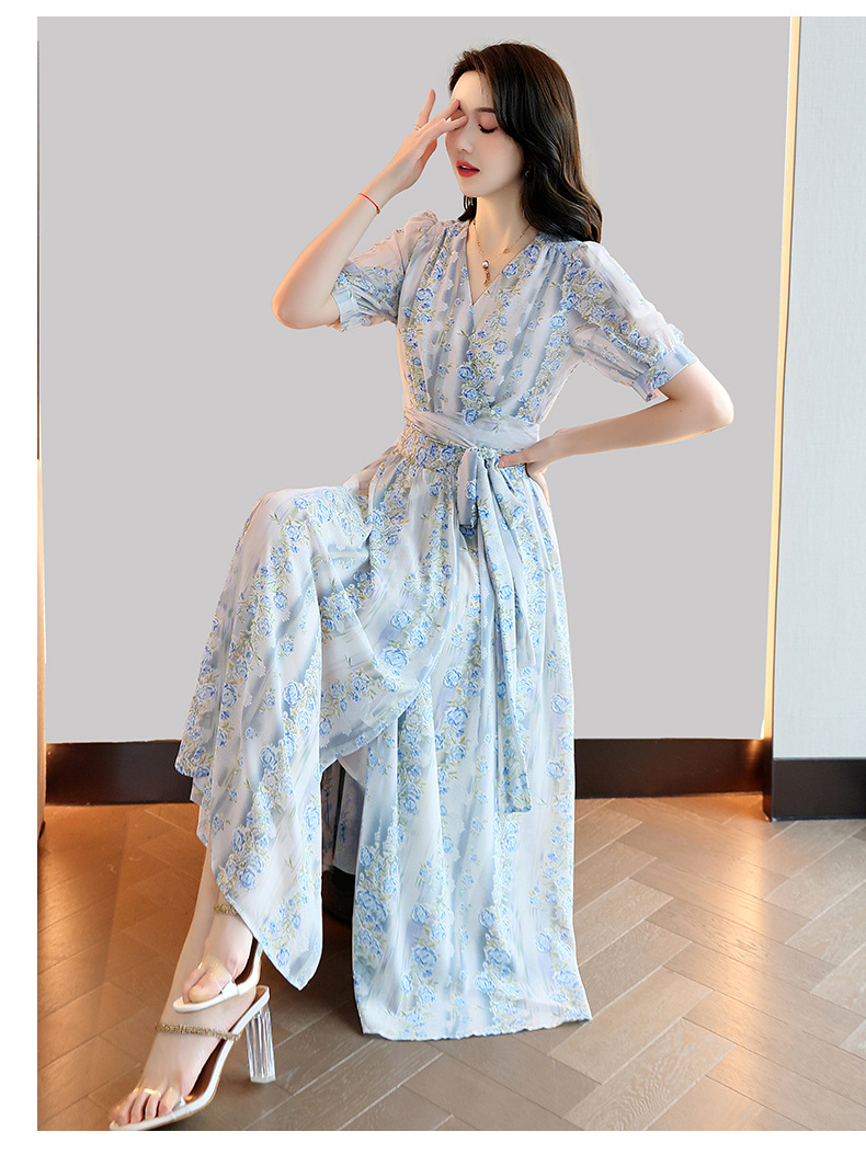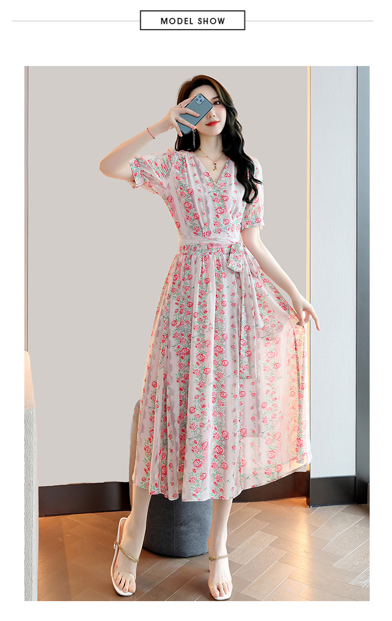 2022新款夏装一片式收腰大裙摆印花中长款时尚垂感连衣裙 HR-LJY-CY22012