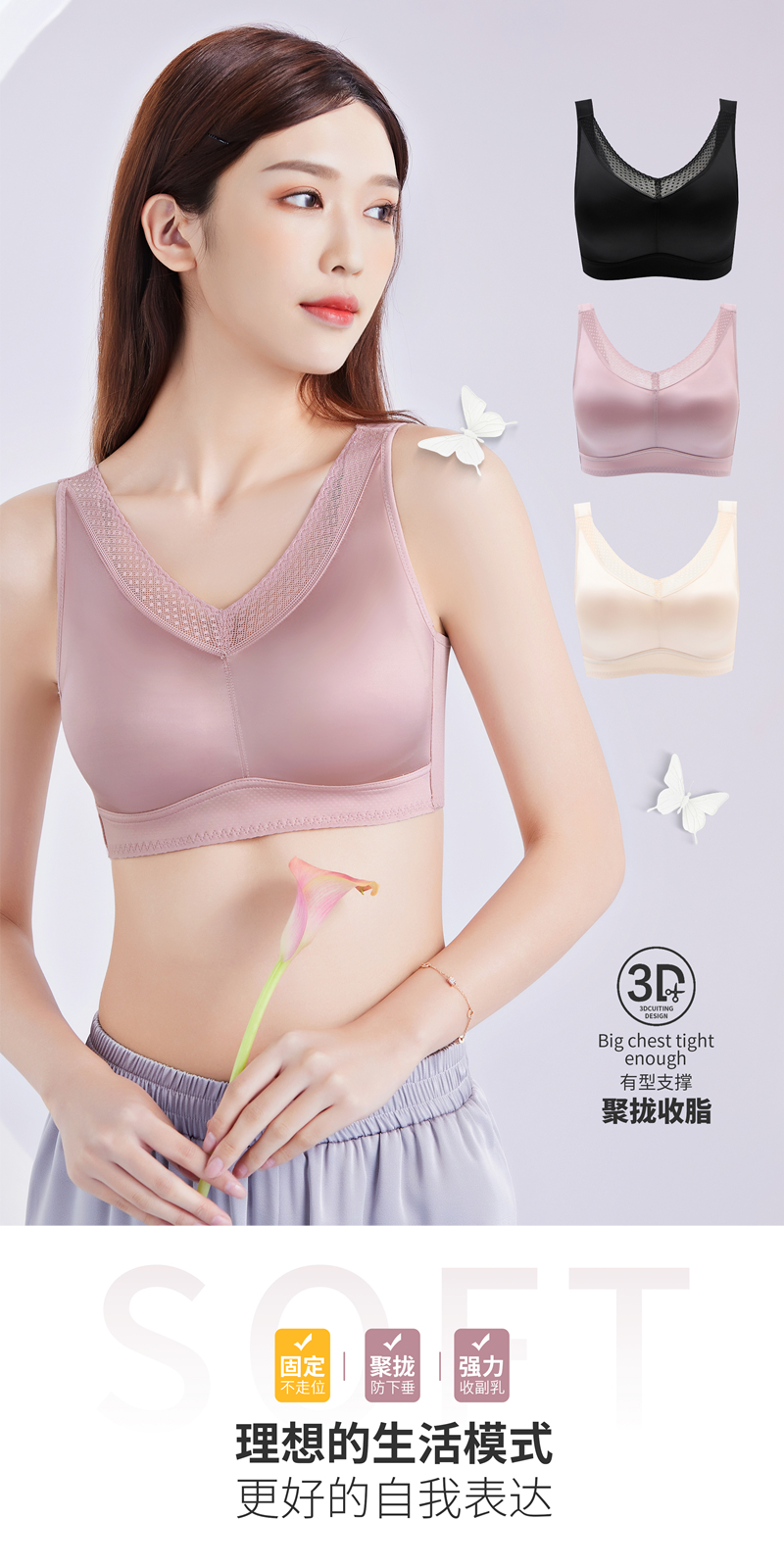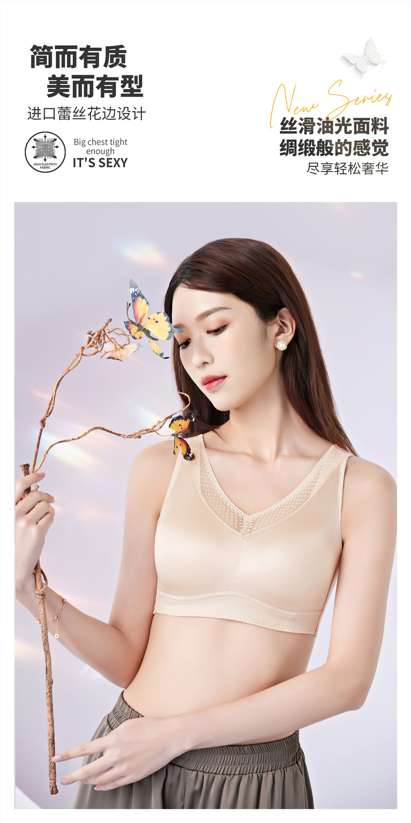 (299元/2件)蚕丝蛋白光面锁边文胸53066