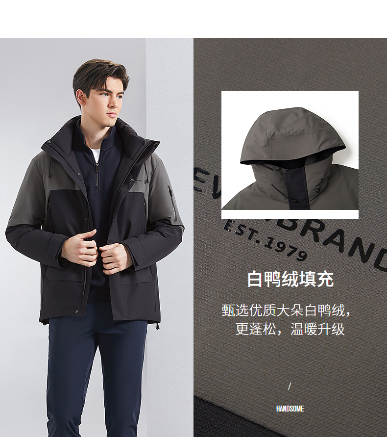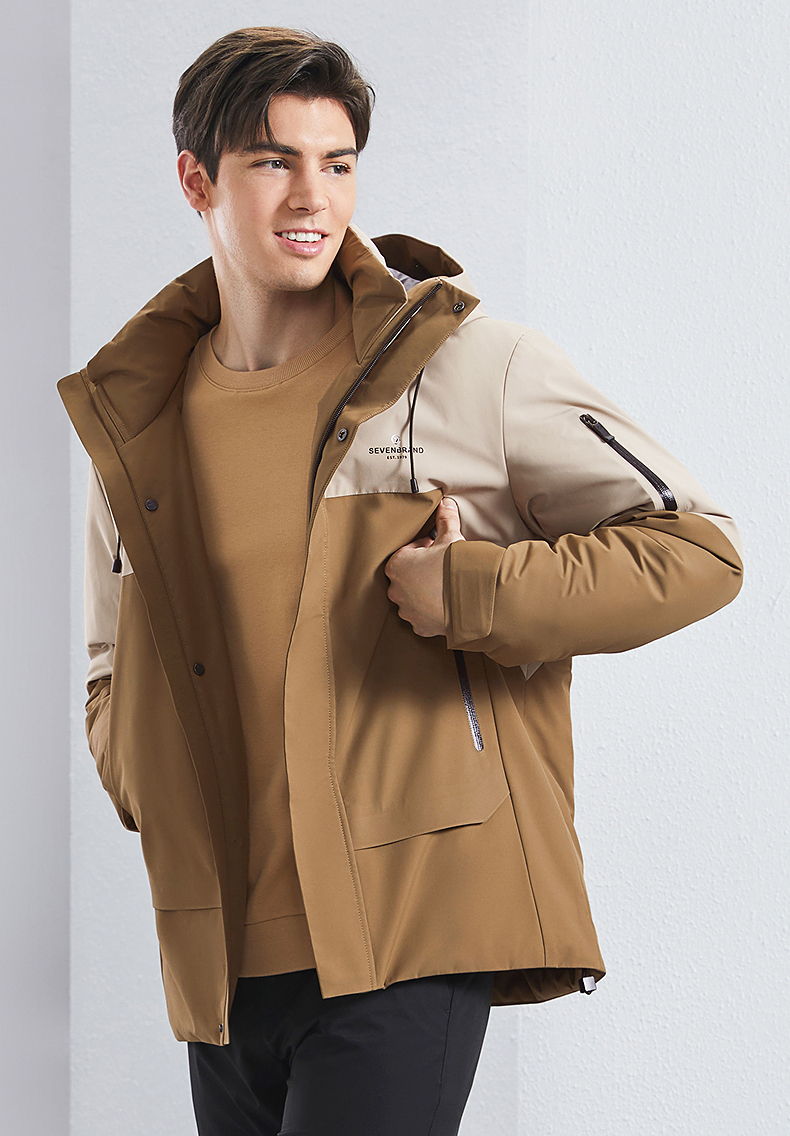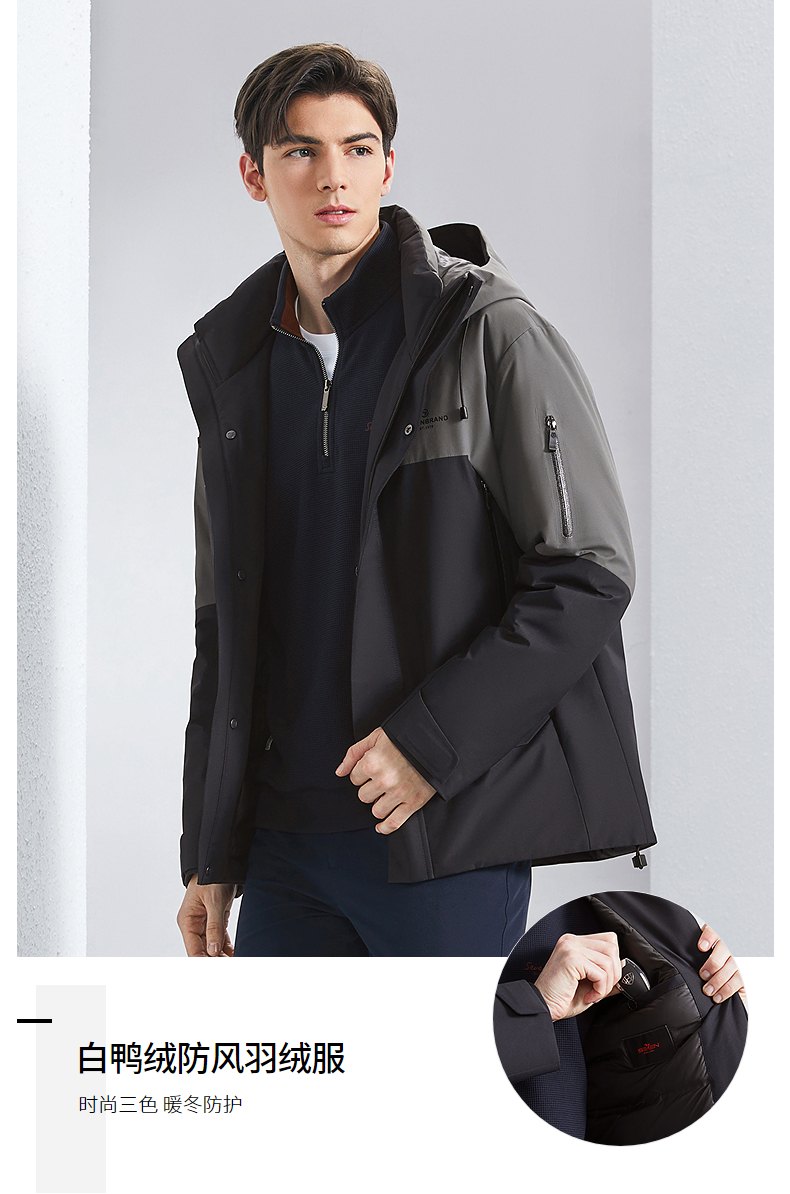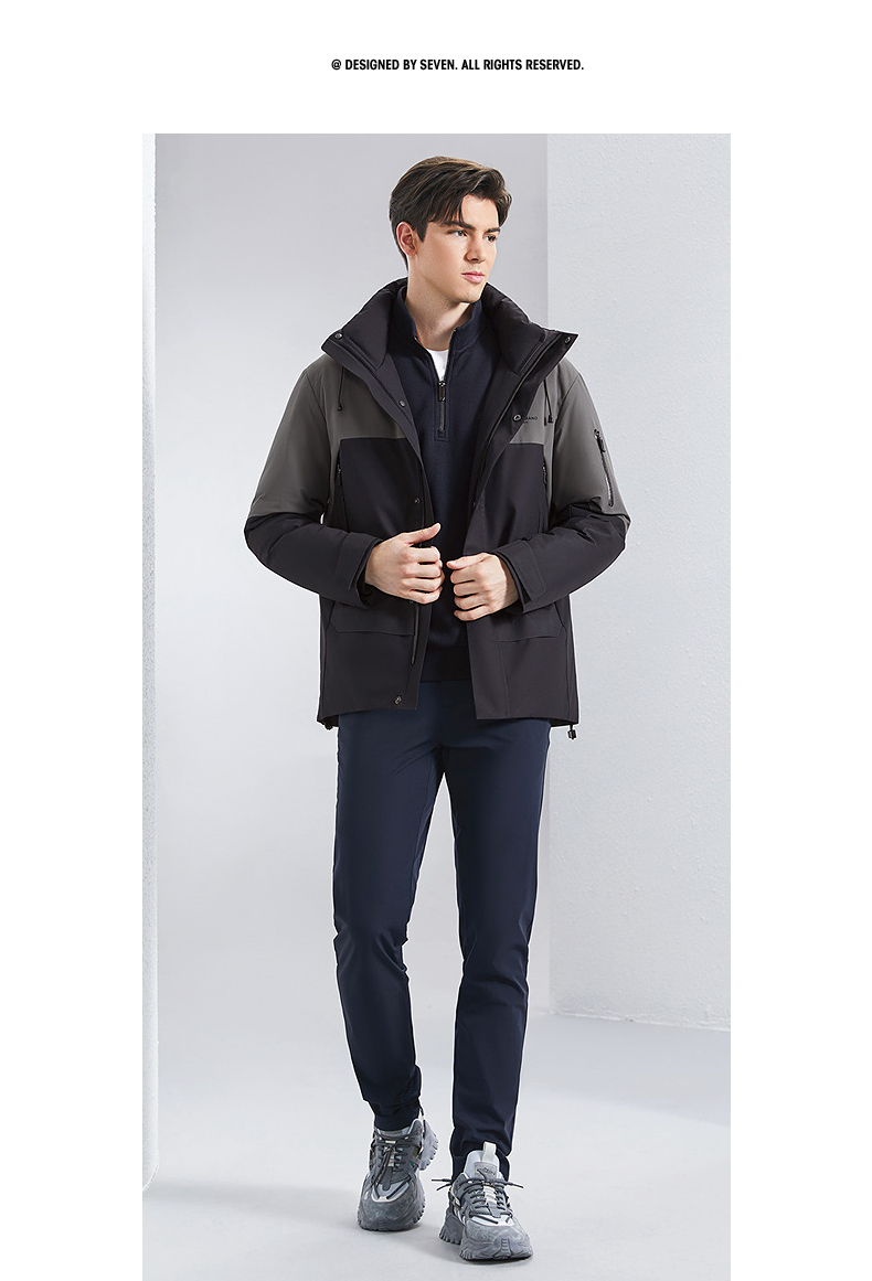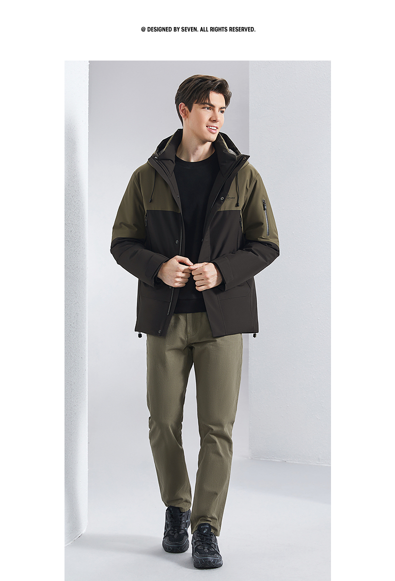 【白鸭绒】柒牌羽绒服男连帽冬季新款字母印花时尚休闲保暖厚外套 127E70190