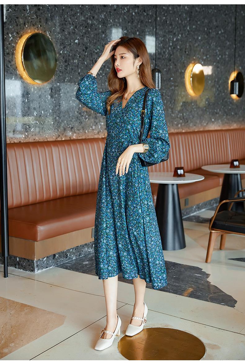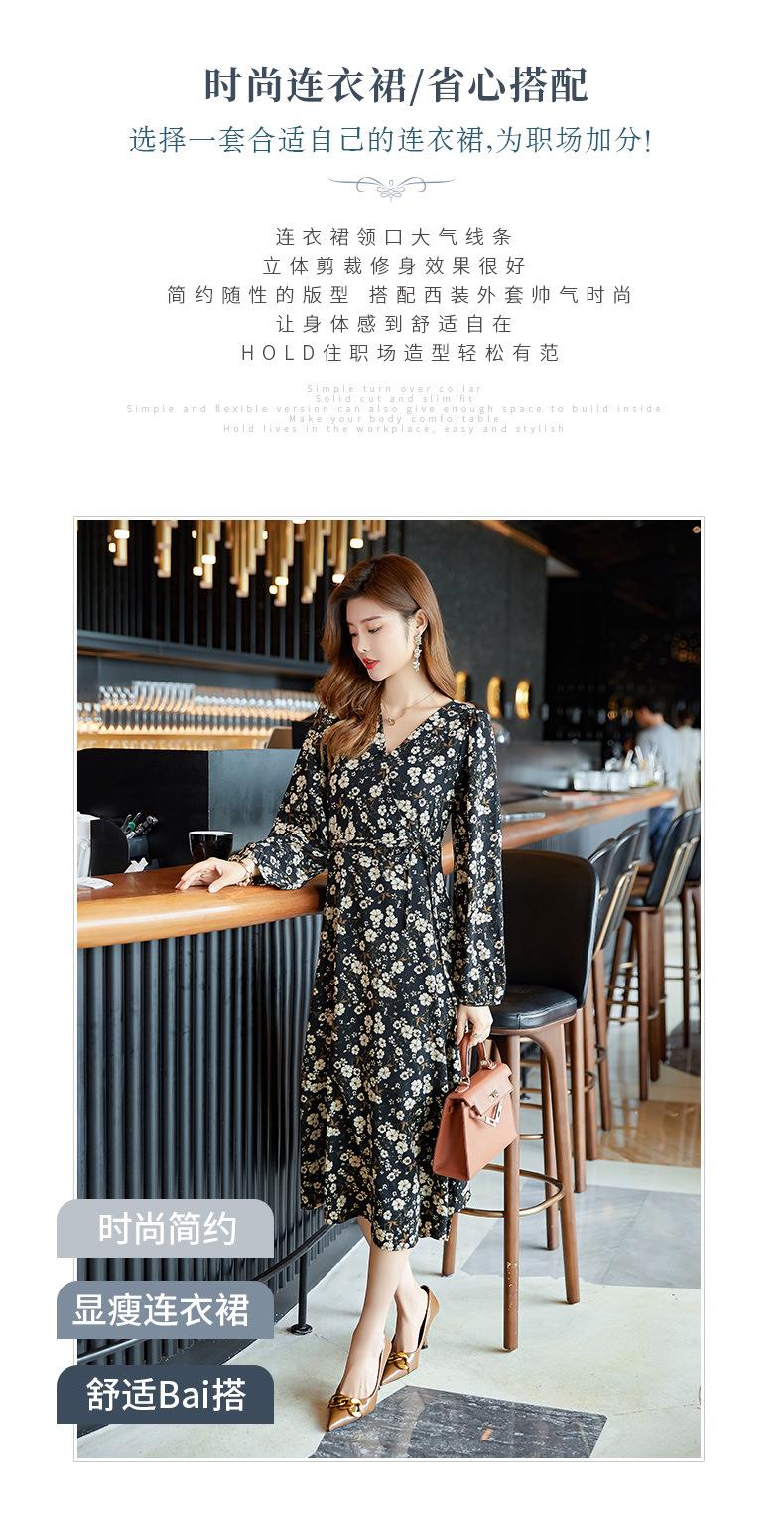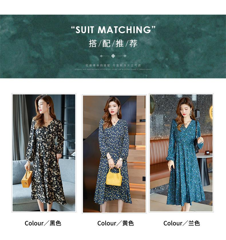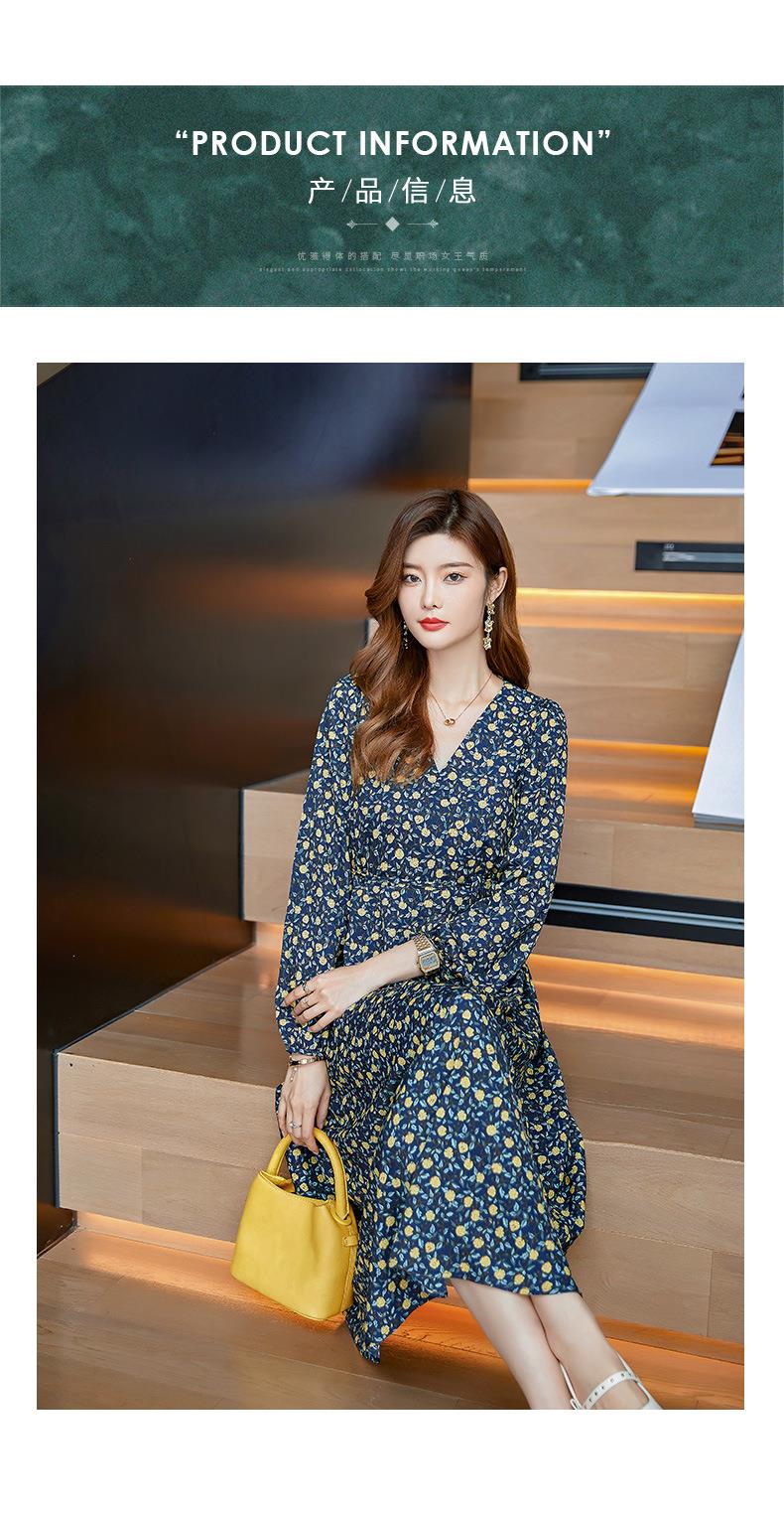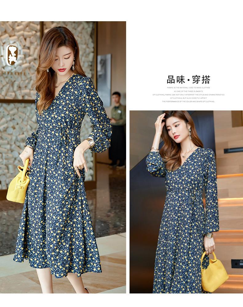 娜璐多 碎花连衣裙女2023春秋V领气质复古度假风宽松显瘦长袖雪纺长裙女