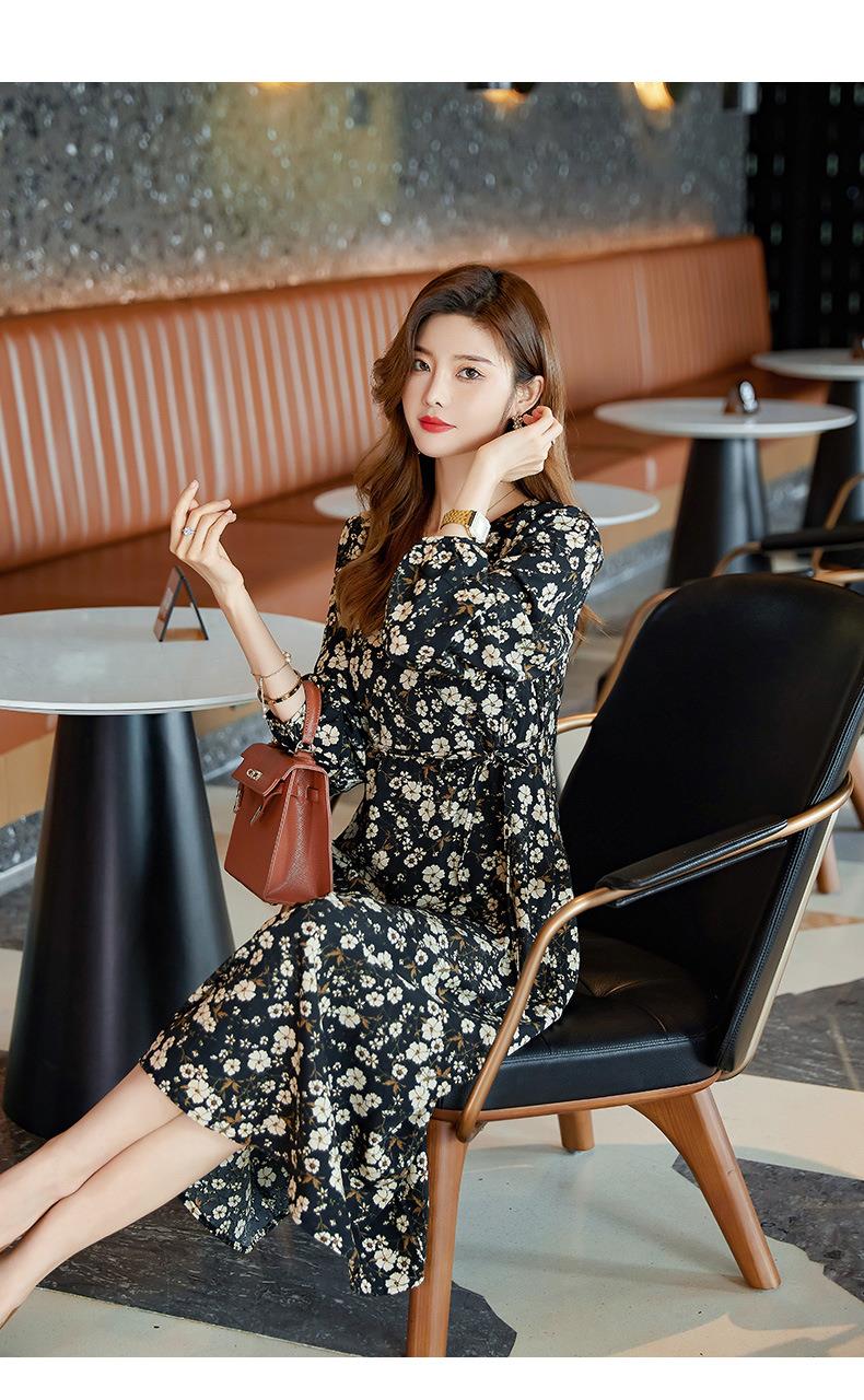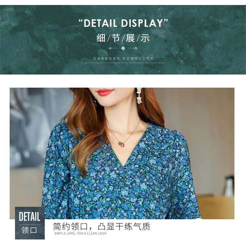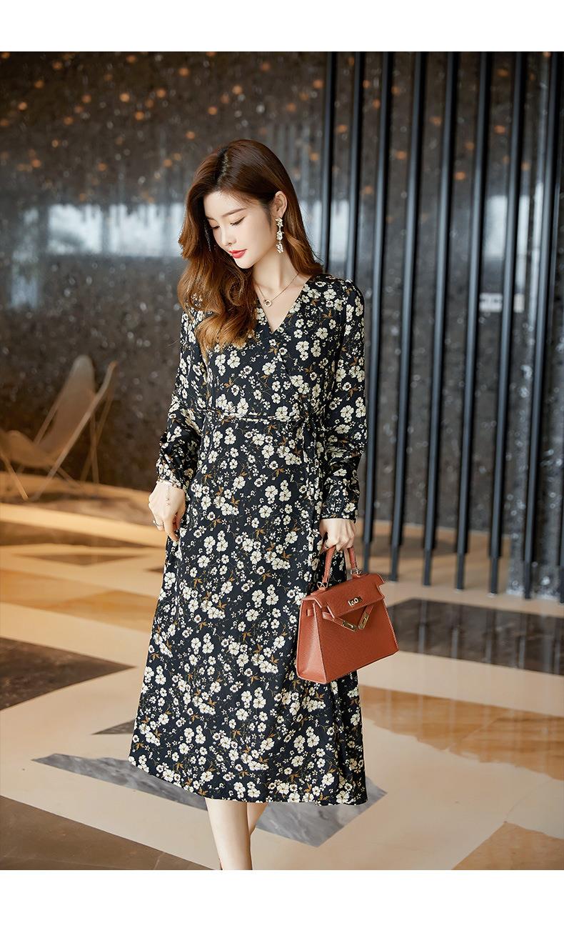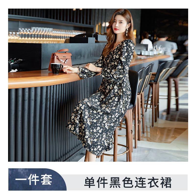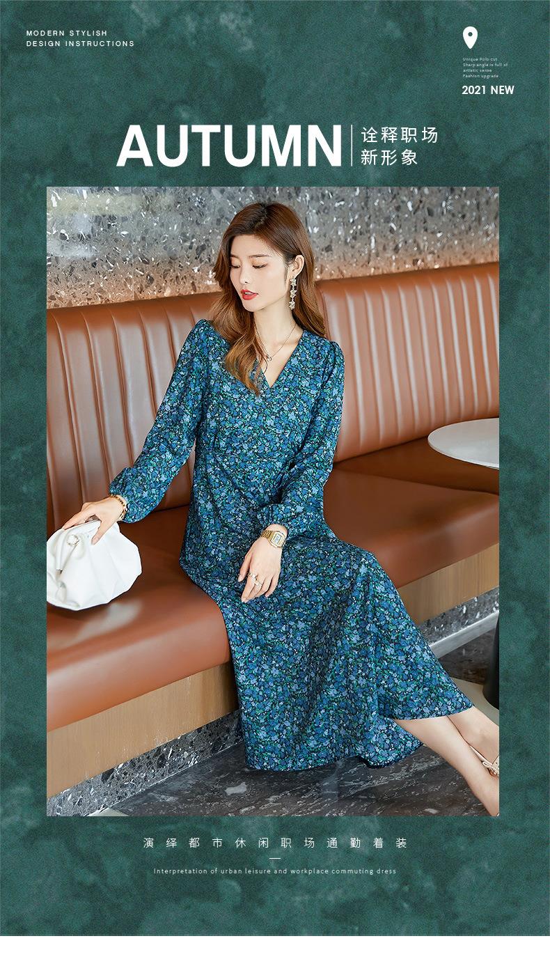 娜璐多 碎花连衣裙女2023春秋V领气质复古度假风宽松显瘦长袖雪纺长裙女