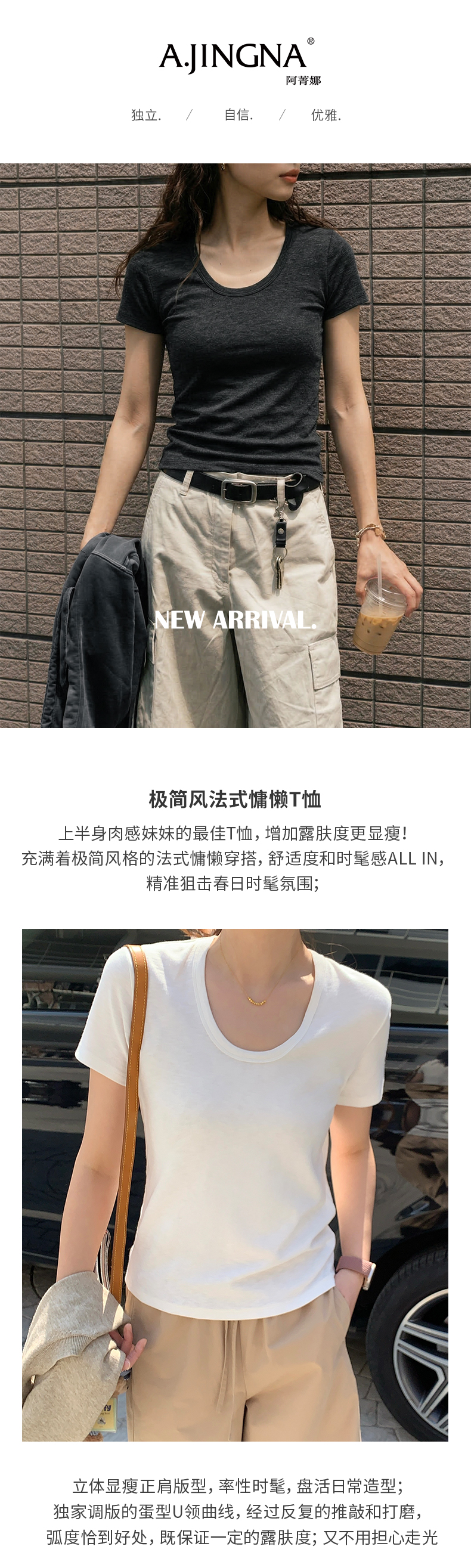 【率性时髦】阿菁娜极简风法式慵懒短袖T恤F31C301026