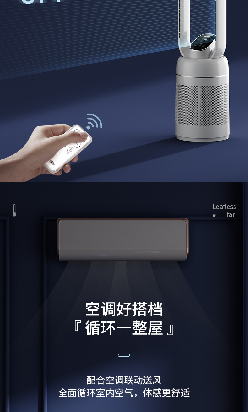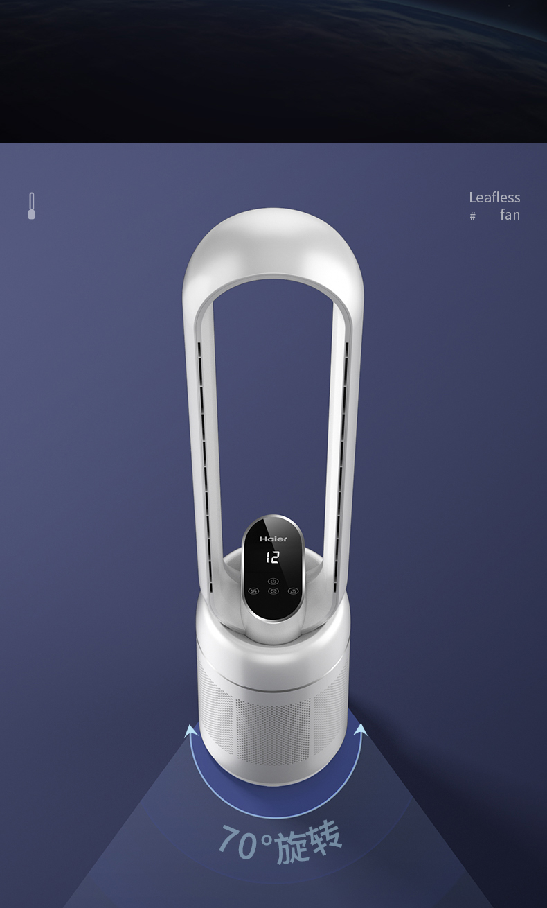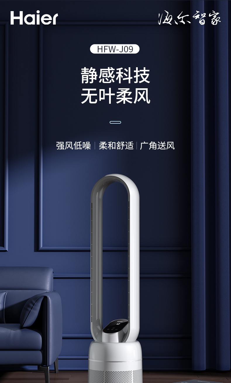海尔(Haier)无叶风扇家用办公室空气循环扇直流变频落地扇风扇塔扇立式电风扇 遥控款HFW-J09