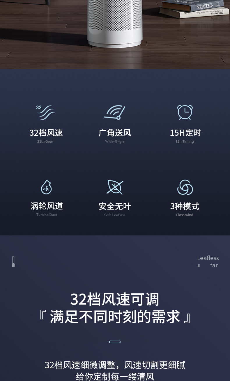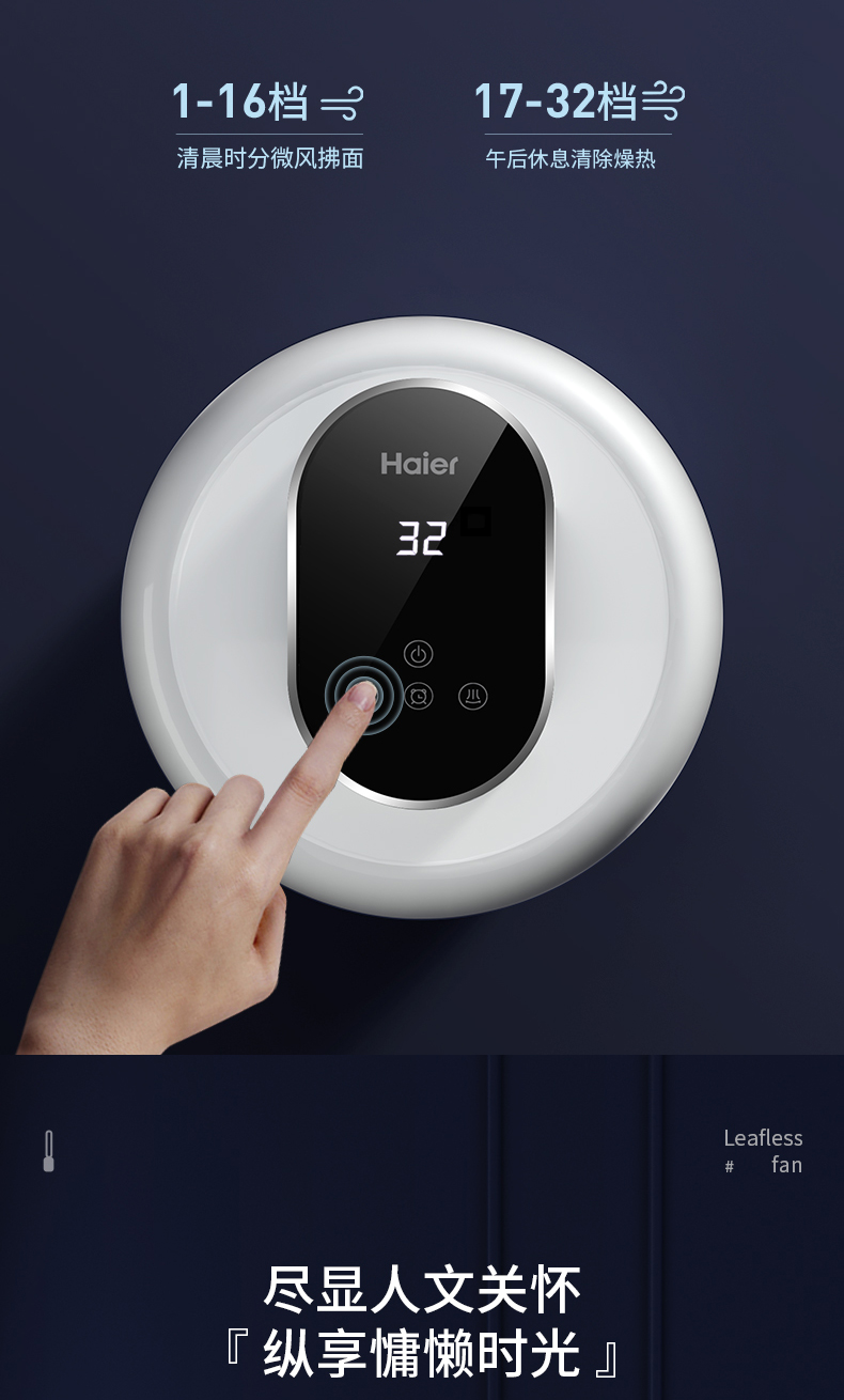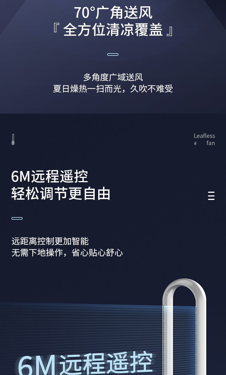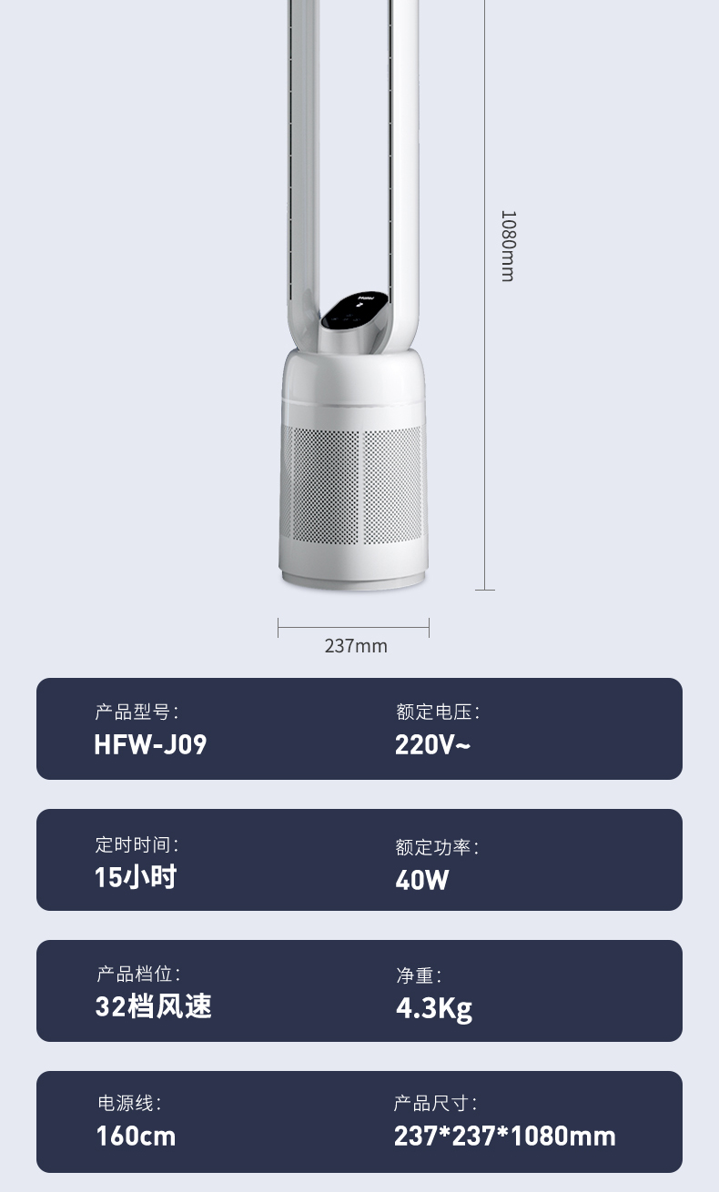 海尔(Haier)无叶风扇家用办公室空气循环扇直流变频落地扇风扇塔扇立式电风扇 遥控款HFW-J09