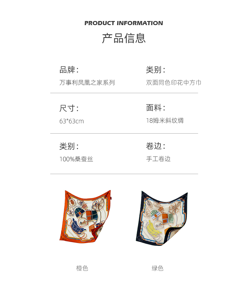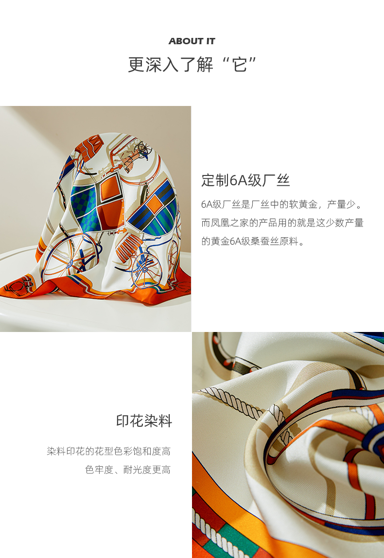 凤凰之家“抵达浪漫”63厘米双面印花中方巾
