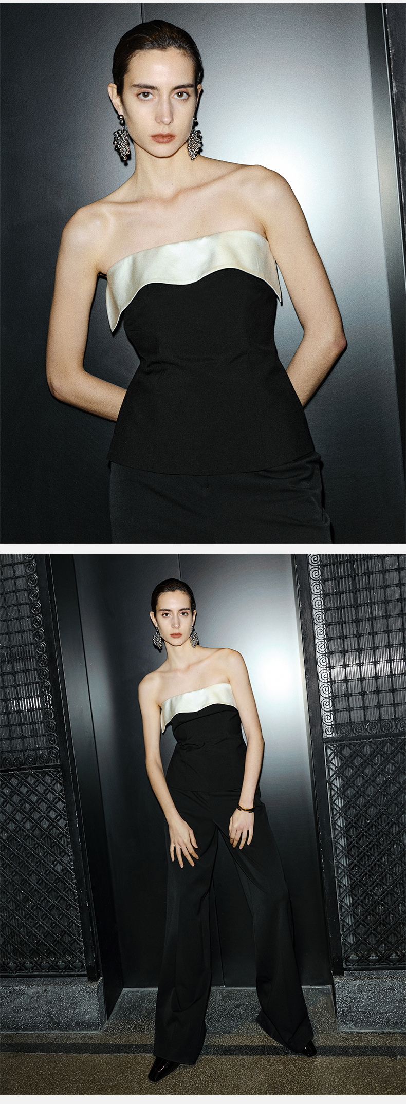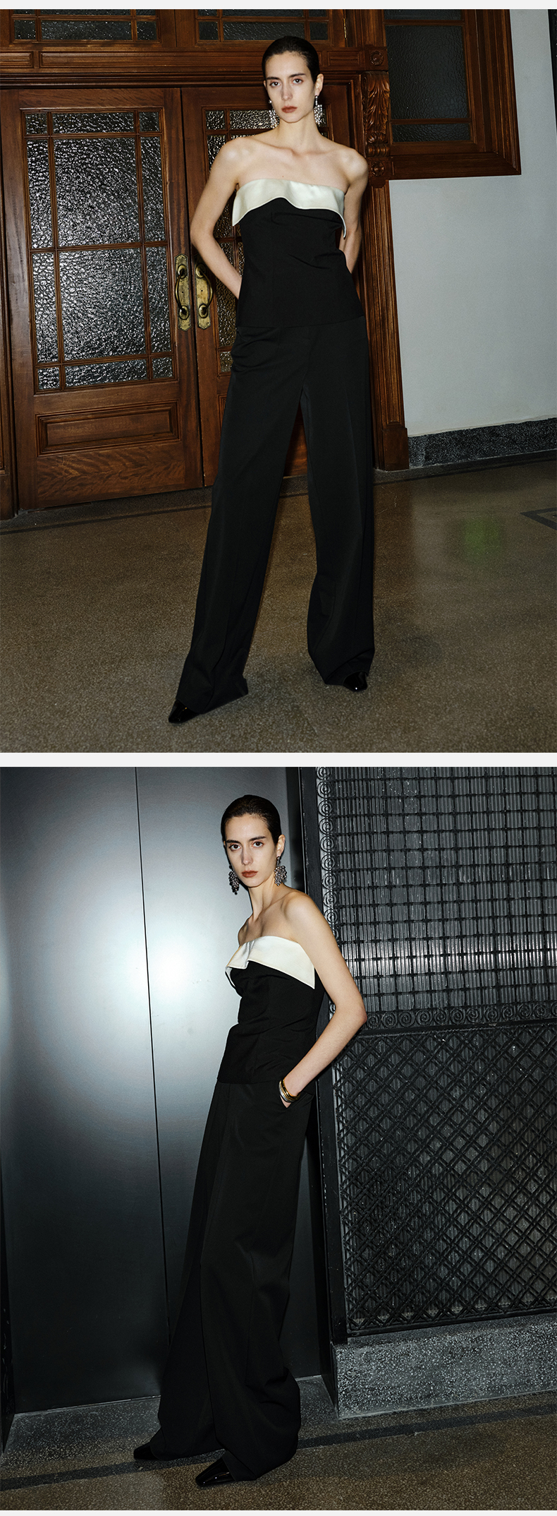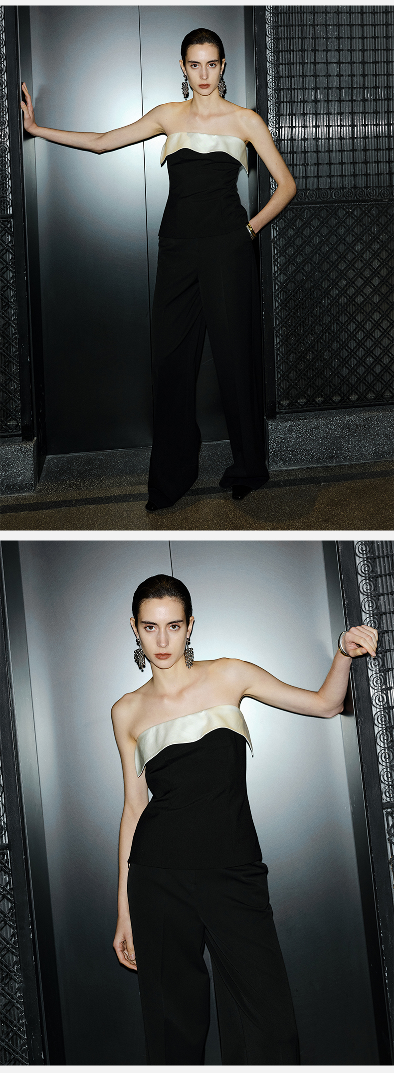 HIDEMI 节日系列轻礼服极简花苞翻边式设计感精纺羊毛醋酸抹胸