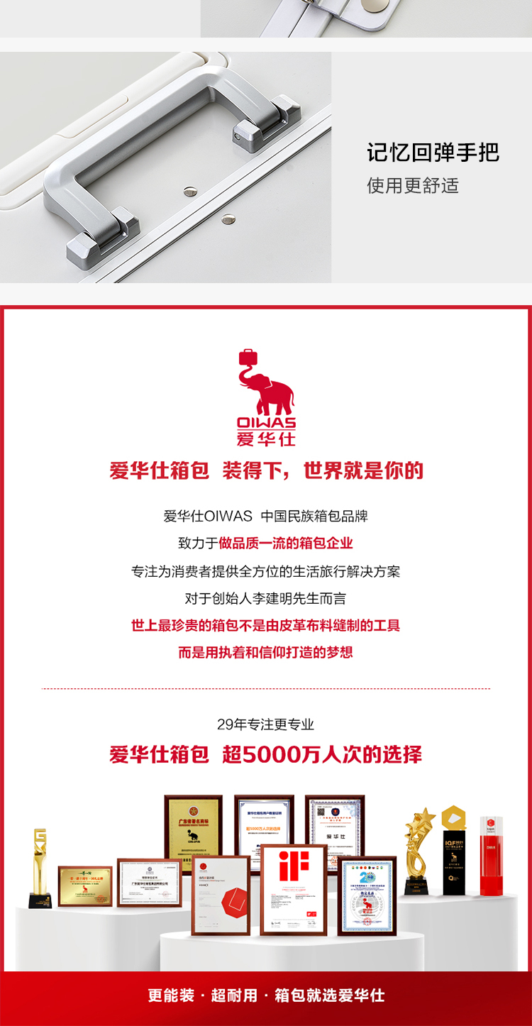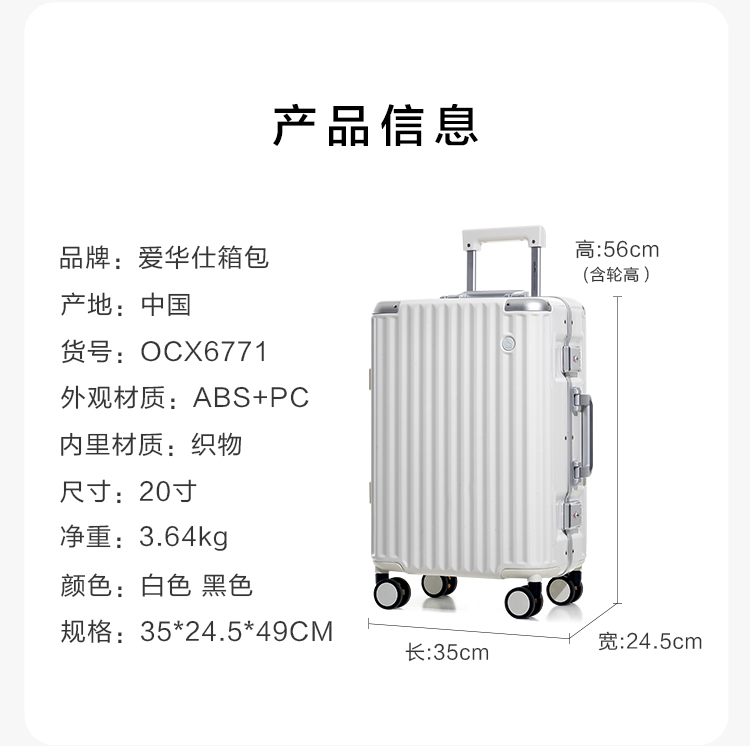爱华仕(OIWAS) 铝框拉杆箱 磨砂防刮 四角金属防撞登机箱OCX6771-20