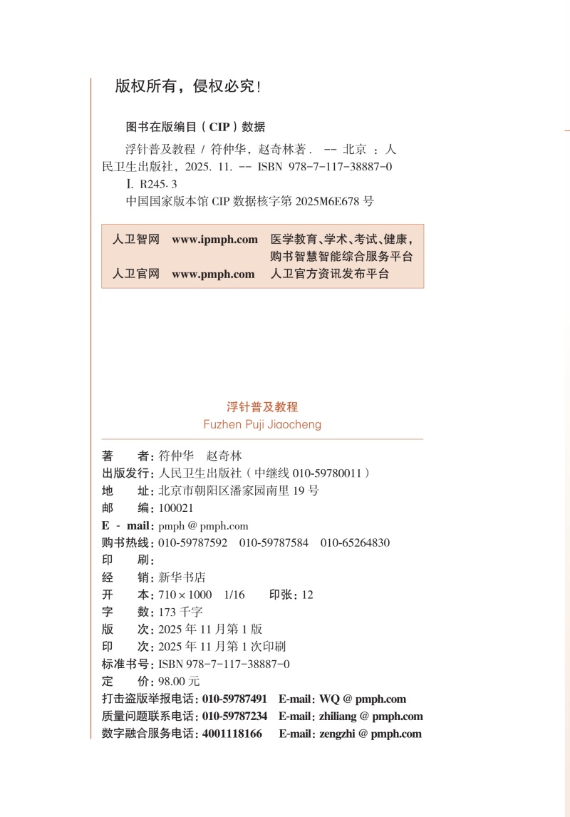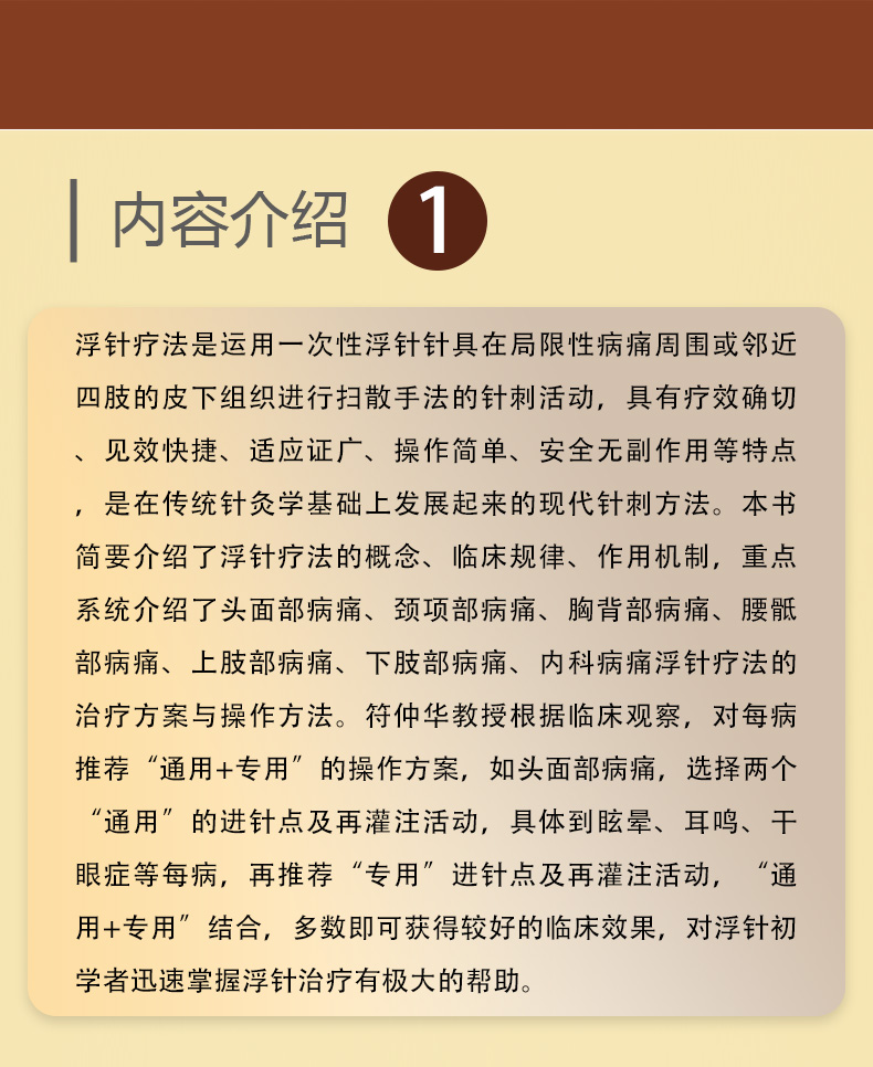 浮针普及教程 符仲华 赵奇林 重点系统介绍了头面部病痛、颈项部病痛、胸背部病痛等浮针疗法的治疗方案与操作方法 人民卫生出版社
