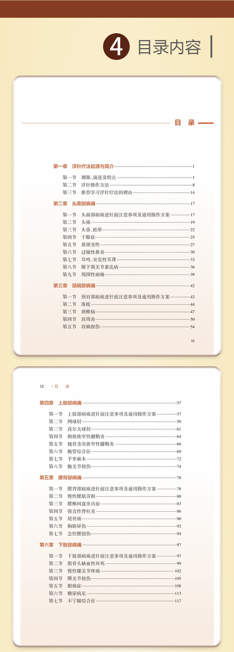 浮针疗法是运用一次性浮针针具在局限性病痛周围或邻近四肢的皮下组织进行扫散手法的针刺活动,具有疗效确切、见效快捷、适应证广、操作简单、安全无副作用等特点,是在传统针灸学基础上发展起来的现代针刺方法。本书简要介绍了浮针疗法的概念、临床规律、作用机制,重点系统介绍了头面部病痛、颈项部病痛、胸背部病痛、腰骶部病痛、上肢部病痛、下肢部病痛、内科病痛浮针疗法的治疗方案与操作方法。符仲华教授根据临床观察,对每病推荐“通用+专用”的操作方案,如头面部病痛,选择两个“通用”的进针点及再灌注活动,具体到眩晕、耳鸣、干眼症等每病,再推荐“专用”进针点及再灌注活动,“通用+专用”结合,多数即可获得较好的临床效果,对浮针初学者迅速掌握浮针治疗有极大的帮助。