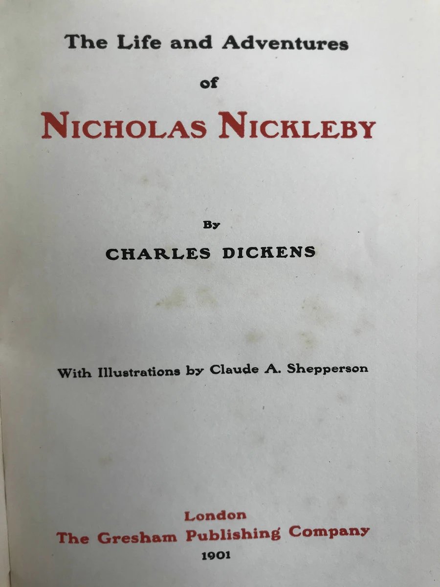 1901年 狄更斯《尼古拉斯·尼克贝》 8幅插图 漆布精装大32开