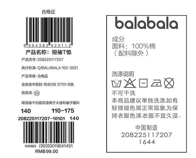 巴拉巴拉童装儿童短袖t恤男童上衣大童女童2025新款速干夏装纯棉