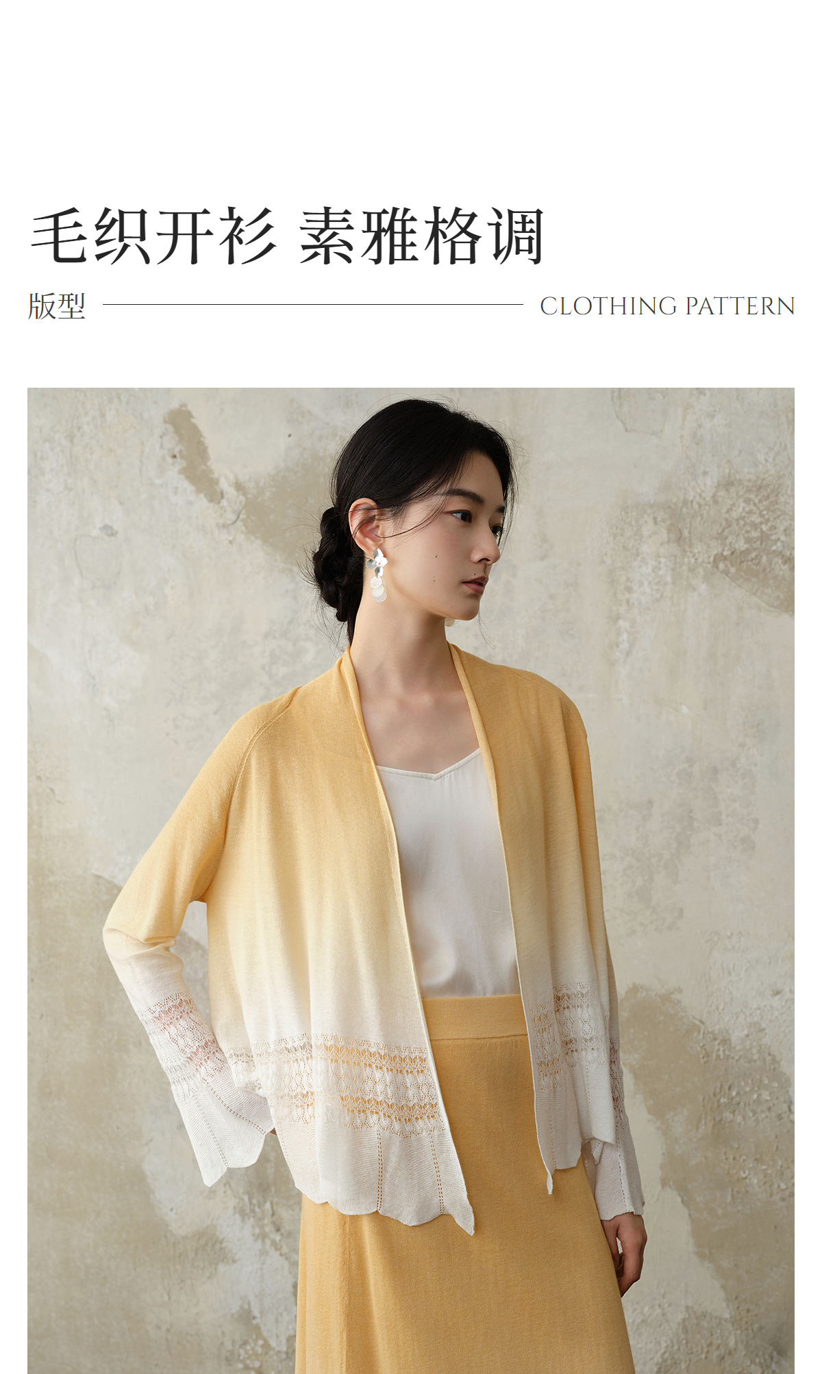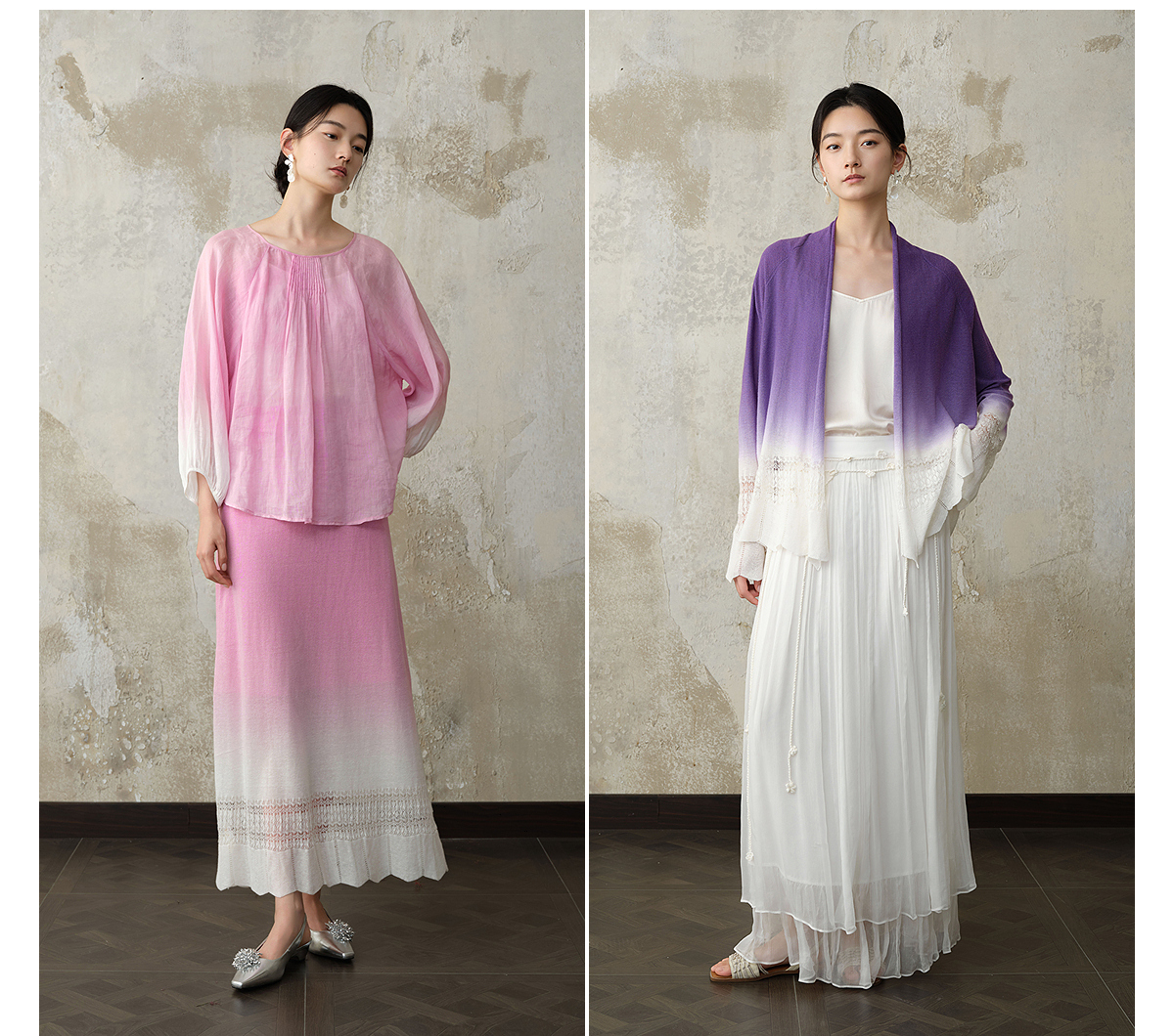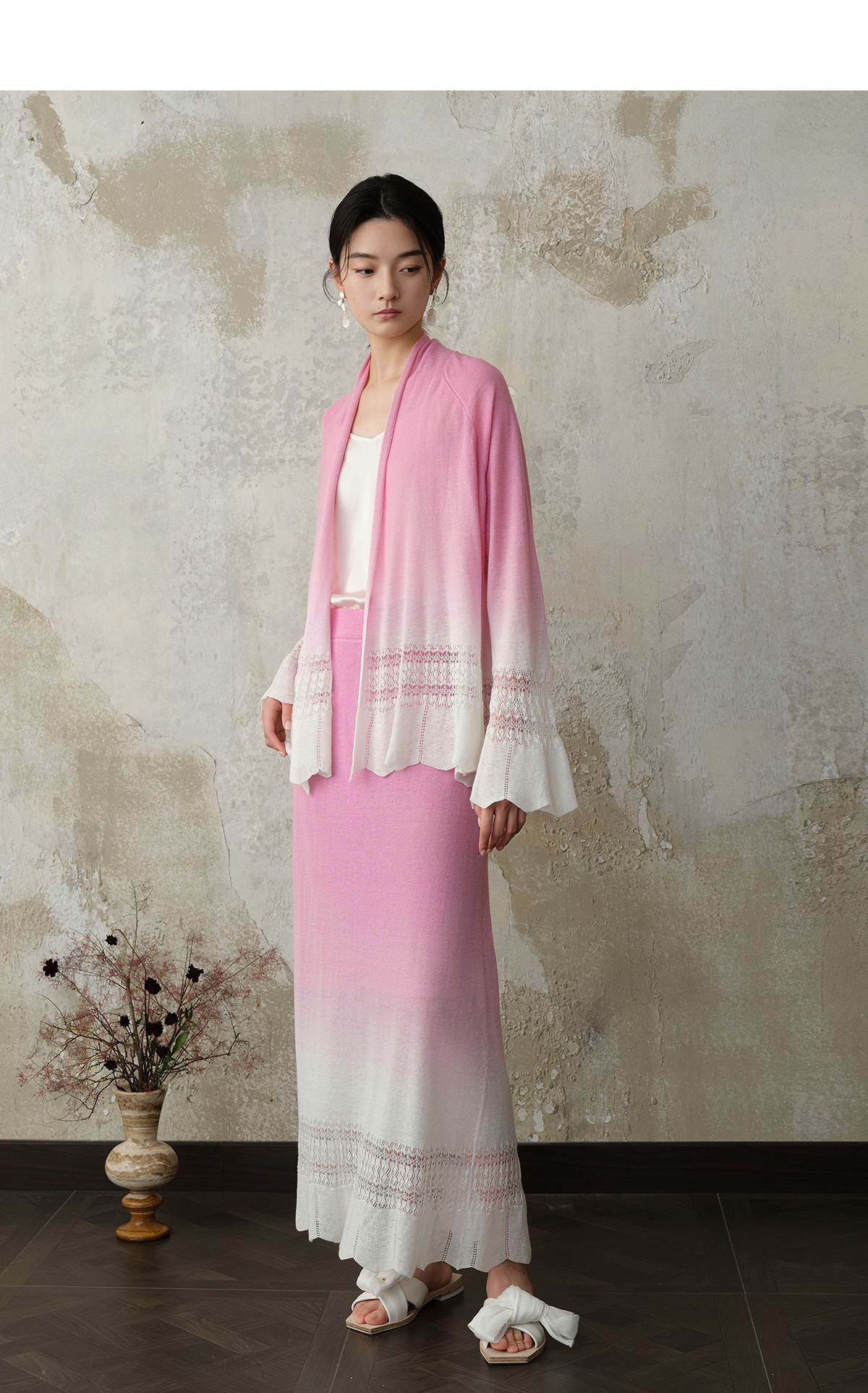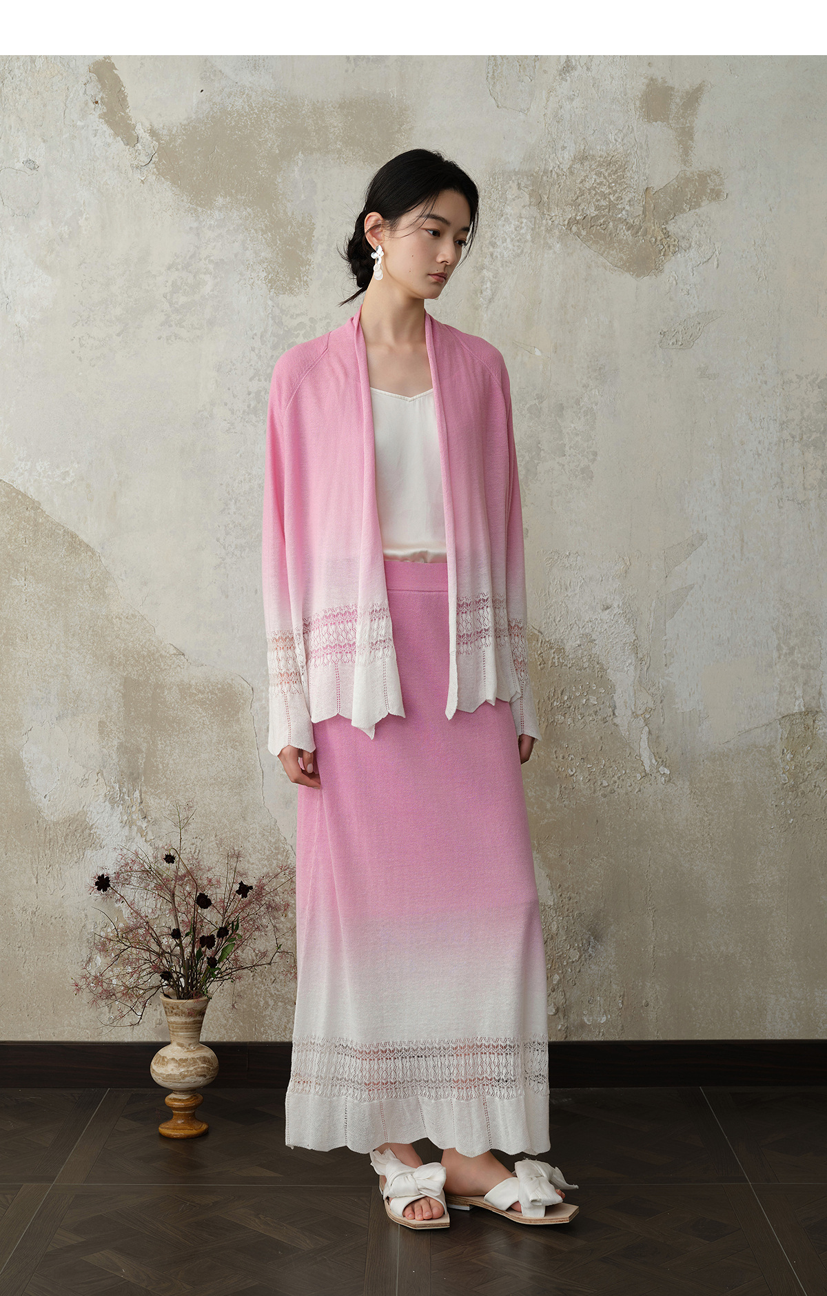 【林栖设计小店】(现货)渐变苎麻混纺镂空毛织开衫多色花边宽松2025早秋新款上衣女1953080B半身裙1953178B