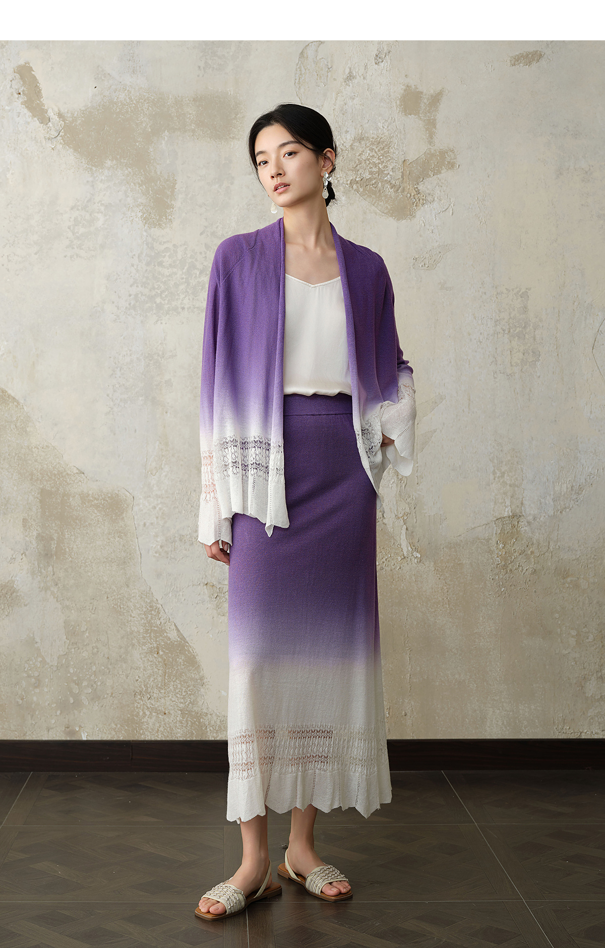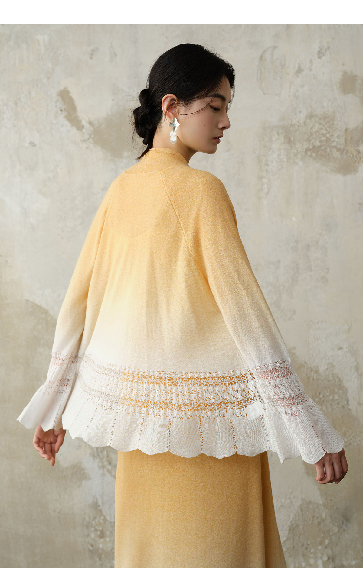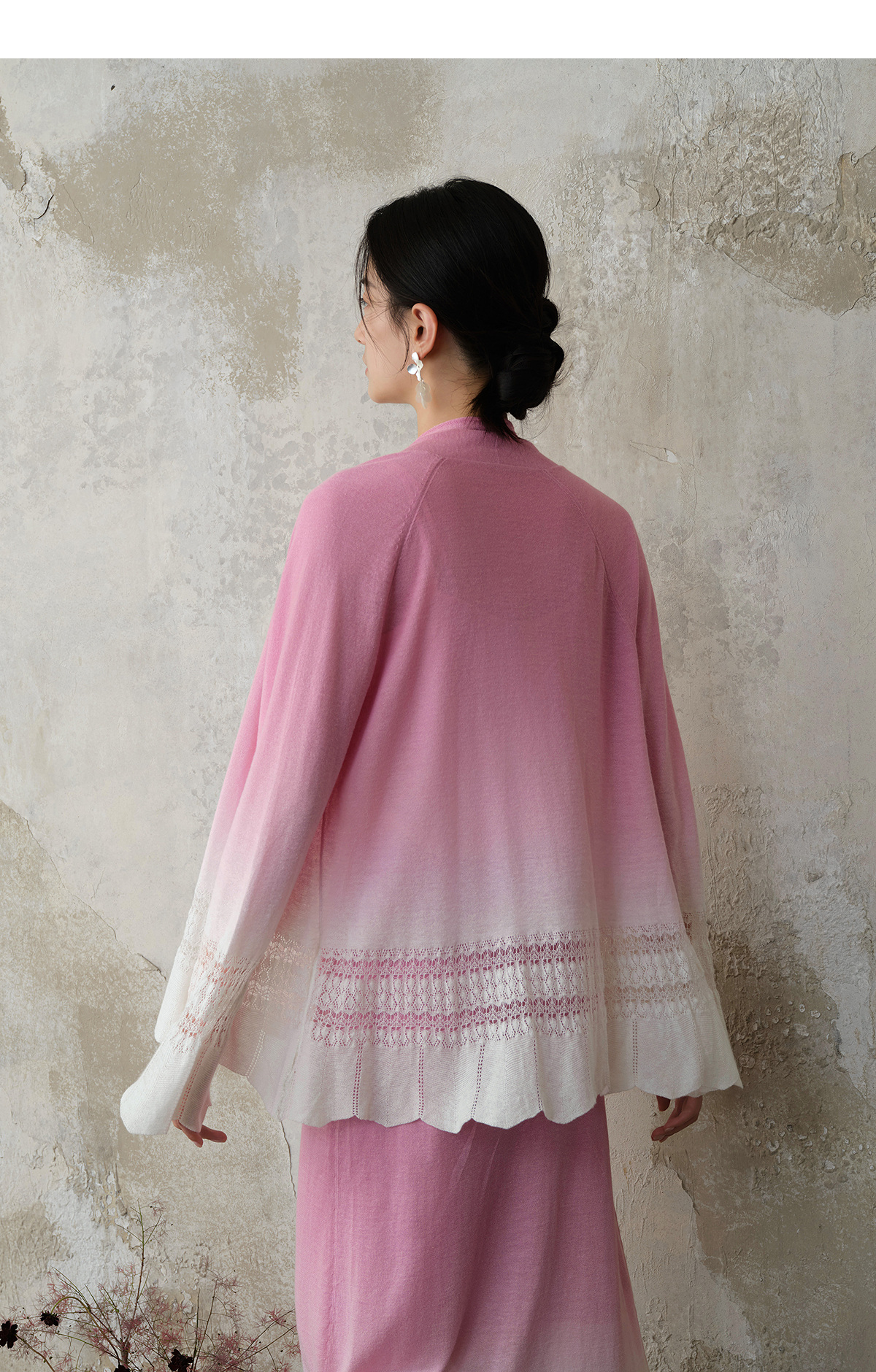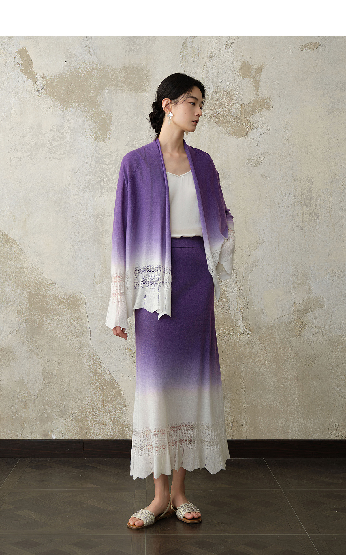 【林栖设计小店】(现货)渐变苎麻混纺镂空毛织开衫多色花边宽松2025早秋新款上衣女1953080B半身裙1953178B