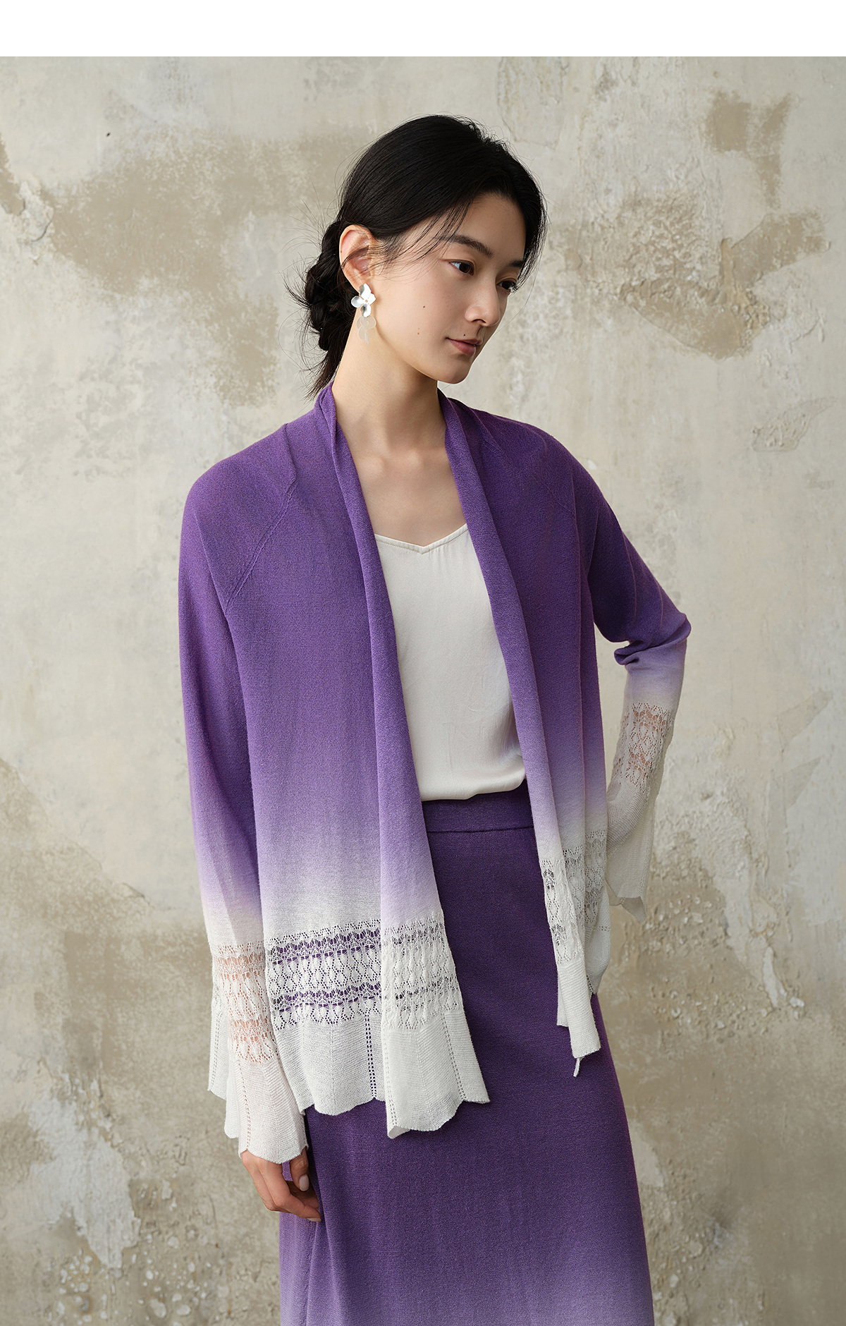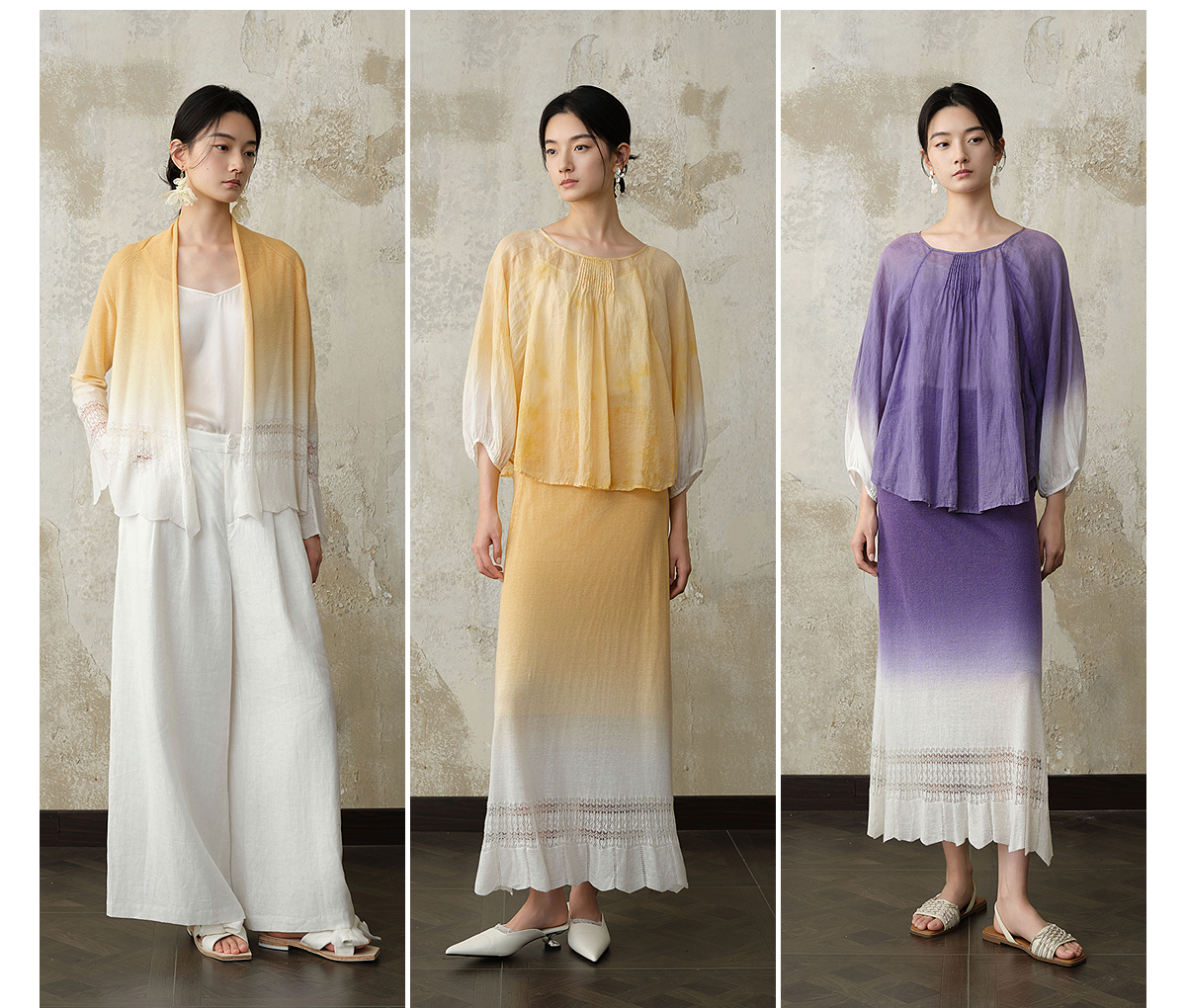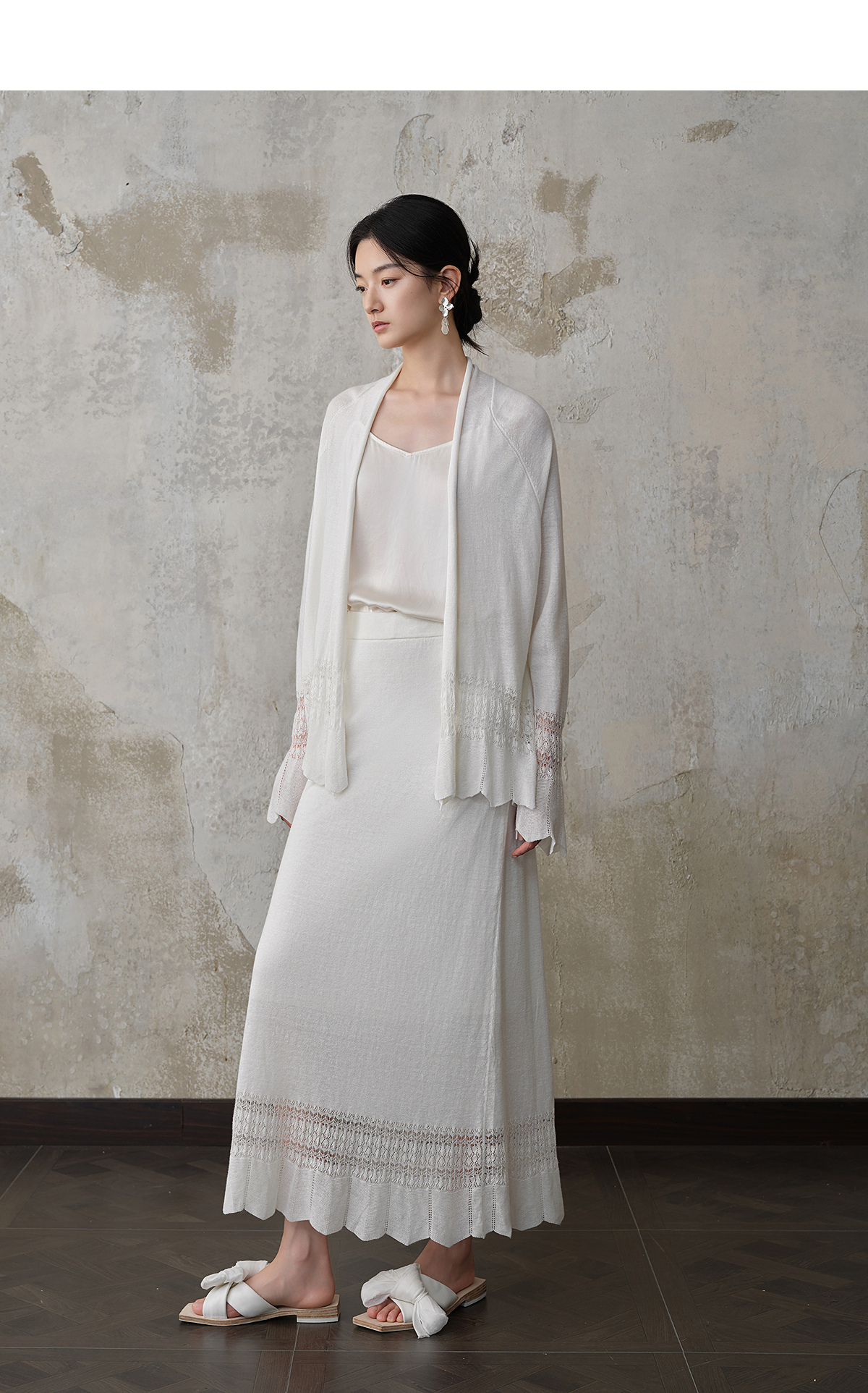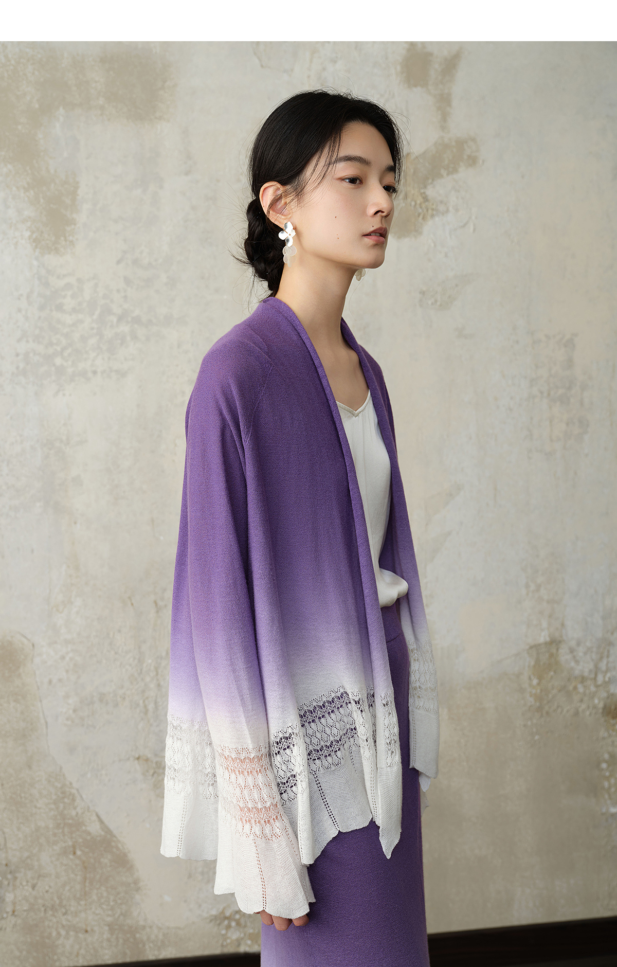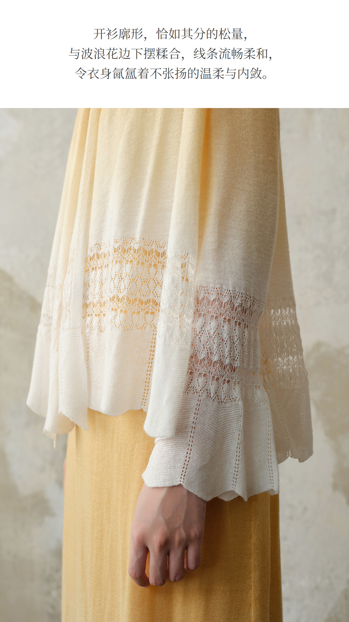 【林栖设计小店】(现货)渐变苎麻混纺镂空毛织开衫多色花边宽松2025早秋新款上衣女1953080B半身裙1953178B