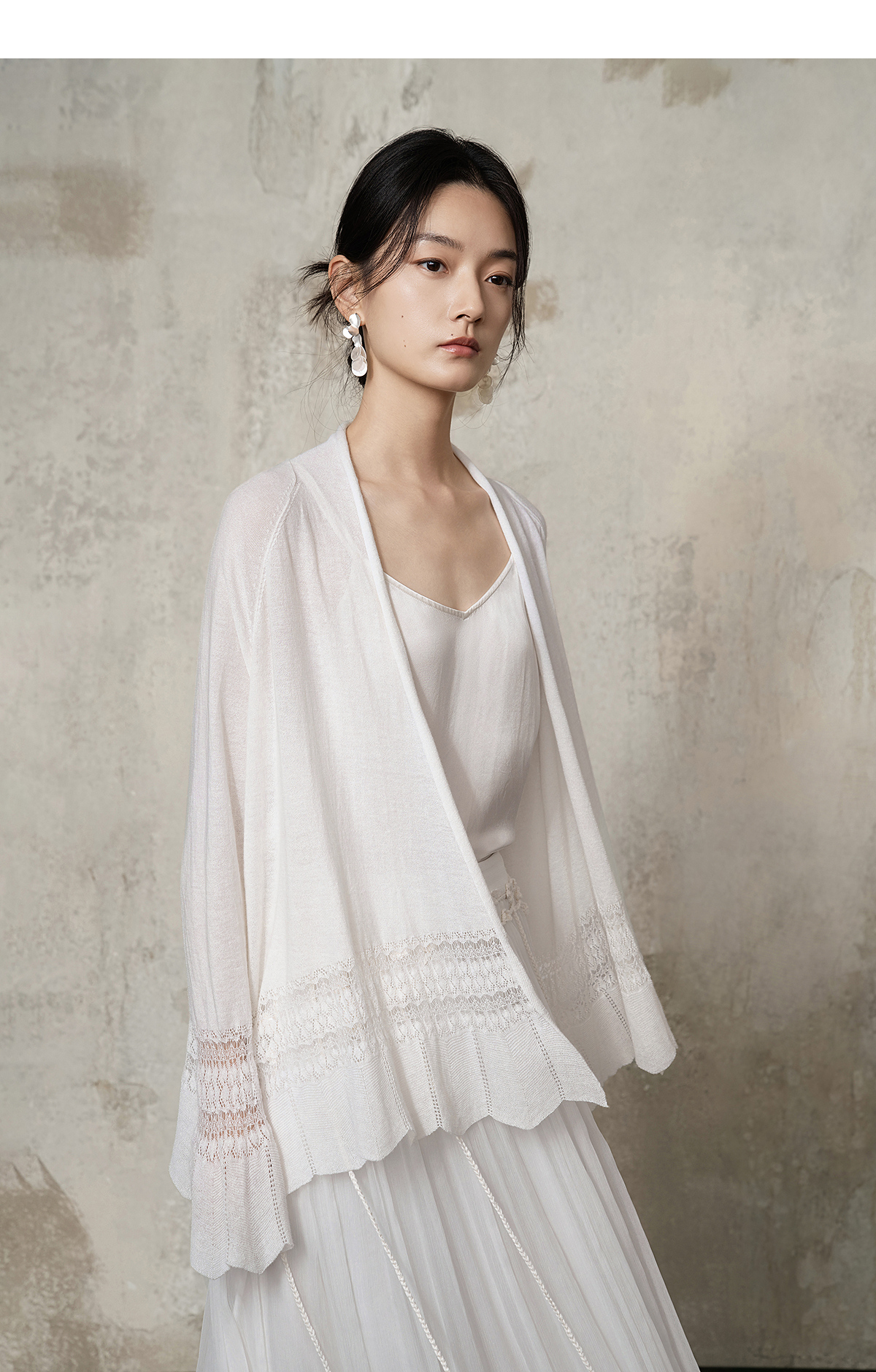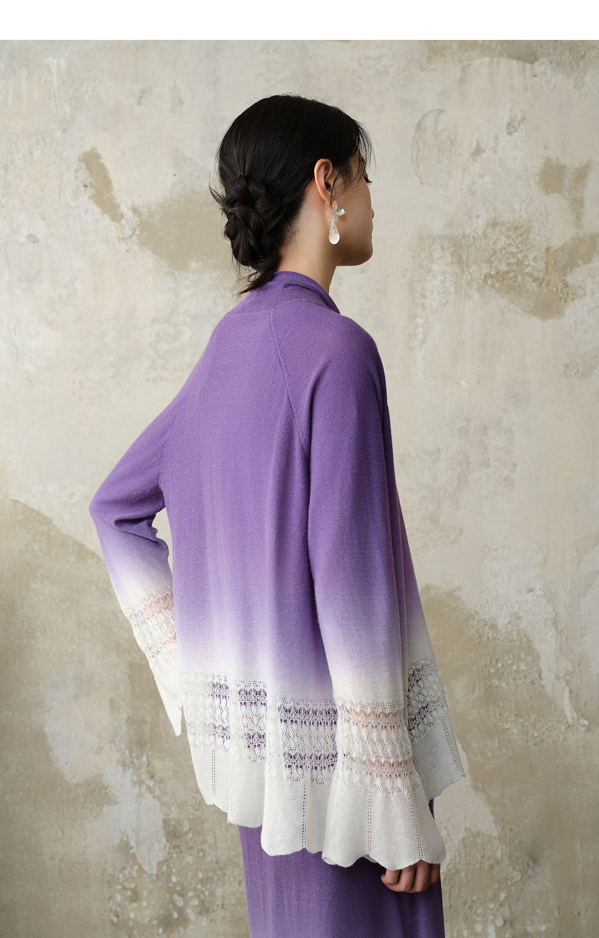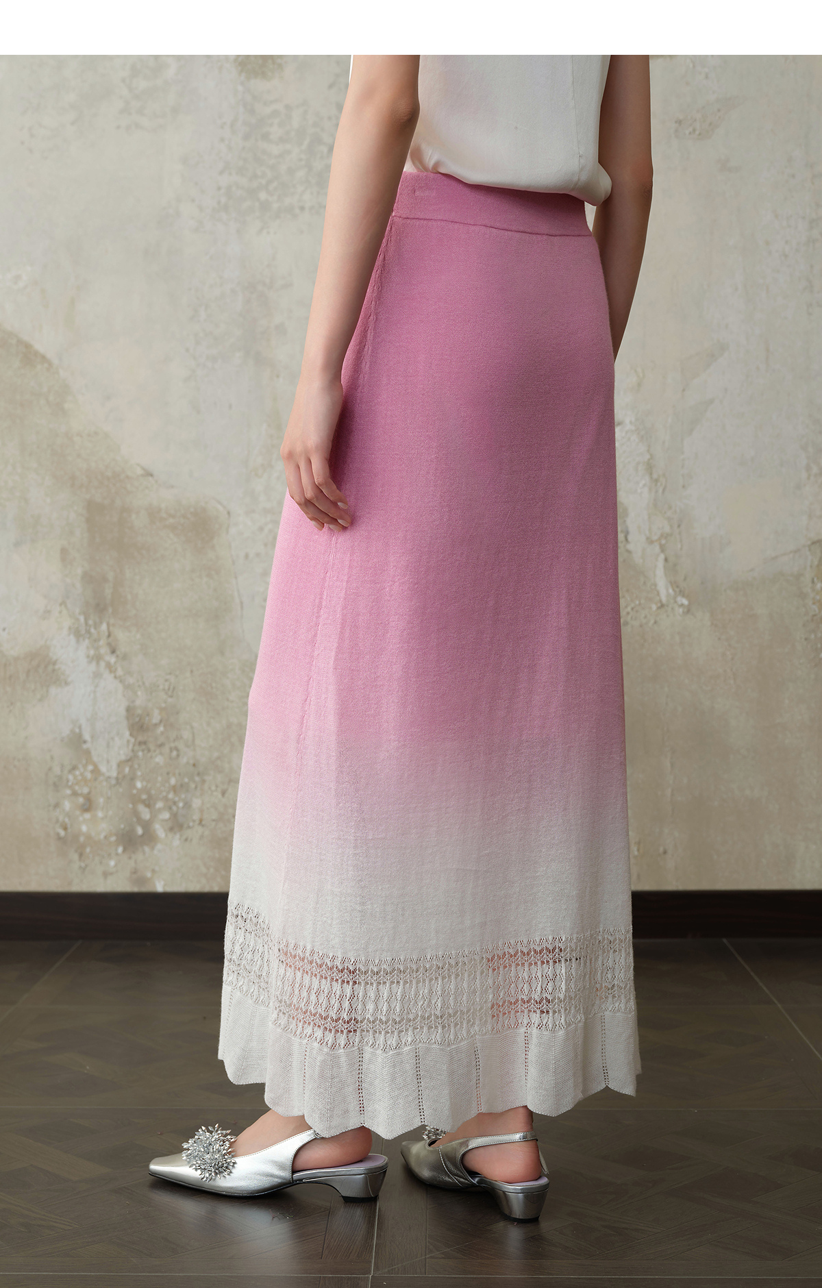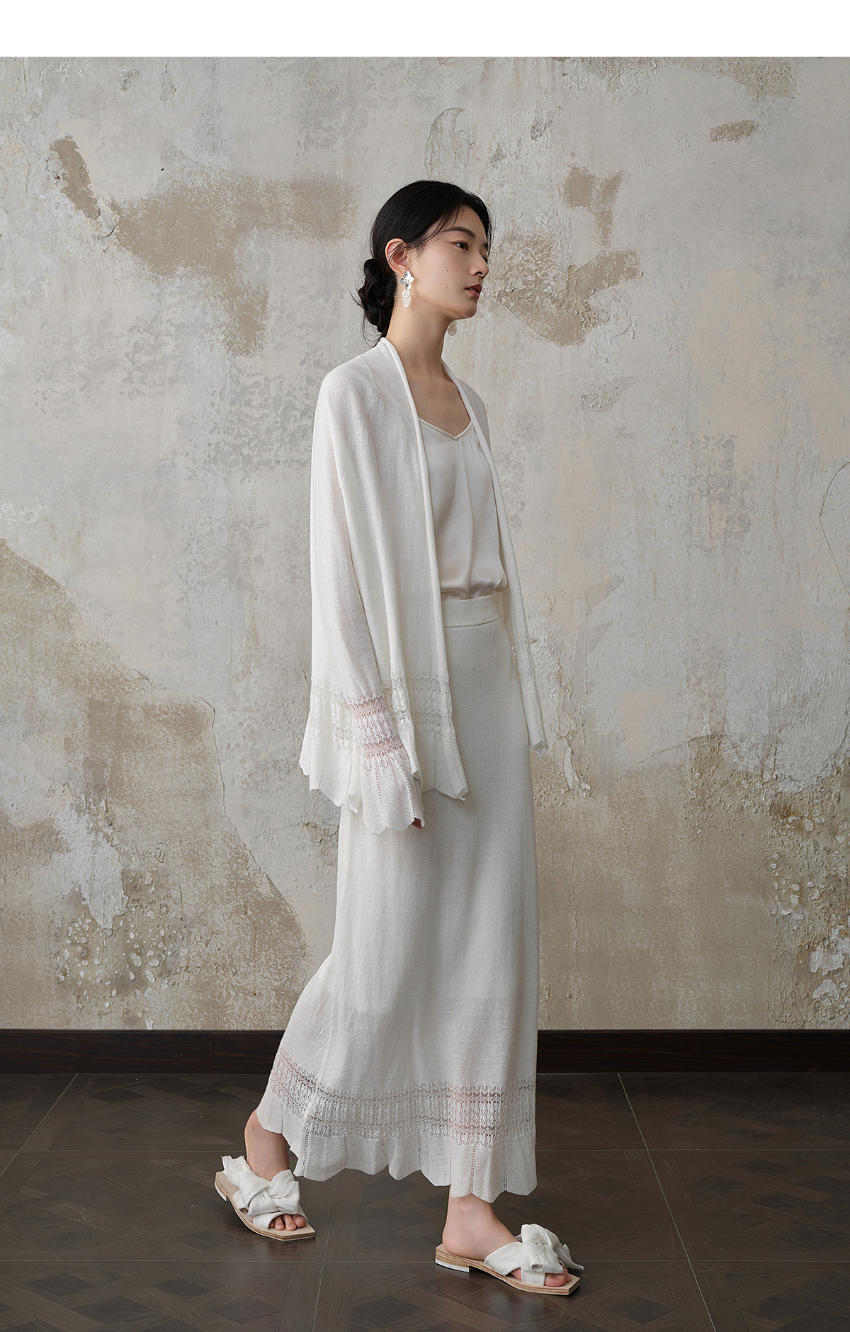 【林栖设计小店】(现货)渐变苎麻混纺镂空毛织开衫多色花边宽松2025早秋新款上衣女1953080B半身裙1953178B