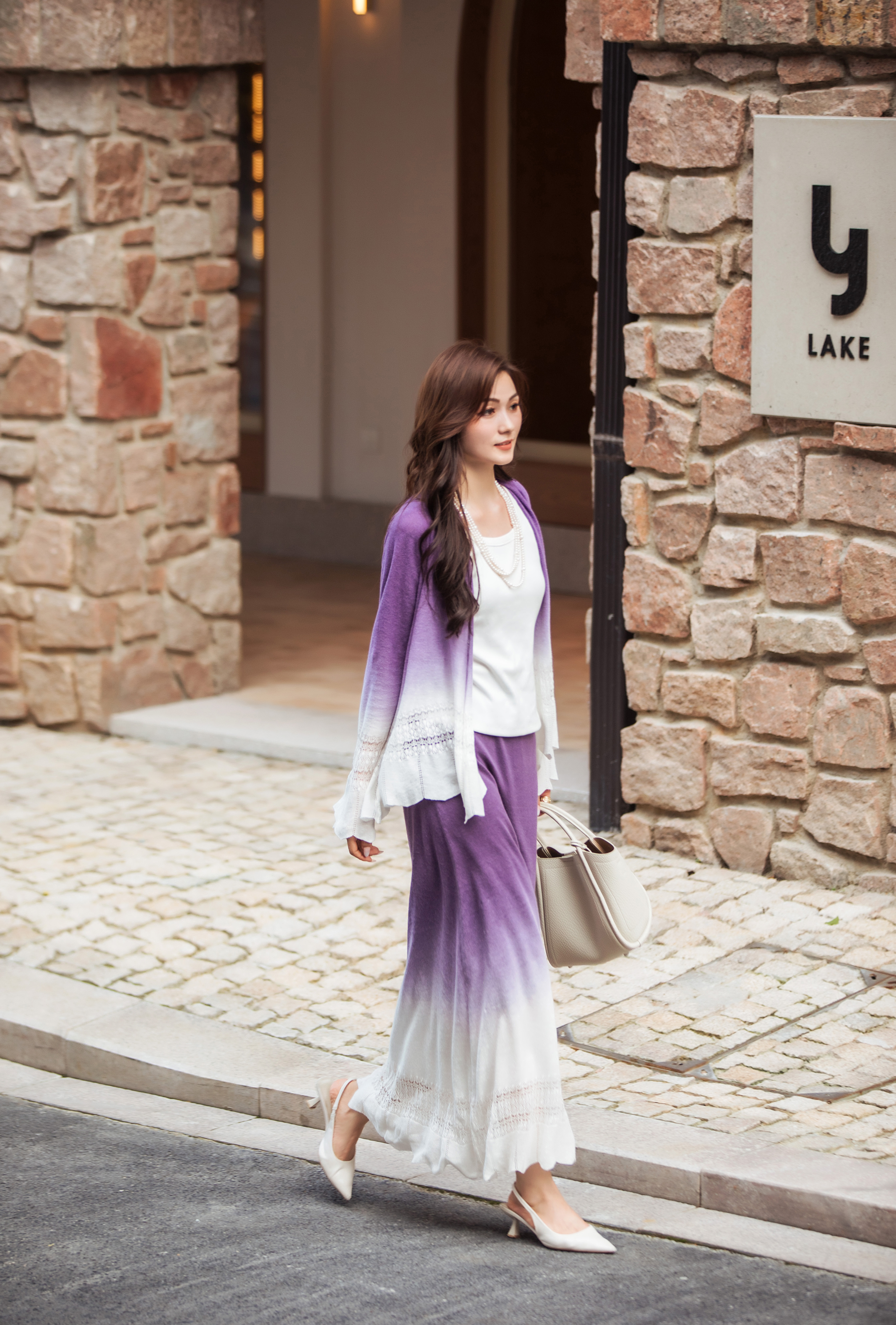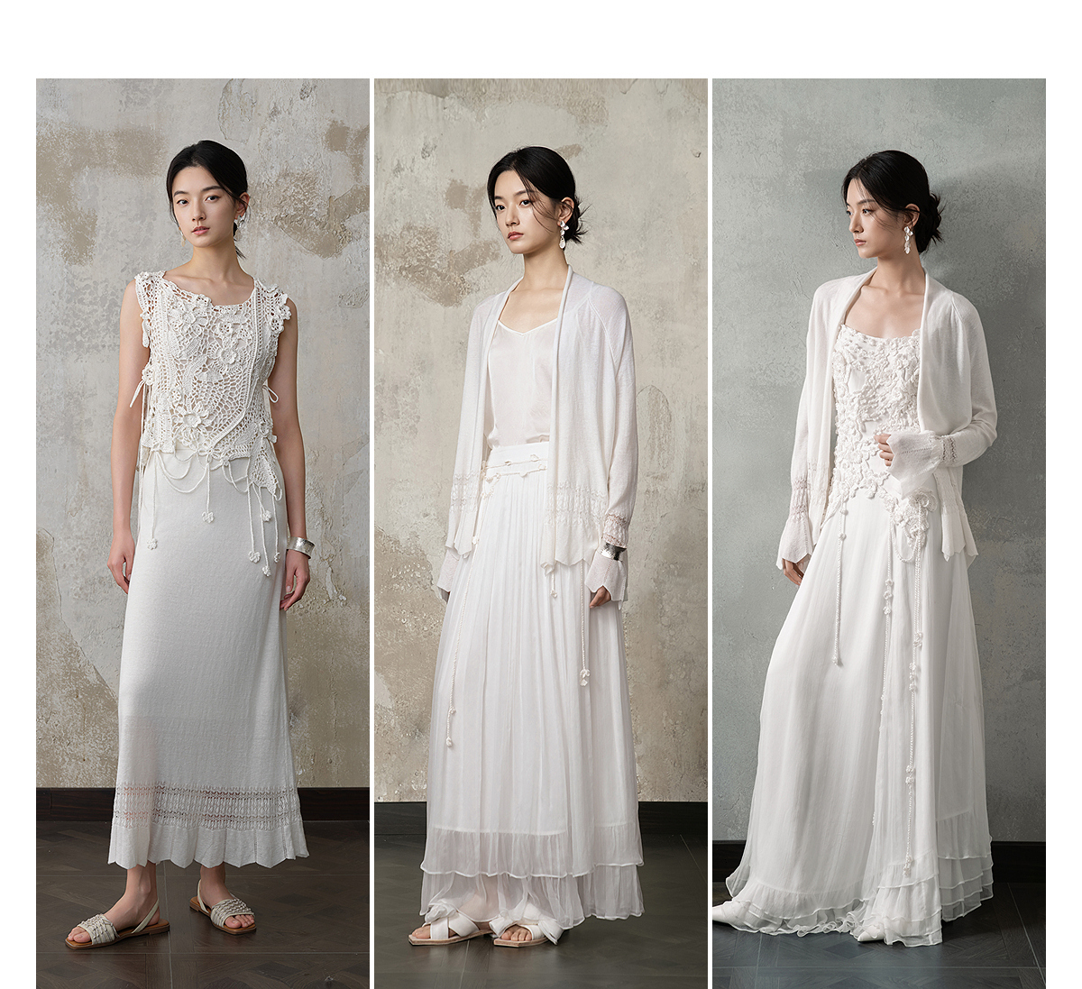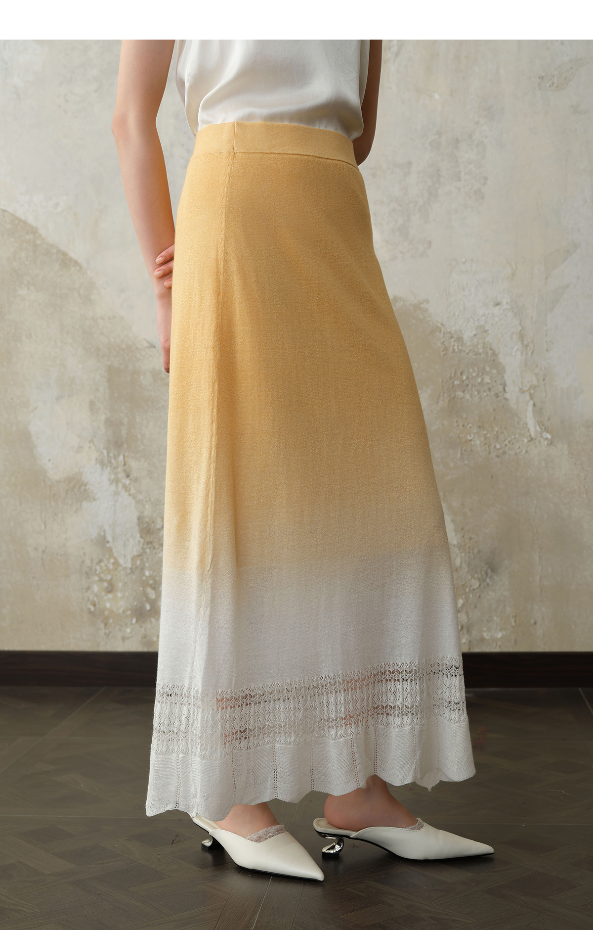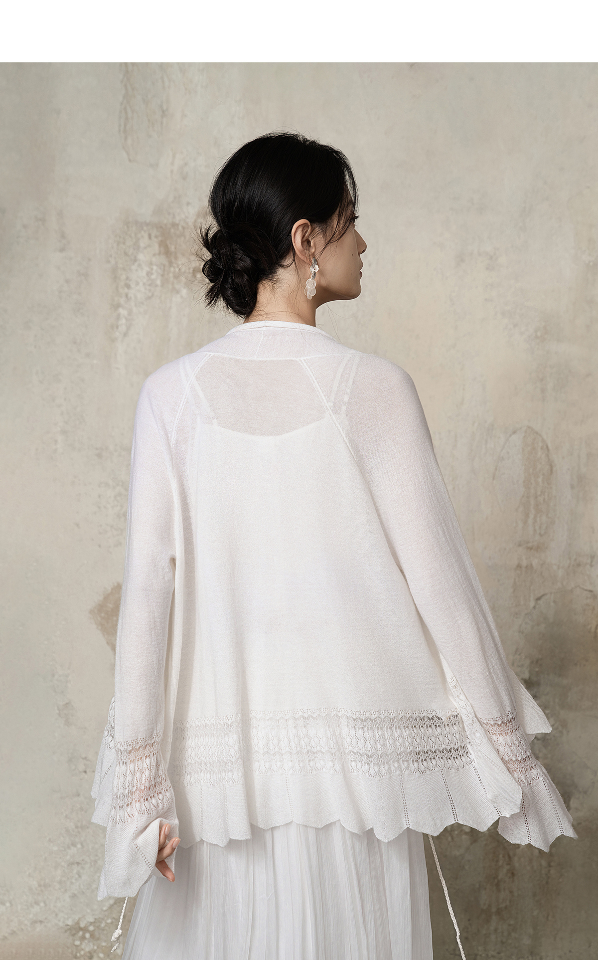【林栖设计小店】(现货)渐变苎麻混纺镂空毛织开衫多色花边宽松2025早秋新款上衣女1953080B半身裙1953178B
