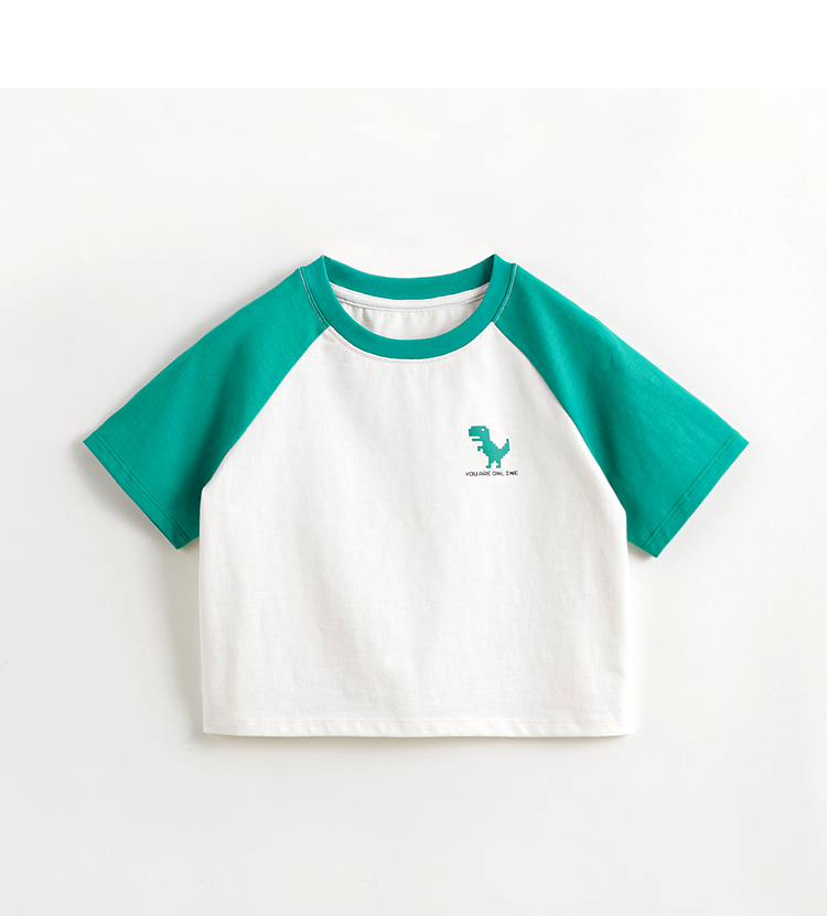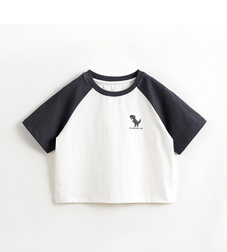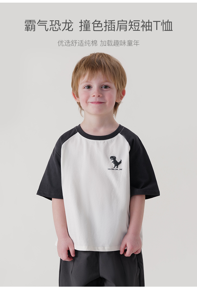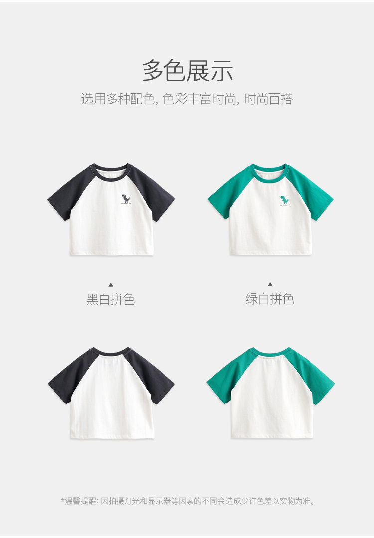 马克珍妮男童小恐龙撞色插肩袖短袖T恤儿童纯棉上衣夏装240579