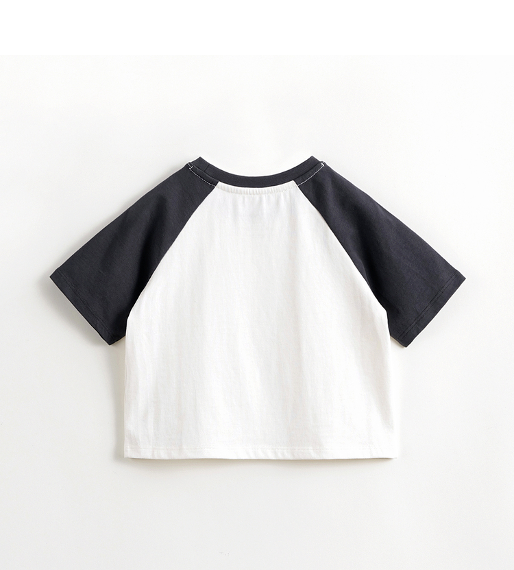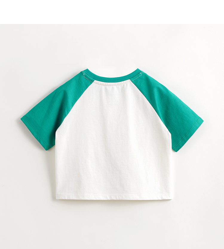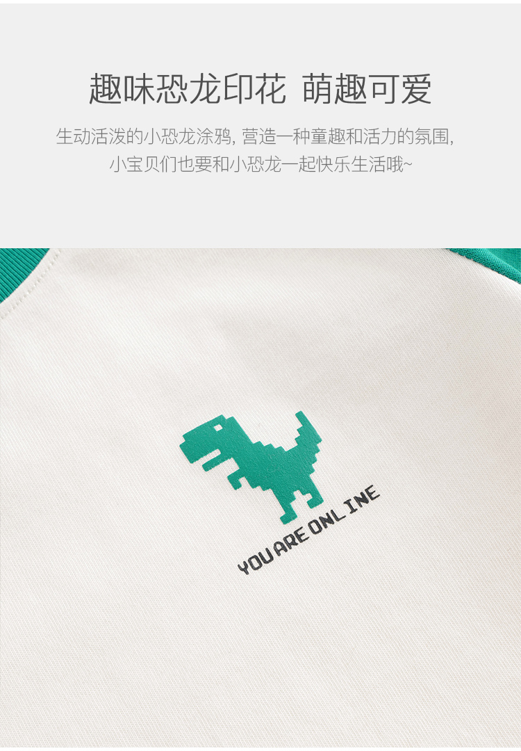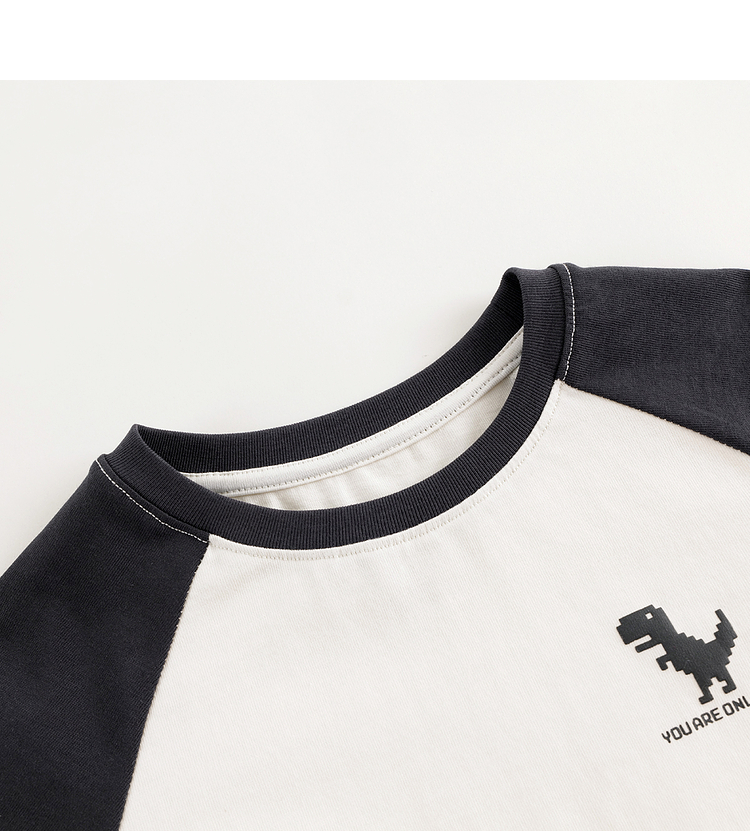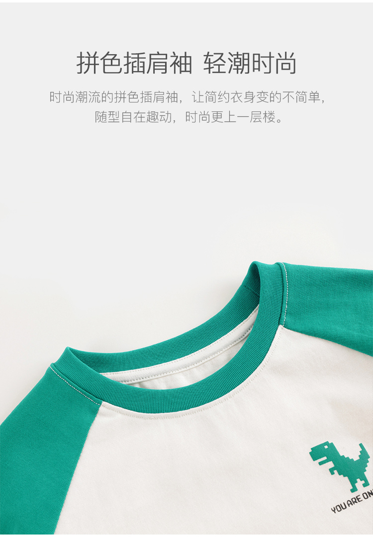 马克珍妮男童小恐龙撞色插肩袖短袖T恤儿童纯棉上衣夏装240579