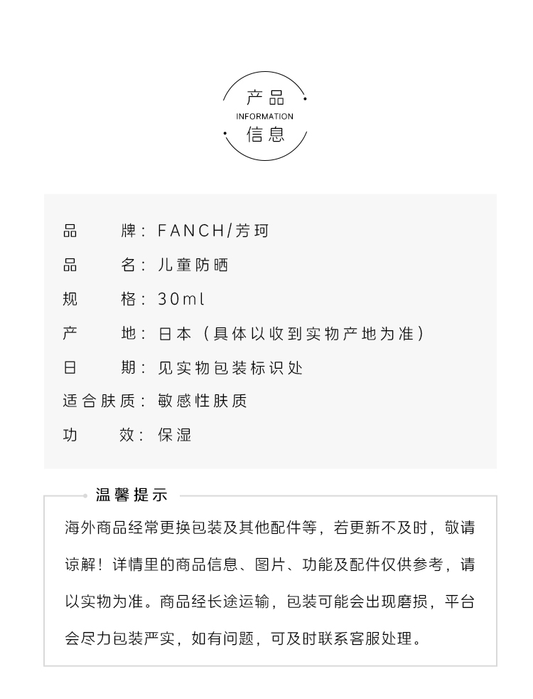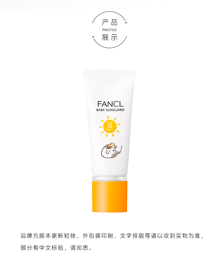 fancl芳珂儿童防晒霜 宝宝儿童物理防晒 30g SPF 25++