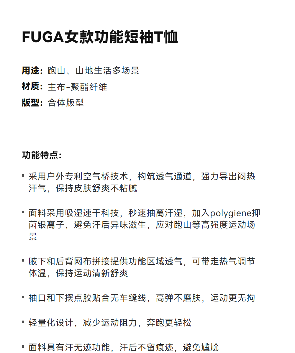 KAILAS凯乐石 FUGA女款功能短袖T恤 KG2617223