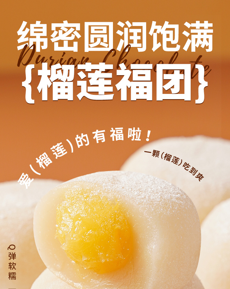 【糯唧唧!超满足榴莲福团】皮薄馅多,Q弹软糯,一口爆浆!和风生巧福团水果味榴莲麻薯网红爆浆雪媚娘糯米糍青团
