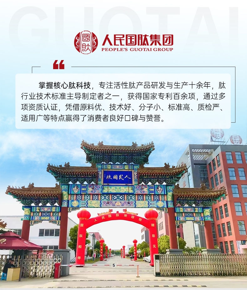 人民国肽秉承“全心全意为大众健康服务” 的品牌主张,携手全球前沿科研力量,以严谨的科学精神,打造更安心更卓效的小分子活性肽系列产品,成就追求健康生活人士的美好理想。