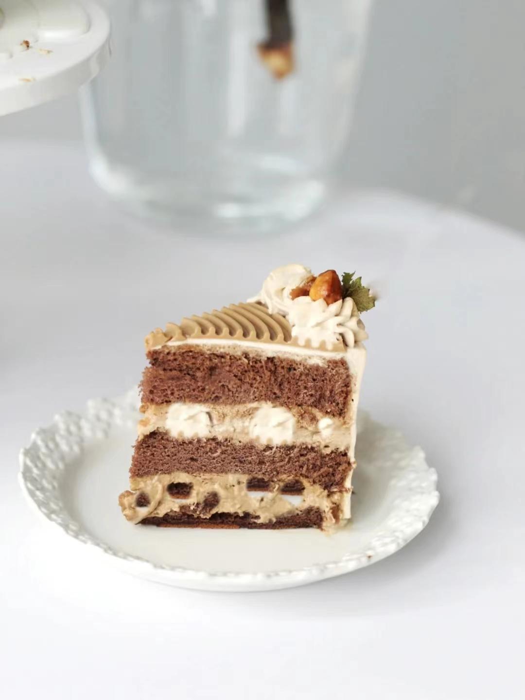 「食材」100%法国 / 新西兰动物奶油,巧克力蛋糕胚,泰国椰奶,拿铁咖啡,黑糖波波,马蹄,巧克力脆脆珠,山核桃。