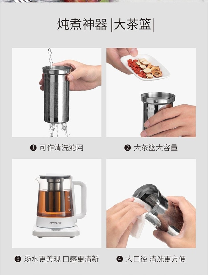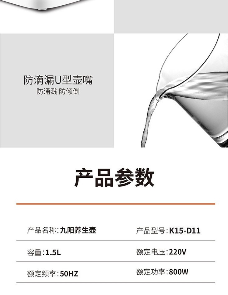 九阳养生壶电热水壶家用多功能1.5升玻璃烧水壶花茶煮茶器K15-D11