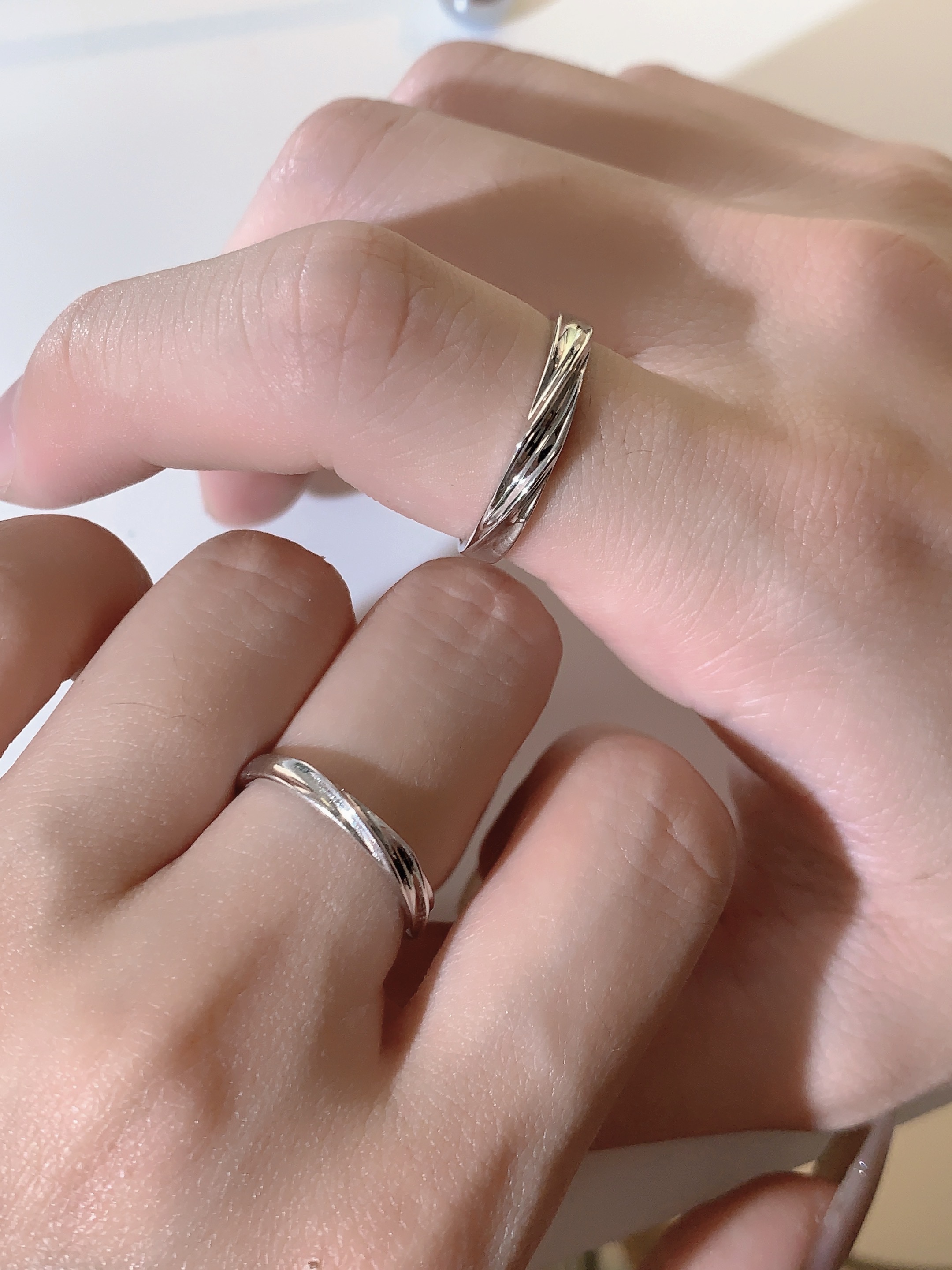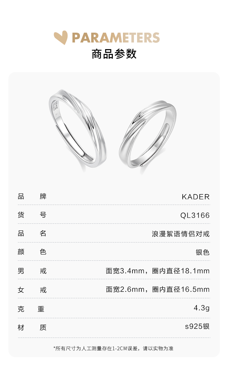 KADER卡蒂罗 浪漫絮语情侣对戒 925银 素戒 温柔水纹设计开口可调节对戒 时尚百搭 礼盒