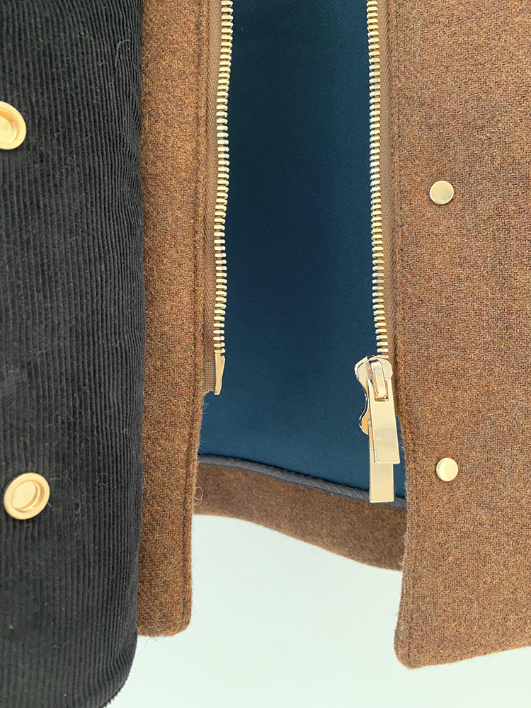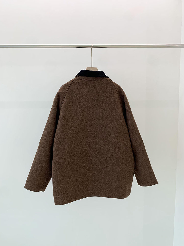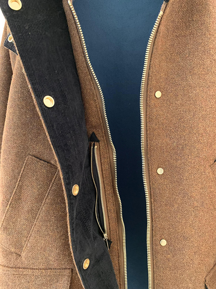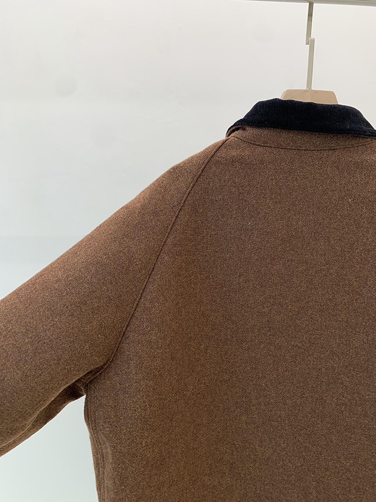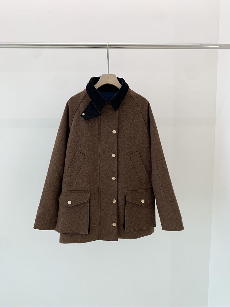 灯芯绒的撞色衣领,既复古又时尚