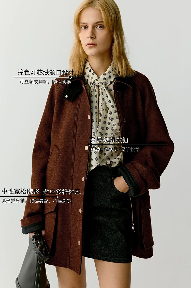 撞色灯芯绒领口设计,可立领或翻领,随性切换
