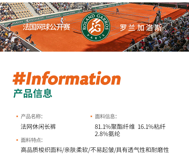 罗兰加洛斯法网休闲裤商务长裤男春秋新款梭织长款直筒裤网球服