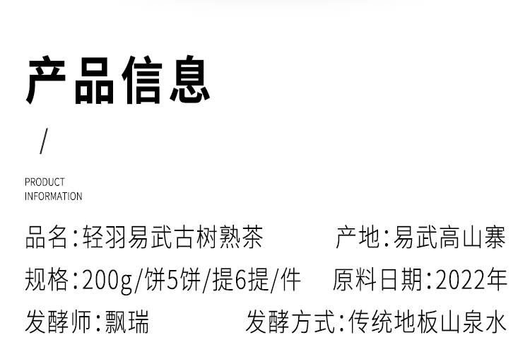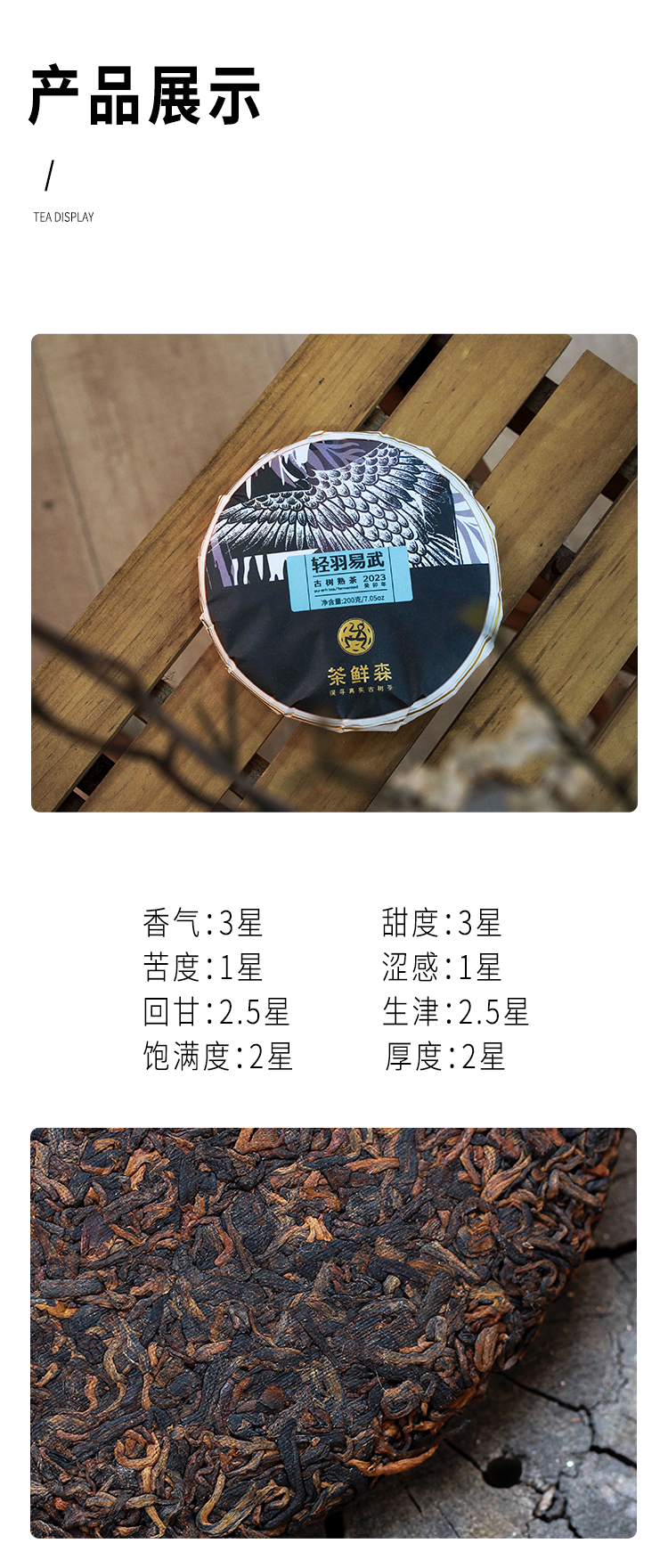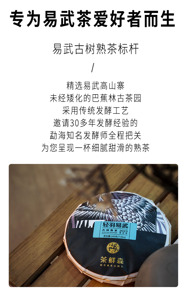 2023年 轻羽易武 古树熟茶 普洱茶 熟茶 200g/饼