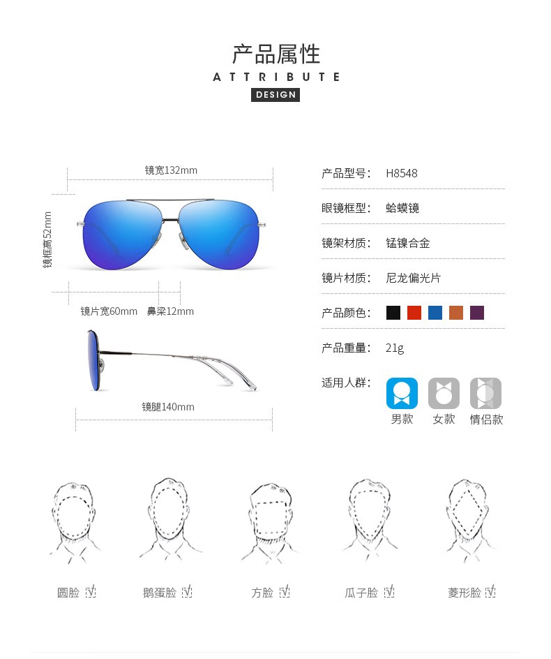 【明星同款】海伦凯勒 男女款偏光太阳镜 防晒时尚墨镜H8548N02