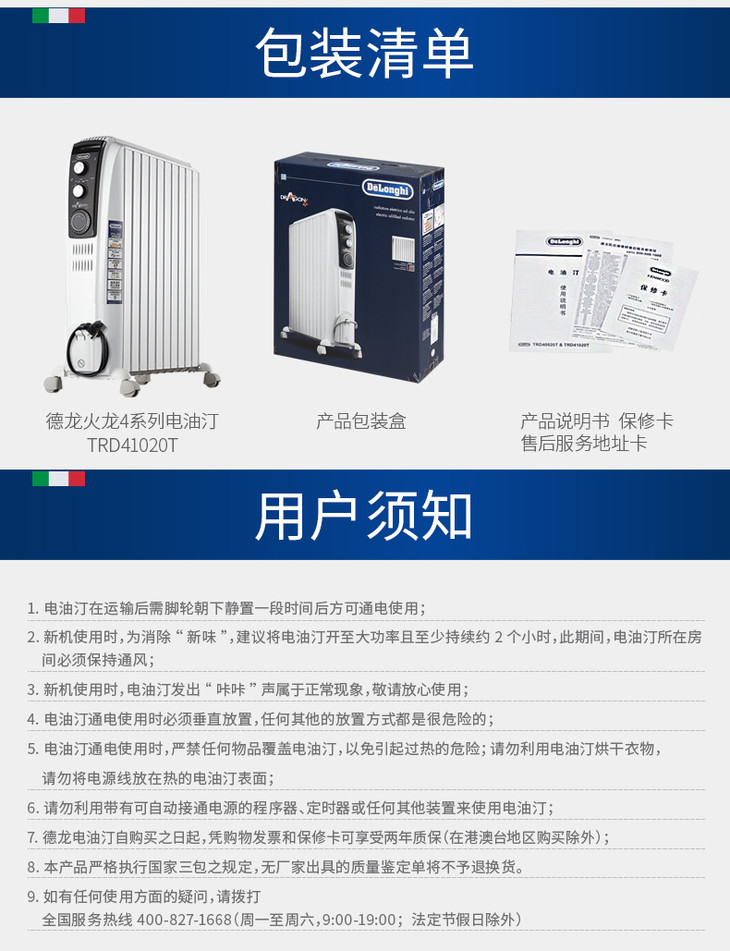 Delonghi/德龙火龙4系列电油汀10片 TRD41020T