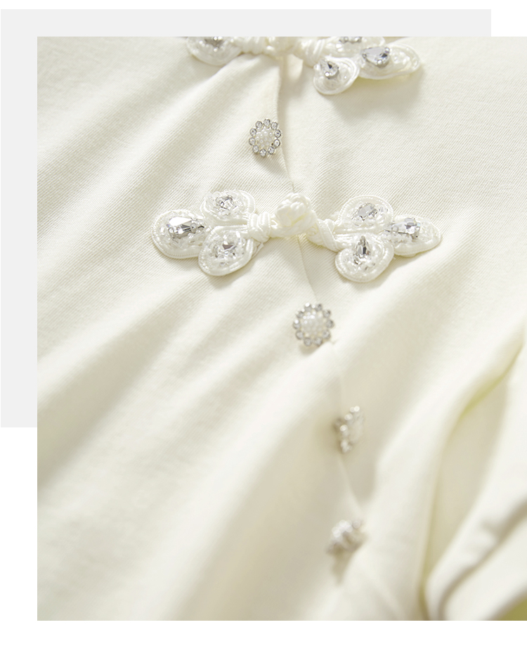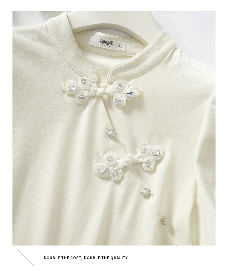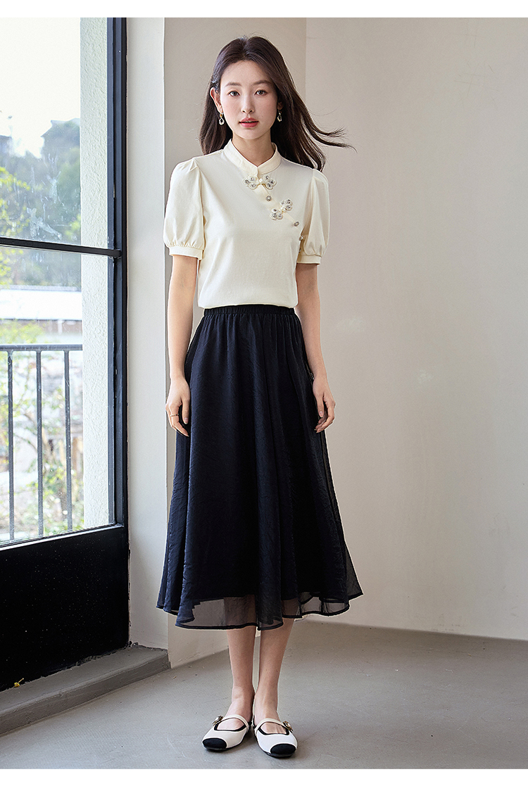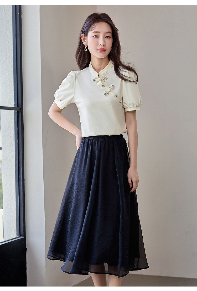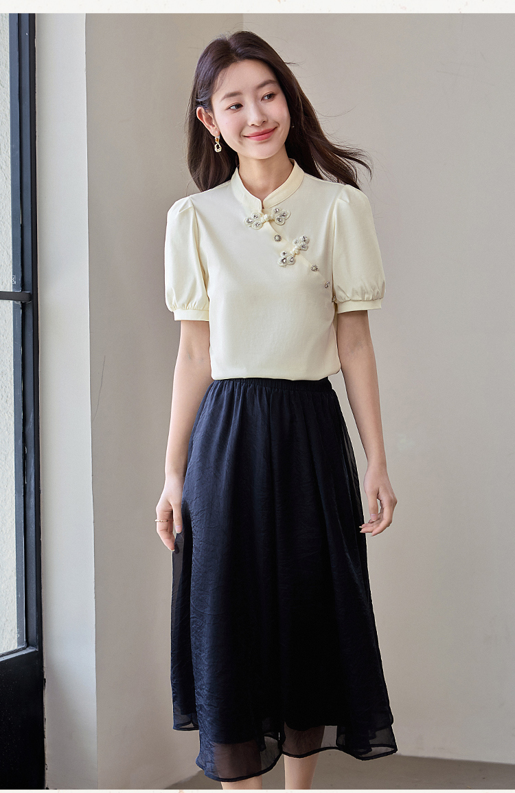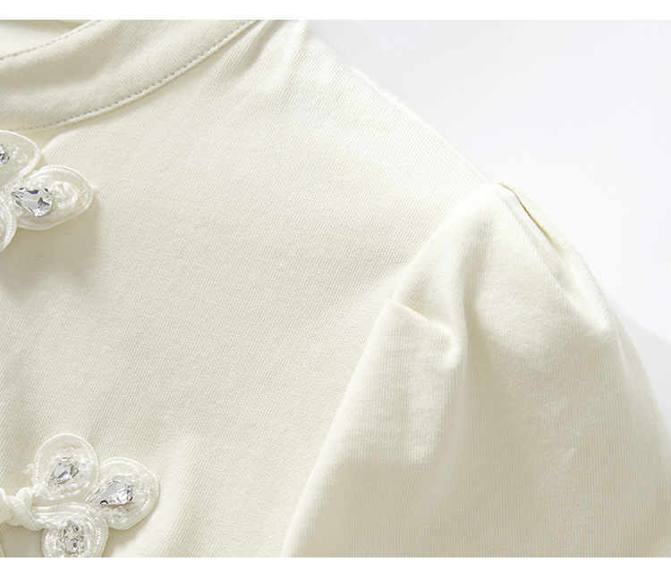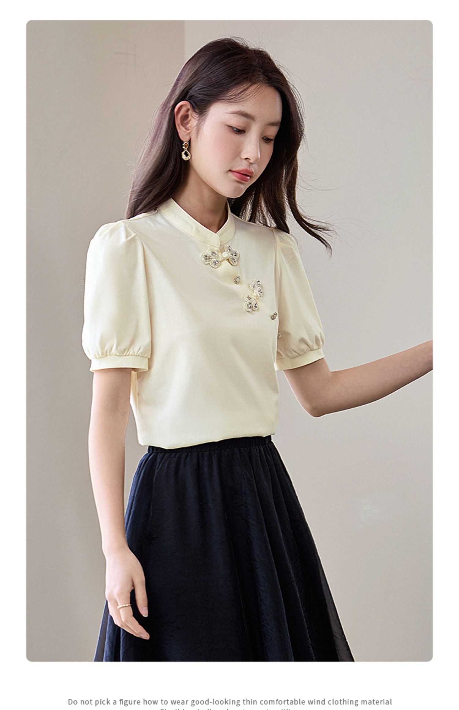 【专属特价】熙世界2025夏装新款新中式盘扣T恤上衣国风立领法式泡泡袖小衫