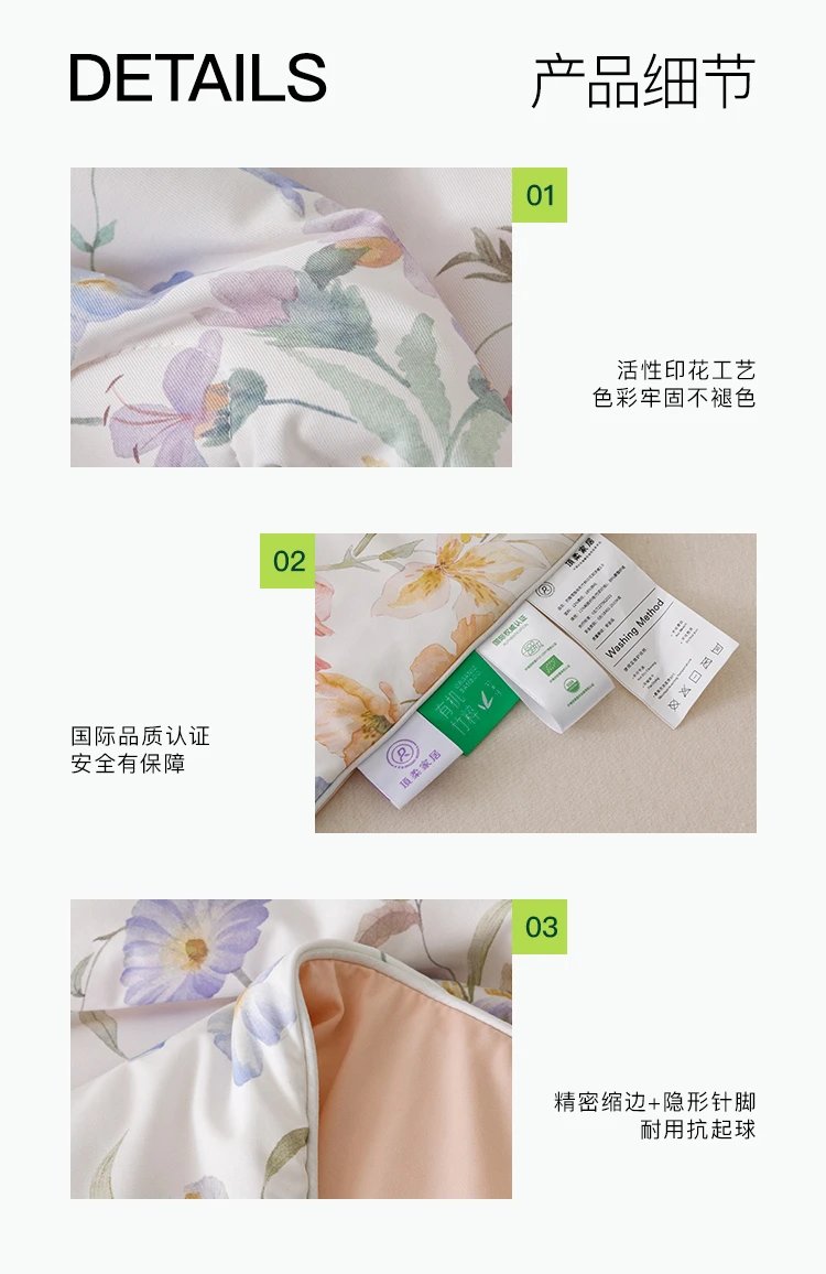填充物chao安心 它的填充物由 11% 竹纤维和 89% 聚酯纤维组成。竹纤维有着天然的抗菌除螨功效,对皮肤敏感的宝子们chao友好 聚酯纤维则保证了被子的蓬松度和保暖性,让你在夏日的夜晚也能拥有舒适的睡眠温度。