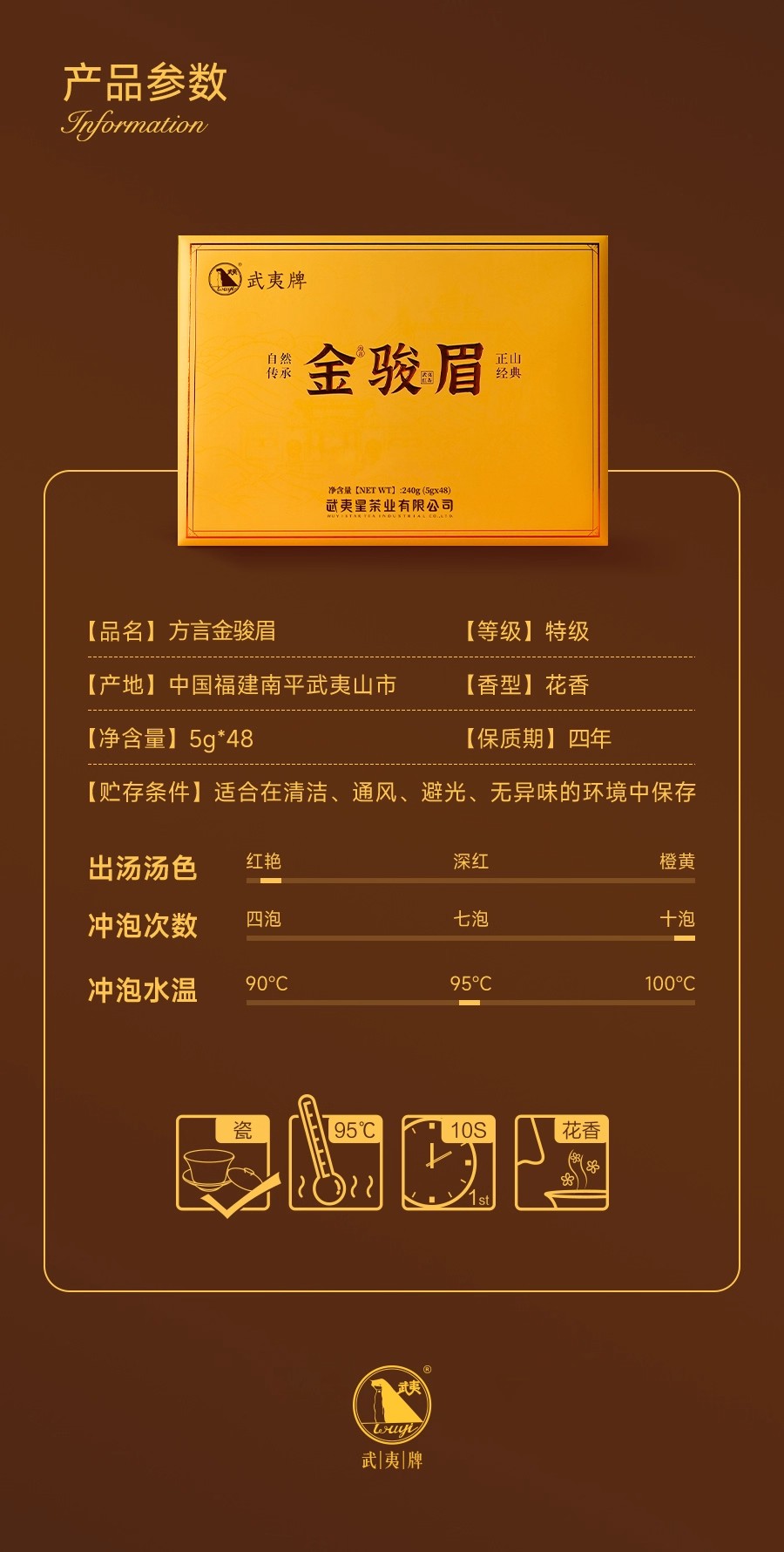 武夷星 武夷 方言 金骏眉 武夷红茶 茶叶礼盒 5g*48