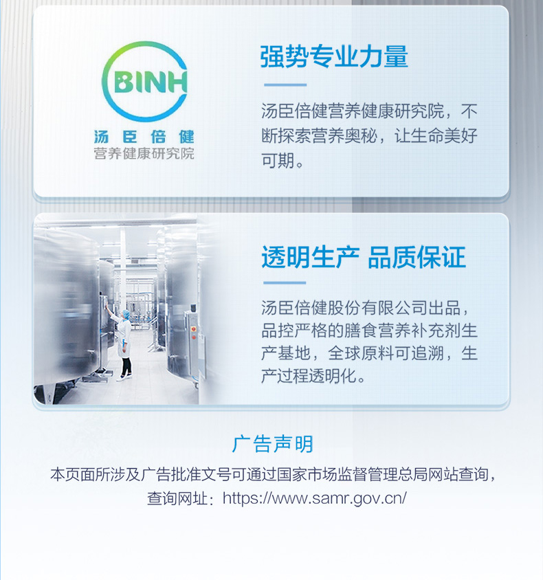 - 作为全球膳食营养补充剂行业领先者,汤臣倍健实施科学营养战略,建立了全面的膳食营养补充剂科学体系,携手全球前沿科研力量,以极致的科学精神,打造极致的科学营养产品力。