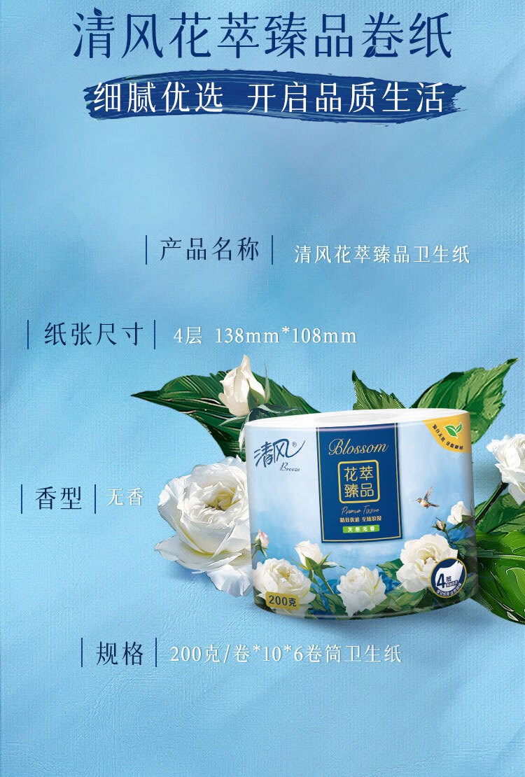 【ZY25】清风有芯卷纸 花萃臻品4层200克*10卷