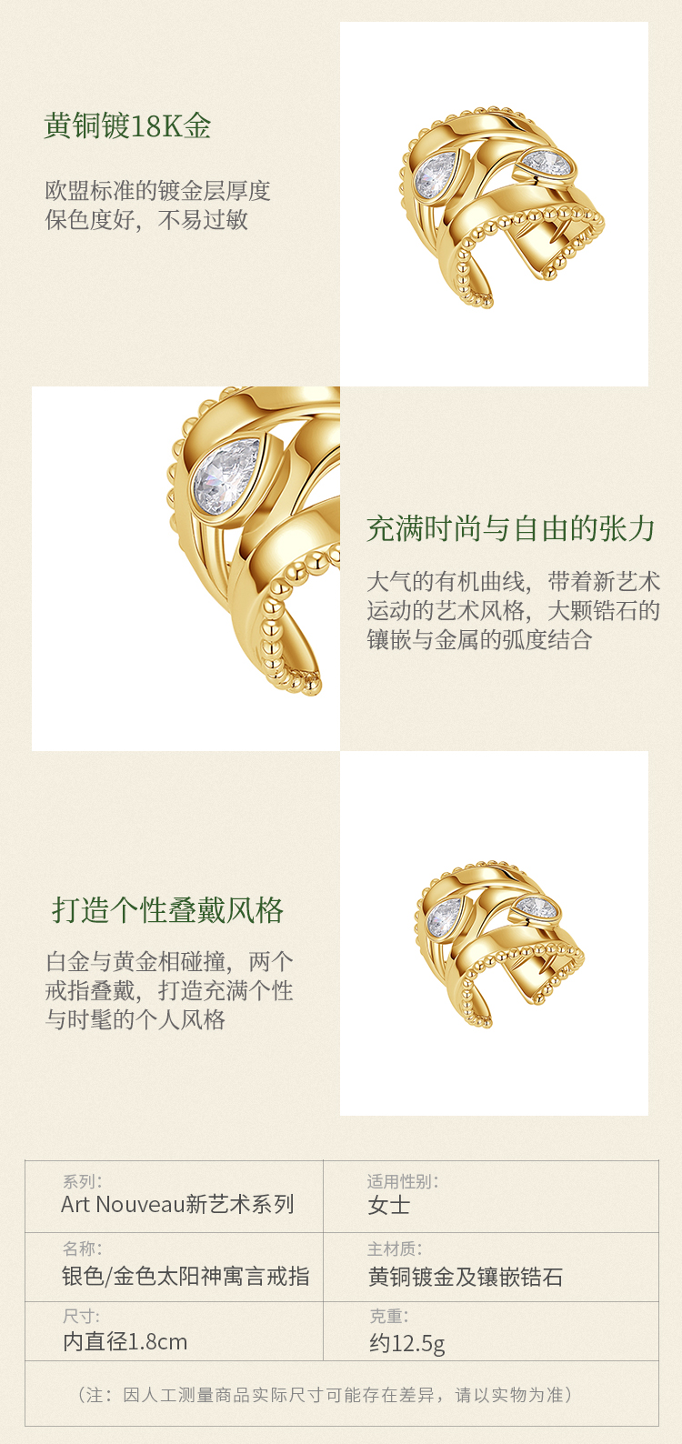 【刘忻&演员王悦伊同款】Mordern Art 现代艺术时期 | 金色太阳神寓言戒指(2色可选)