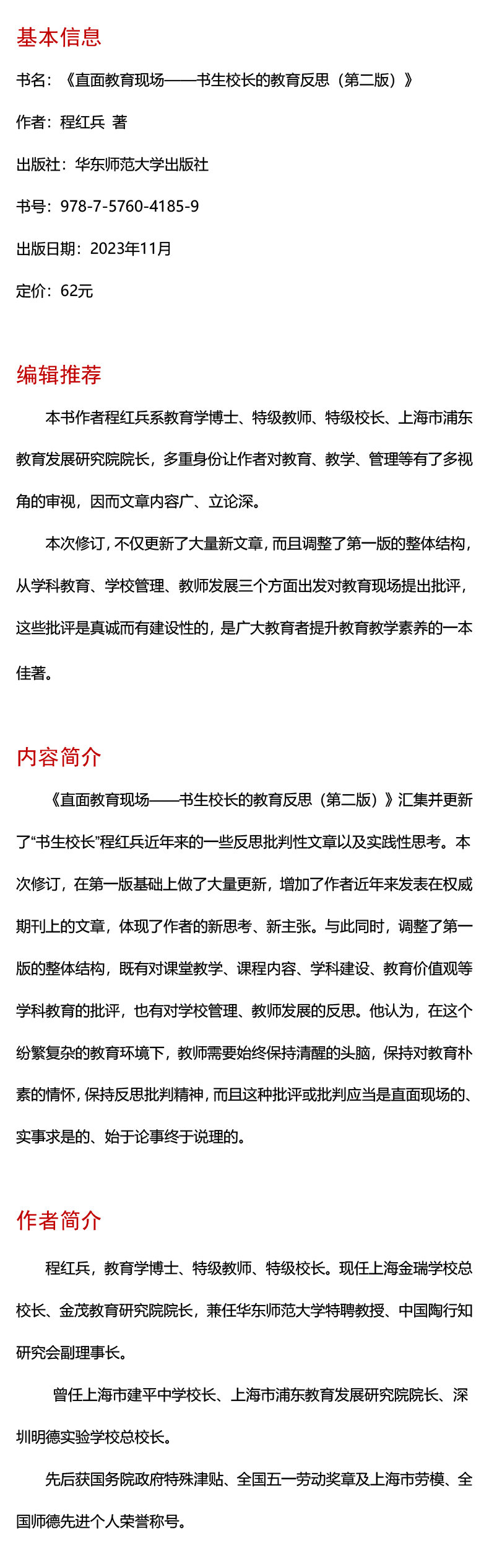 直面教育现场 书生校长的教育反思 第二版 程红兵 大夏书系