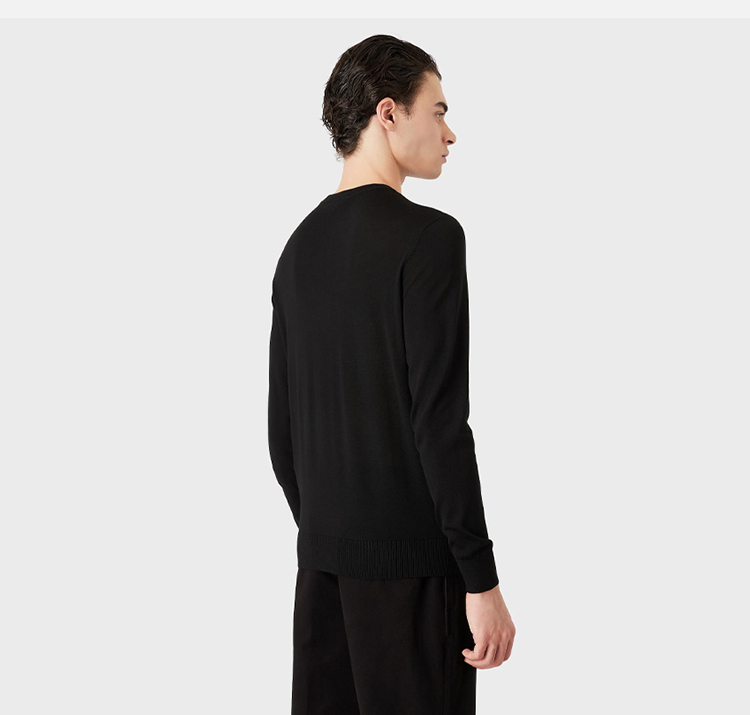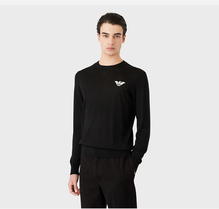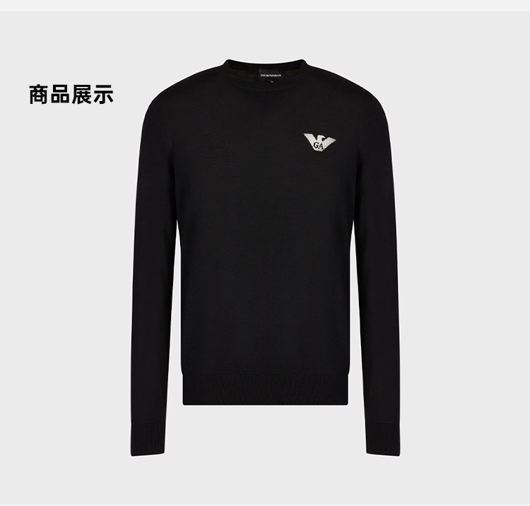EMPORIO ARMANI 阿玛尼 男士刺绣徽标羊毛圆领长袖针织衫 黑色 6L1MXG 1MJVZ 0999